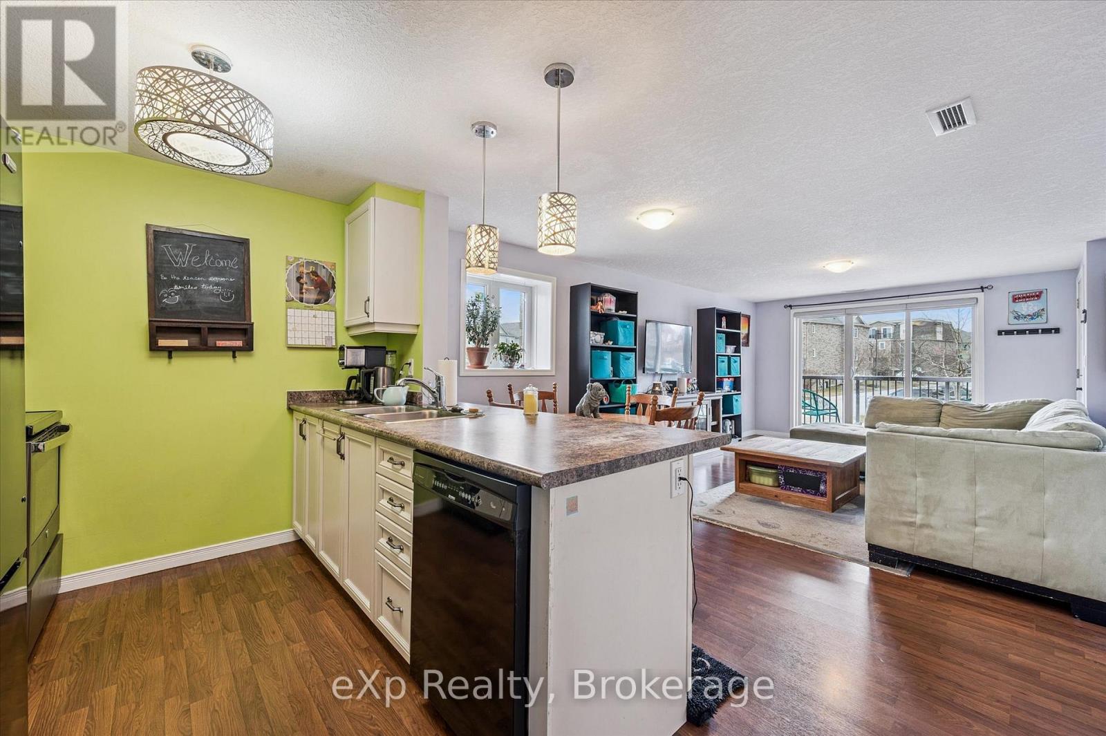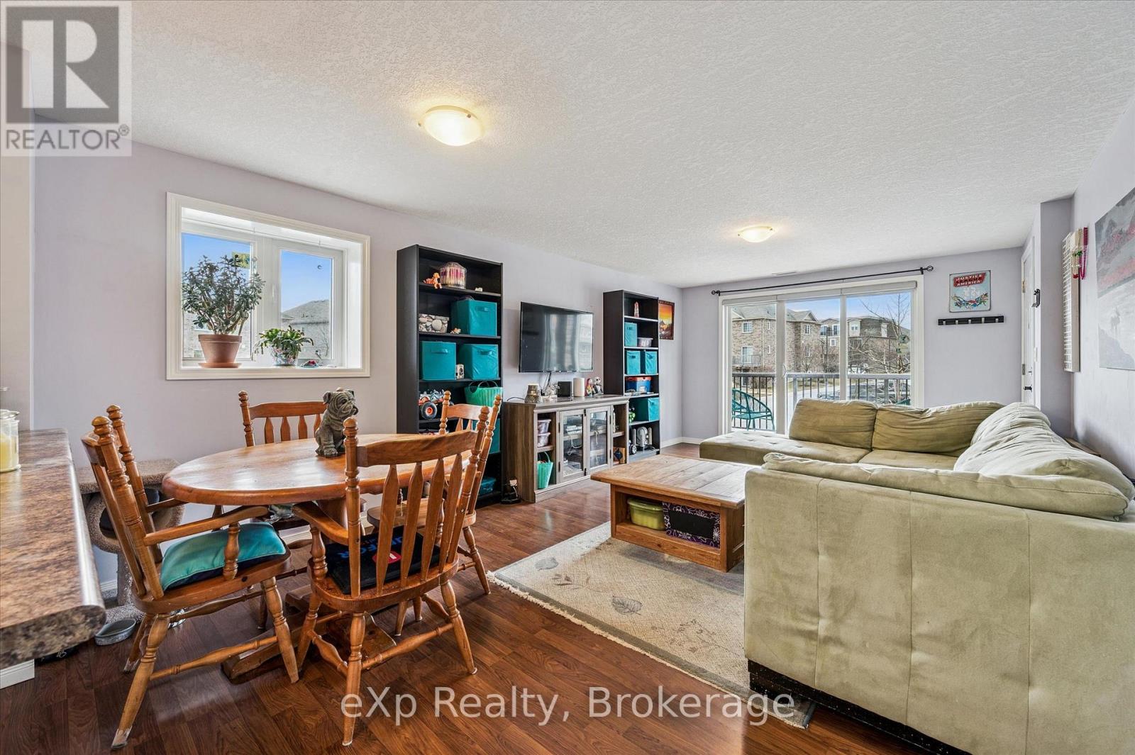Welcome to your next chapter at 87-35 Mountford Drive-a place where first-time buyers stop scrolling and start imagining.Tucked into a family-friendly pocket of Guelph and overlooking Peter Misersky Park, this bright 2-bedroom stacked townhouse offers a lifestyle that's hard to find at this price point. Enjoy your morning coffee on the front balcony and unwind in the evening on your oversized rear balcony with peaceful park views-two full-width outdoor spaces that truly extend your living area (because one balcony is nice... but two is better).Inside, the open-concept layout is both functional and inviting, with a seamless flow between the kitchen and living room-perfect for hosting, relaxing, or everyday living. The kitchen features a breakfast bar and modern lighting, creating a natural gathering space.Both bedrooms are generously sized and positioned at the back of the unit, each offering park views and direct access to the large private balcony-your own quiet retreat. A full 4-piece bathroom and in-suite laundry add everyday convenience.Located in a welcoming neighbourhood close to parks, schools, transit, and the Victor Davis Recreation Centre, this is an ideal opportunity to step into homeownership in a community you'll love.If you've been waiting for that perfect first home... this could be the one that opens the door. (id:64974)