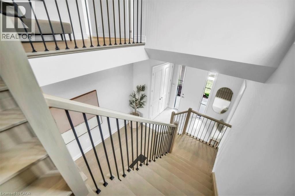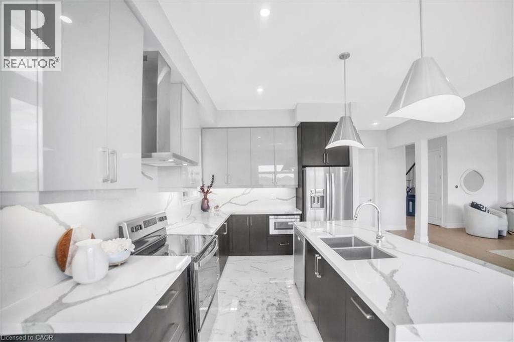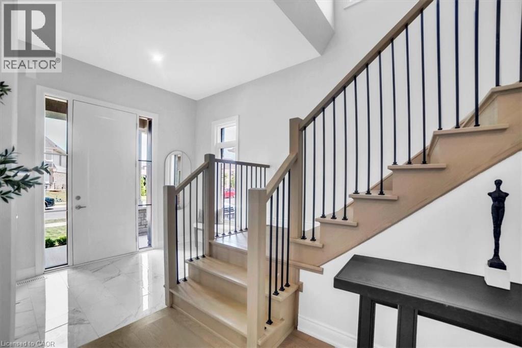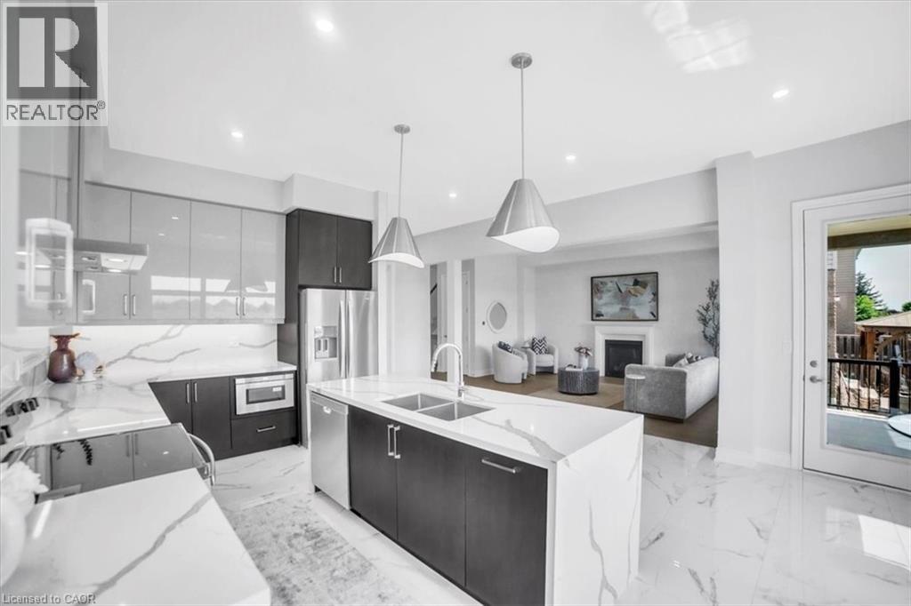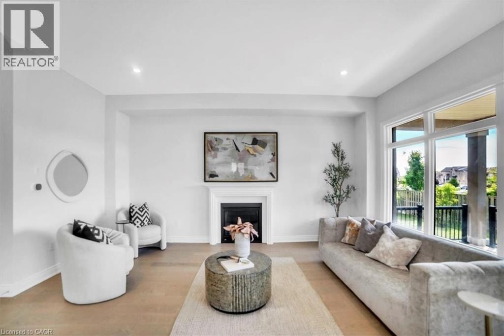 Introducing one of the most distinguished homes in the sought-after Stonegate Park community—welcome to 87 Aquasanta Crescent. Set on a premium lot backing directly onto a naturalized park and open space, this Capri Grande luxury model is a rare opportunity to own one of Hamilton’s most scenic west mountain homes, where tranquil surroundings and breathtaking sunsets become part of your daily experience. With 2,505 square feet of impeccably designed space, this fully detached home features a 10-foot main floor, smooth ceilings, and a seamless blend of premium porcelain tile and 6-inch oak hardwood flooring. The open-concept layout is anchored by a spacious great room with a linear fireplace and custom lighting, flowing effortlessly into a chef’s kitchen outfitted with two-tone urban cabinetry, taller uppers, pots & pans drawers, deep fridge cabinet, chimney-style hood, stainless steel appliances, and an extended island with integrated sink, recycling drawer, and built-in microwave drawer. A walk-in pantry and main floor laundry complete the convenience. Expansive windows bathe the interior in natural light and draw you toward the covered loggia, perfect for quiet coffee mornings or sunset wine evenings overlooking the natural landscape behind. Upstairs, the oak staircase leads to four spacious bedrooms. Two share a stylish Jack & Jill ensuite, one enjoys its own private ensuite, and the primary suite spans the rear of the home with serene park views, a spa-like ensuite with freestanding tub, glass shower, and private water closet. This home is move-in ready in as little as 30 days and located minutes from amenities, top schools, and major transit routes. Luxury. Nature. Community. This is 87 Aquasanta. (id:64974)