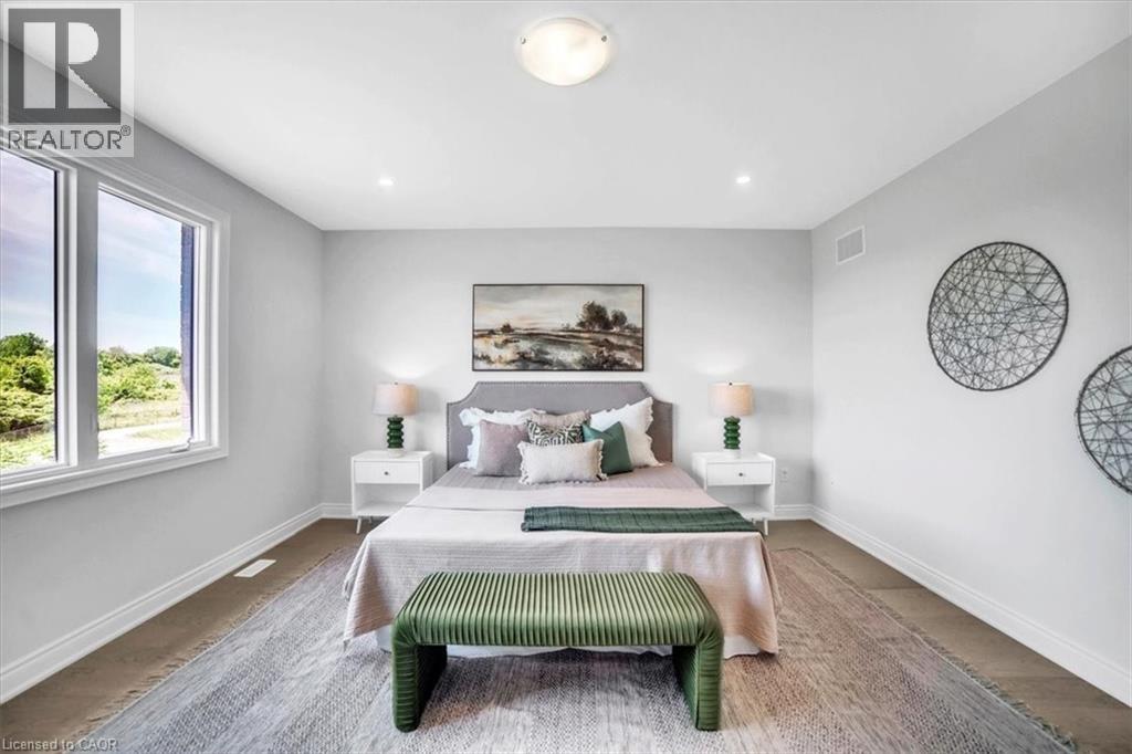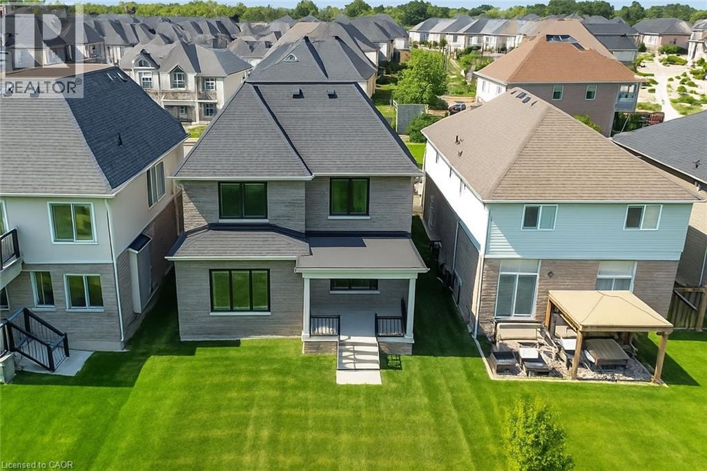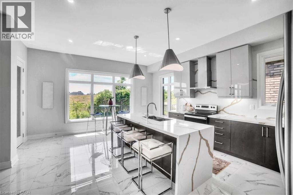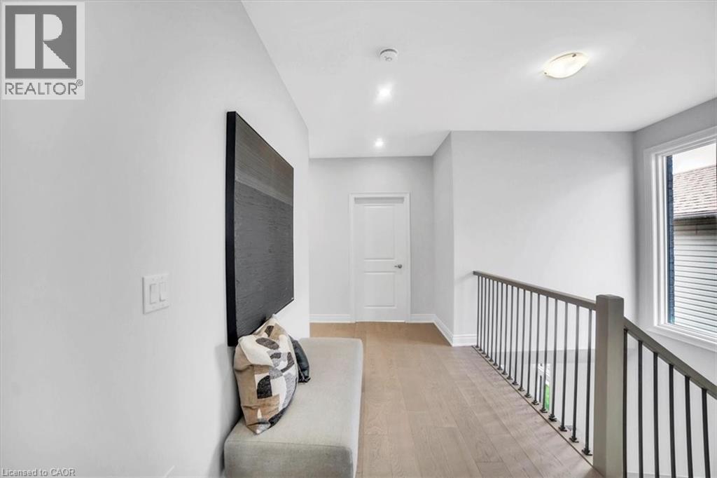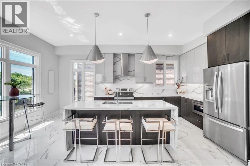 Introducing one of the most distinguished homes in the sought-after Stonegate Park community—welcome to 87 Aquasanta Crescent. Set on a premium lot backing directly onto a naturalized park and open space, this Capri Grande luxury model is a rare opportunity to own one of Hamilton’s most scenic west mountain homes, where tranquil surroundings and breathtaking sunsets become part of your daily experience. With 2,505 square feet of impeccably designed space, this fully detached home features a 10-foot main floor, smooth ceilings, and a seamless blend of premium porcelain tile and 6-inch oak hardwood flooring. The open-concept layout is anchored by a spacious great room with a linear fireplace and custom lighting, flowing effortlessly into a chef’s kitchen outfitted with two-tone urban cabinetry, taller uppers, pots & pans drawers, deep fridge cabinet, chimney-style hood, stainless steel appliances, and an extended island with integrated sink, recycling drawer, and built-in microwave drawer. A walk-in pantry and main floor laundry complete the convenience. Expansive windows bathe the interior in natural light and draw you toward the covered loggia, perfect for quiet coffee mornings or sunset wine evenings overlooking the natural landscape behind. Upstairs, the oak staircase leads to four spacious bedrooms. Two share a stylish Jack & Jill ensuite, one enjoys its own private ensuite, and the primary suite spans the rear of the home with serene park views, a spa-like ensuite with freestanding tub, glass shower, and private water closet. This home is move-in ready in as little as 30 days and located minutes from amenities, top schools, and major transit routes. Luxury. Nature. Community. This is 87 Aquasanta. (id:64974)
