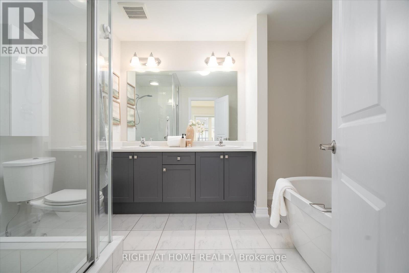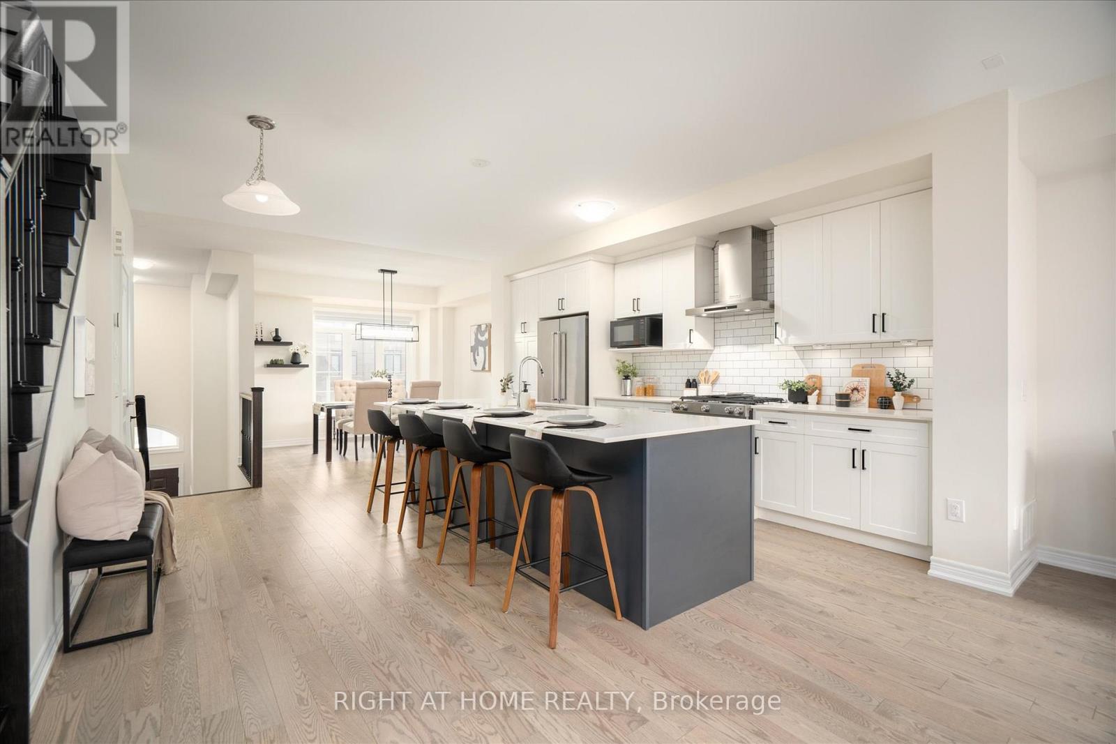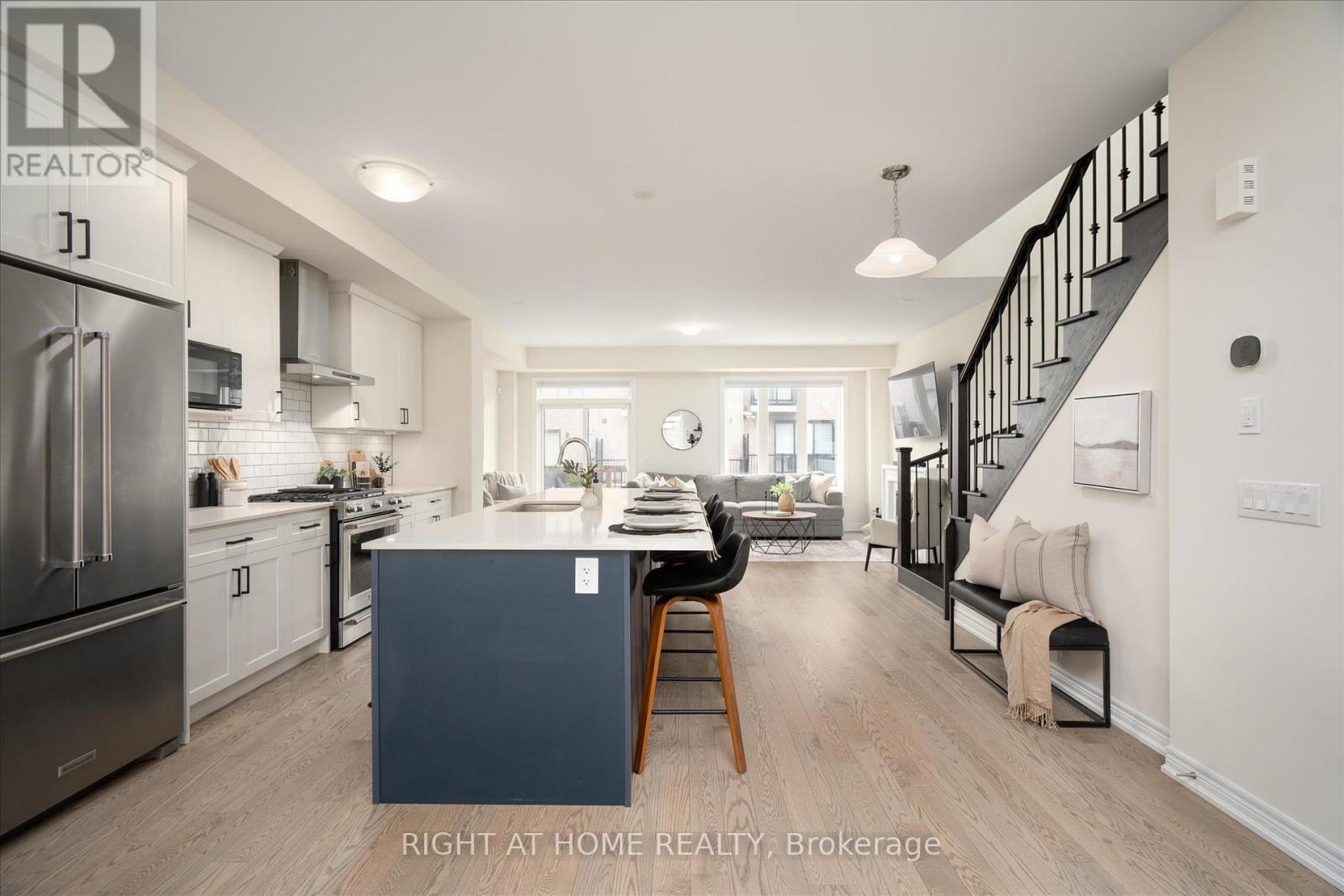 Welcome to 87 Dorian Dr in Whitby - A freehold townhome built by Heathwood Homes in 2022, offering 2,339 sq. ft. of above-grade living space, 3 bedrooms, 4 bathrooms, and a versatile main floor bonus family room currently set up as a home office. Thoughtfully designed for modern living, this home features 9-ft ceilings on the main floor, an 8-ft front door, and a bright, functional layout with quality finishes throughout. The upgraded kitchen is a standout with a large two-tone island, stainless steel appliances,soft-close cabinetry and drawers, crown moulding, pantry, and deep upper cabinetry for added storage. Hardwood flooring in the kitchen and hallway adds warmth and style, while the electric fireplace creates a comfortable living space. Upstairs, the spacious primary bedroom includes a his & hers closet and a 5-piece primary ensuite w/ double sink and upgraded vanity cabinetry and lighting. The two additional bedrooms are well-sized for younger or older kids. Additional highlights include 2 powder rooms, central vacuum with air hose kit on all levels, HRV, high-efficiency furnace and A/C, rough-in for 4 in-ceiling speakers, 200-amp electrical panel, home security system, and an extra-deep garage for added storage. An unfinished basement allows for creating an additional living space. In close proximity to Thermea Spa, Heber Down Conservation Area, Pickleball Courts, Walking Trails, Place of worship, shopping, and much more. Afantastic opportunity to own a newer, well-appointed home in a desirable Whitby neighbourhood. (id:64974)