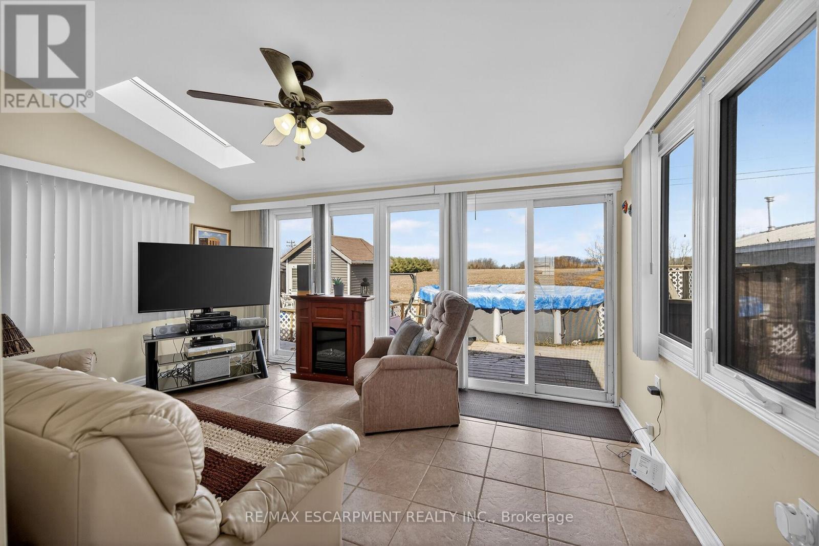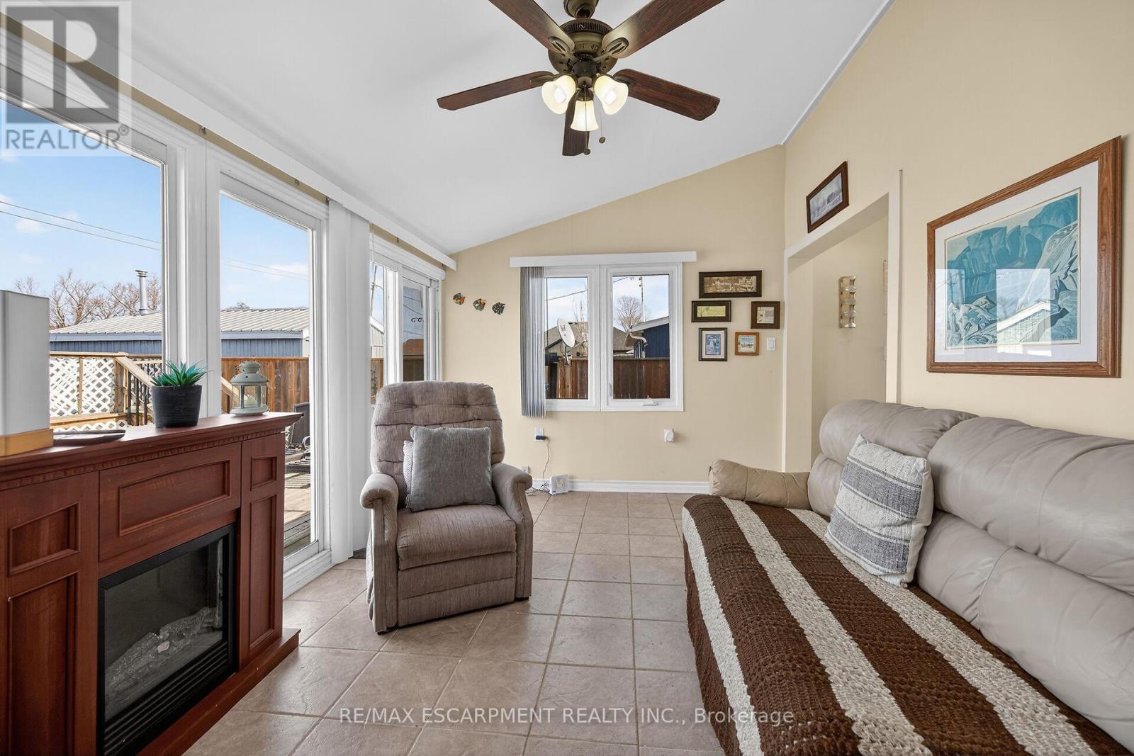 Your Lake Escape Awaits!! With Spring nearing it's time to take advantage of Lake Erie - a magnificent Great Lake offering aquatic adventures galore. Imagine not worrying about the horrendous 4 hour drive to Ontario's North - when less than an hour commute from Hamilton, Burlington, Brantford, Niagara, QEW & 403 - you can be sitting on your very own newly constructed (2024) 280sf lake facing entertainment deck accented w/stylish glass railings - providing the ultimate venue to relax & enjoy incredible, panoramic water vistas across scenic Lakeshore Road. After a day of sunshine - retreat inside & embrace 819sf of nautical beauty this tastefully presented 3 bedroom cottage exudes. Situated on landscaped 50ft x 100ft lot overlooking endless acres of farm fields is totally renovated lake house (studs out-2009), w/current owner careful to maintain it's sea-side ambience, as evidenced by the nautical inspired décor. Showcasing brilliant white kitchen sporting ample cabinetry, chic tile back-splash, SS fridge & n/gas cook stove - continues to open concept dining/living room savoring the n/g fireplace's warmth while basking in the abundance of natural light cascading thru multiple water facing windows & 2 gardens doors. Flanking 3 sizeable bedrooms is beautifully updated 3pc bath-2024 - leads to rear family room ftrs vaulted ceilings, easy-wear tile flooring, floor to ceiling windows & patio door walk-out accessing 540sf rear deck system & resort style yard centered around refreshing 18ft round swimming pool. Atlantic blue exterior siding-2023 complimented w/stylish stone-like skirting sets this "Erie Gem" apart from it's peers. Minimal cost, easy to insulate plumbing/water system ensuring affordable, future year-round lake living. Extras - metal roof-2023, vinyl windows, concrete pier foundation, laminate flooring, 2000g cistern, septic system, 100 amp hydro, metal gazebo, owned water heater & majority of furnishings. Can't you just feel the warm lake breezes BECKONING! (id:64974)