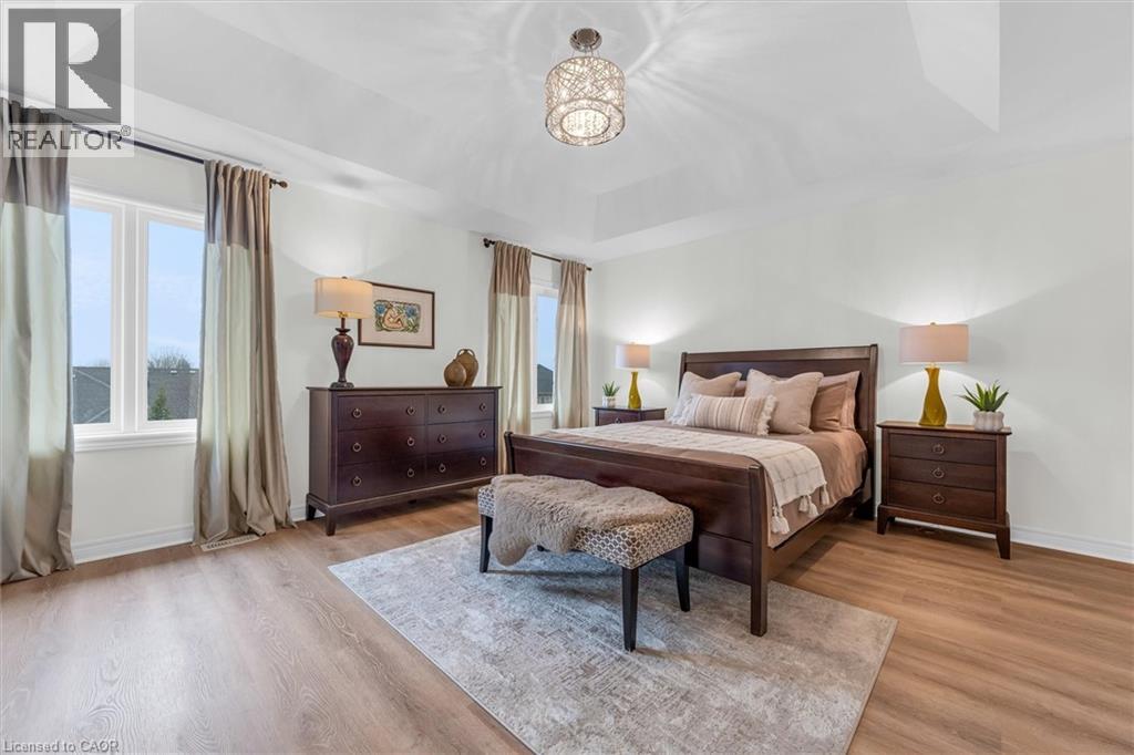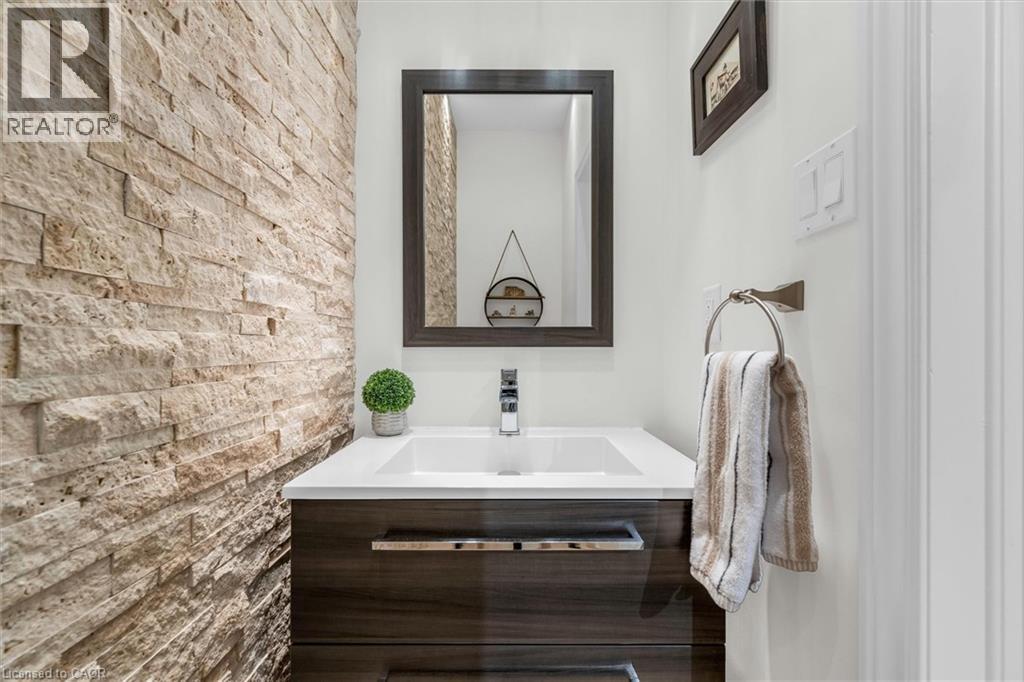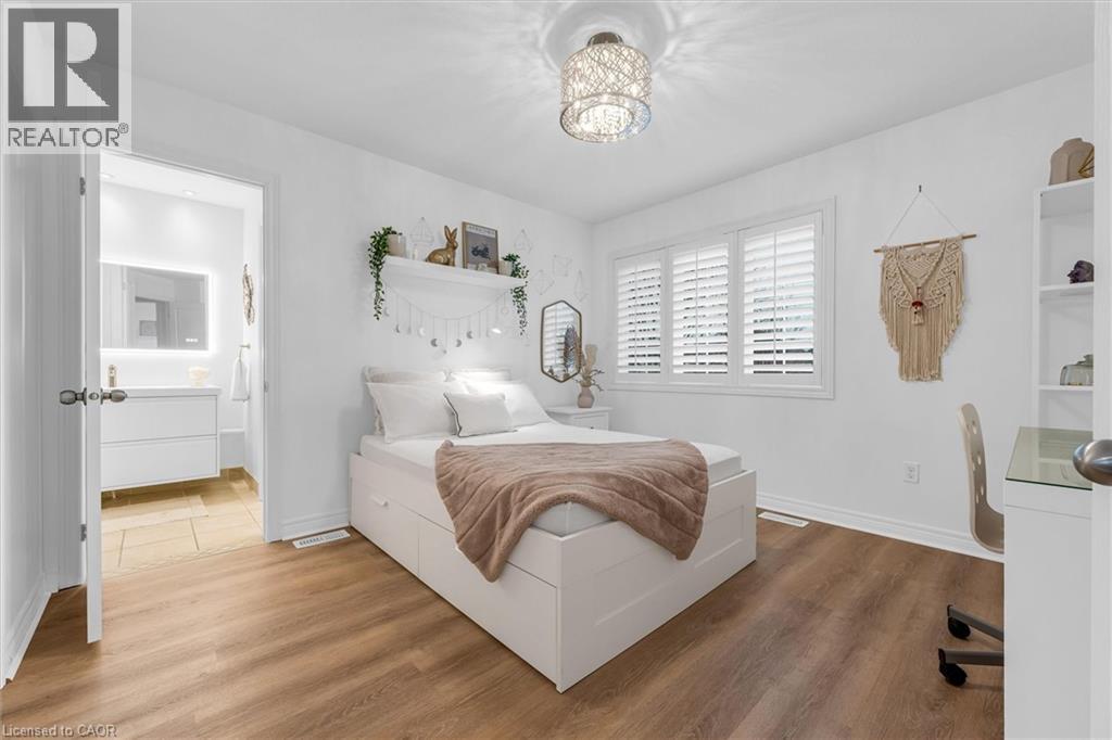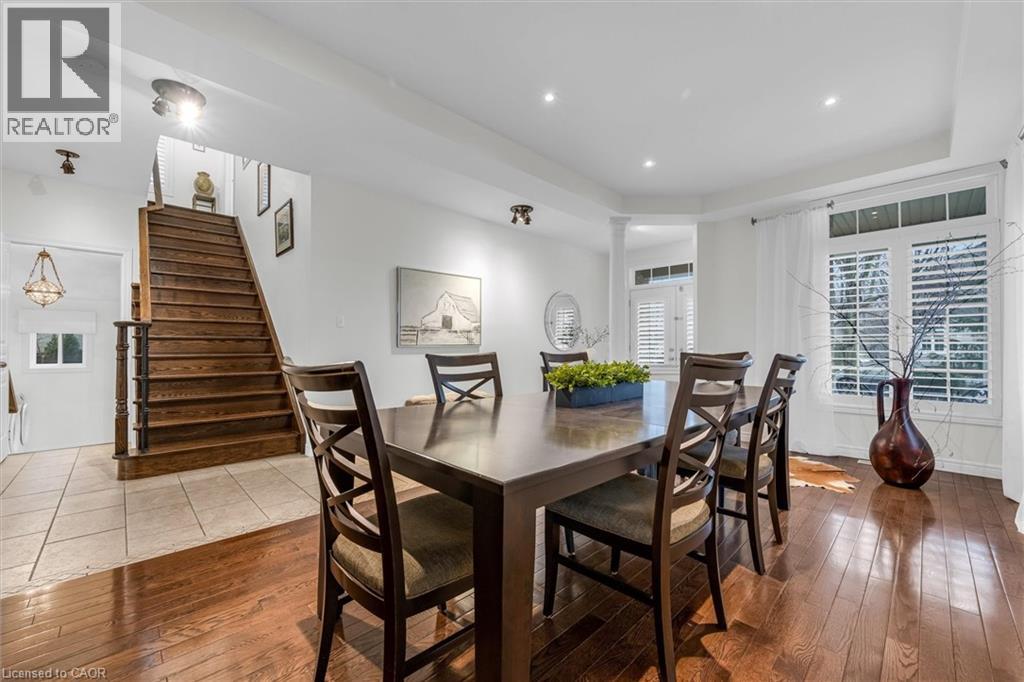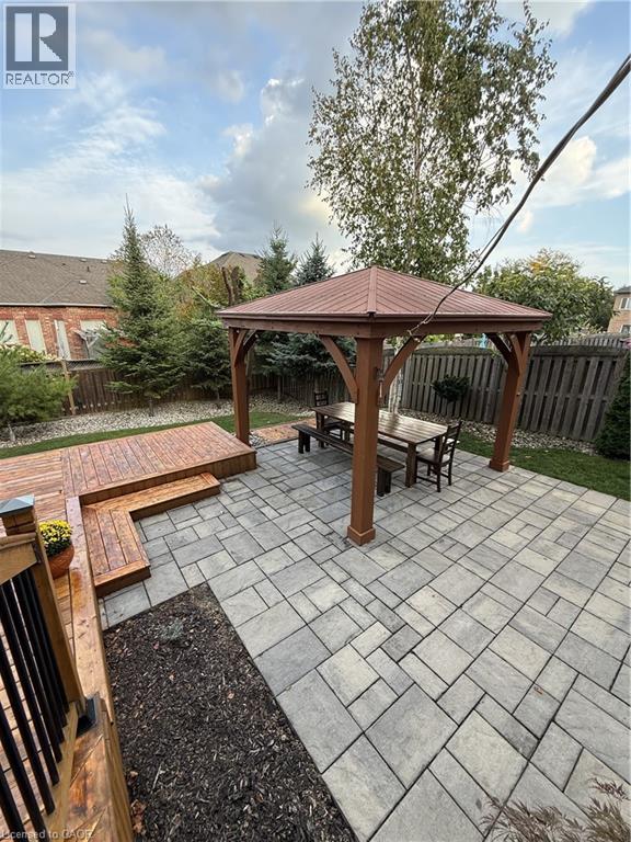 Located on a quiet street in a desirable Dundas neighbourhood, this remarkably maintained home is just steps from conservation trails and close to Dundas Valley Golf & Curling Club. The main floor features 9 ft ceilings, a spacious living room with a striking real stone feature wall, and large windows that fill the space with natural light. The bright and spacious dining area can comfortably host both small and large gatherings. The gourmet kitchen offers maple cabinetry, granite countertops, stainless steel appliances, and a large island with sink and seating - perfect for everyday living and entertaining. The main level also includes a powder room with a real stone feature wall, a laundry room, and inside entry to the double car garage. French doors lead to a generous deck featuring a hot tub covered by a pergola, along with a separate large stone patio with a gazebo - ideal for outdoor entertaining. The professionally landscaped front yard and pool-sized backyard include mature trees, a vegetable garden, and multiple seating areas. An enclosed side yard provides space for a future shed or additional equipment storage. The upper level offers four bedrooms and two full bathrooms, including a spacious primary bedroom with a 4-piece ensuite, soaker tub, and large glass shower. Enjoy being just steps from Dundas Valley Conservation Area and the Bruce Trail. Updates include: Roof (2025), Furnace (2026), Washer & Dryer (2025), Garage Door Opener (2025), Hot Tub Heater (2025). Nothing to do - Just Move In. (id:64974)