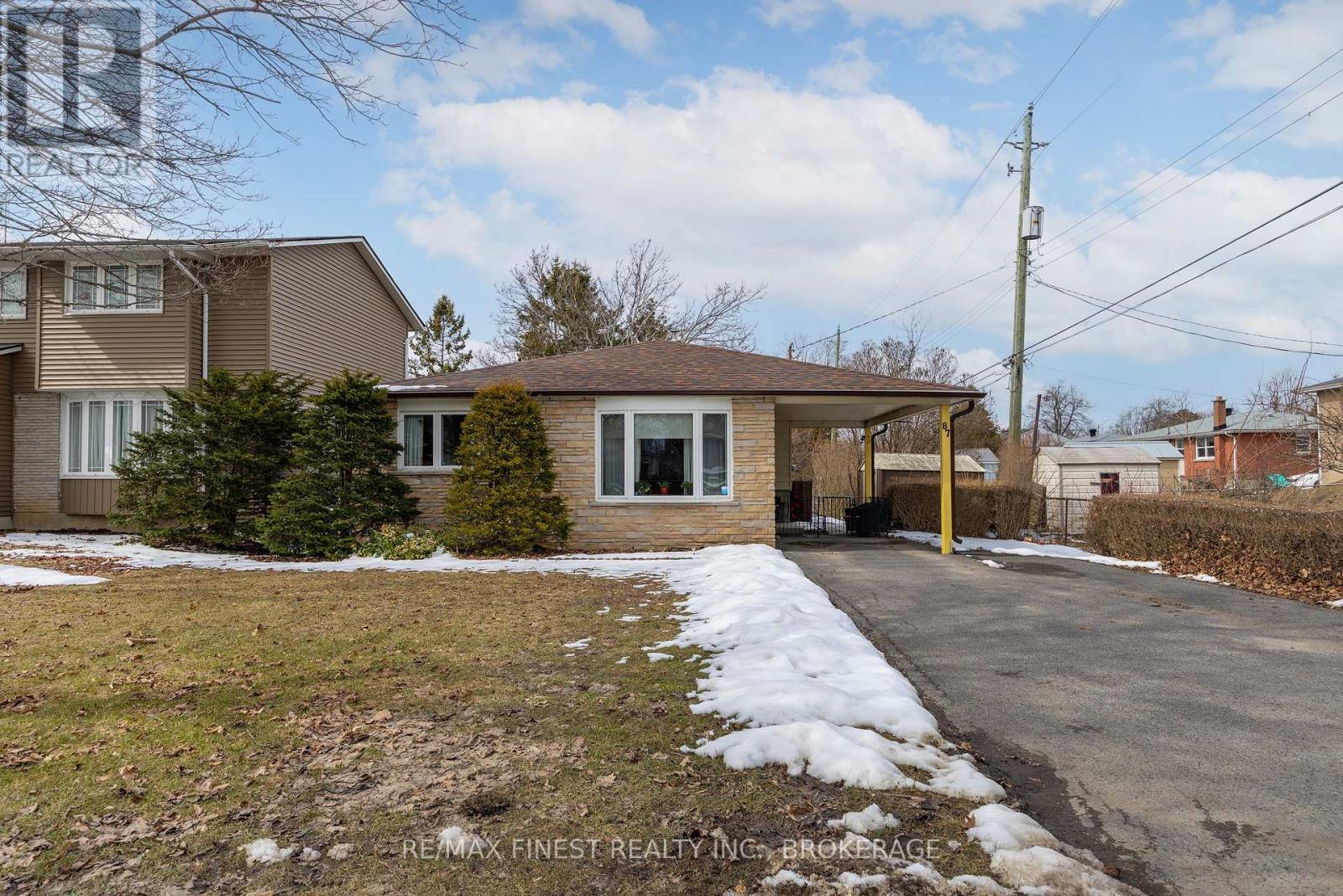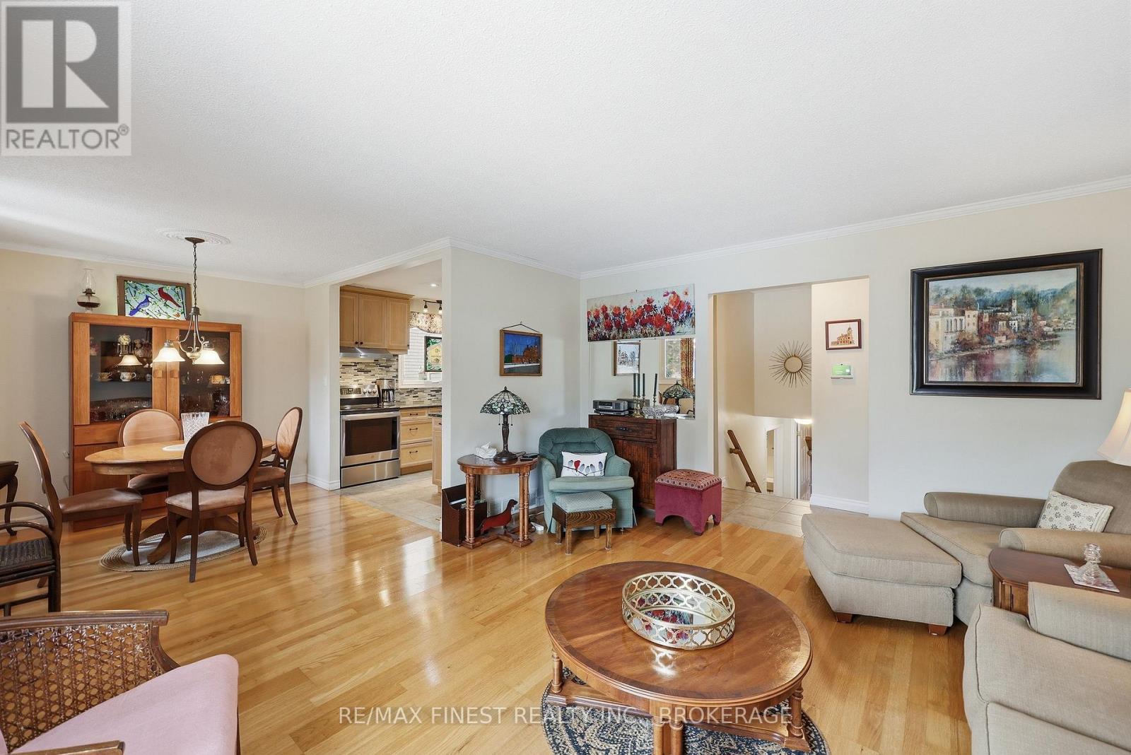 Welcome to Old Oak - a lovingly maintained sidesplit proudly offered by its original owner, showcasing true pride of ownership throughout. Ideally located just minutes from St. Lawrence College, this home offers exceptional space, functionality, and future potential. Set on a deep, private lot surrounded by mature trees, the outdoor space features a charming stone patio with plenty of room to create your dream backyard, including the possibility of adding a pool. A convenient carport and ample parking complete the exterior. Inside, you'll find bright and spacious living and dining areas highlighted by gleaming hardwood floors. The beautifully updated kitchen offers abundant pantry space, stainless steel appliances, and a cozy eat-in bar, perfect for everyday living and entertaining. The upper level features three generously sized bedrooms, along with a well-appointed 4-piece bathroom complete with a relaxing jacuzzi tub. The lower level adds incredible versatility with a large rec room, dedicated office space, oversized laundry room, an additional 3-piece bathroom, and excellent in-law suite potential. Situated in a desirable location close to amenities, schools, and transit, this is a rare opportunity to own a well-cared-for home in a fantastic neighborhood. (id:64974)