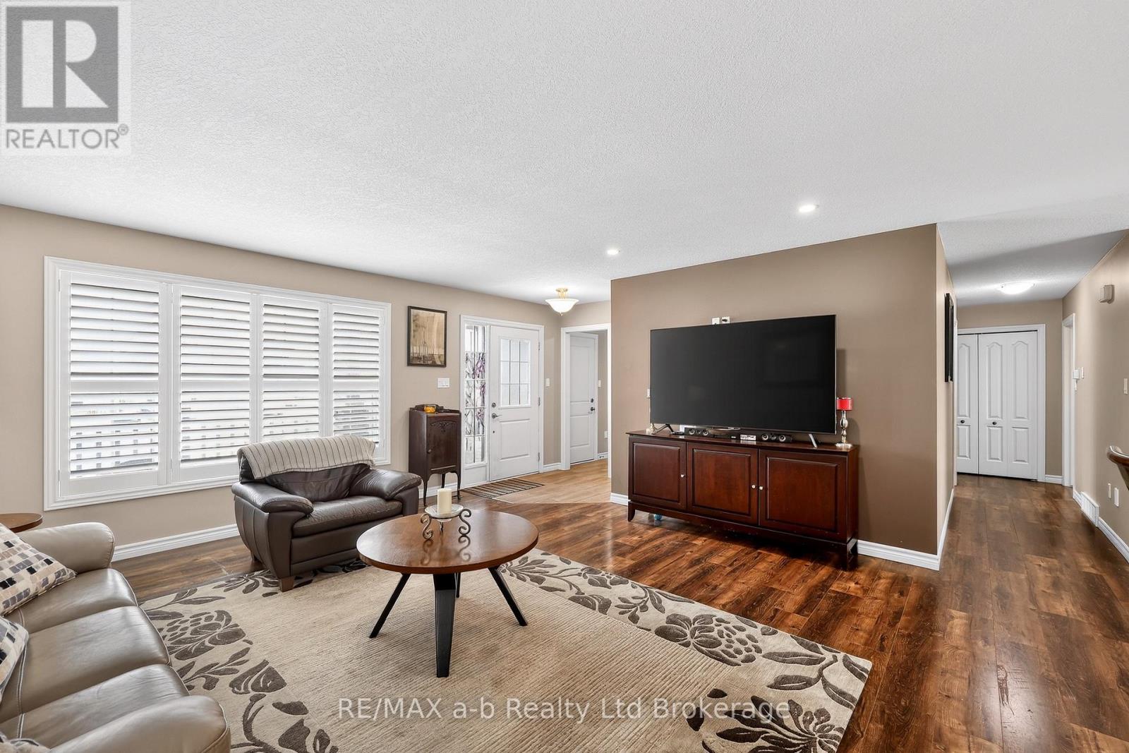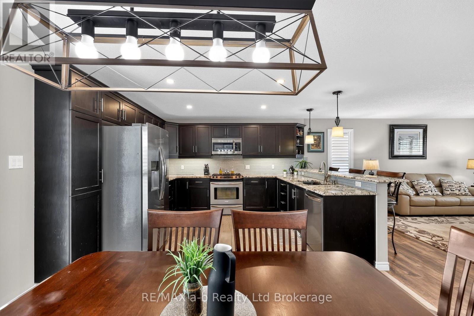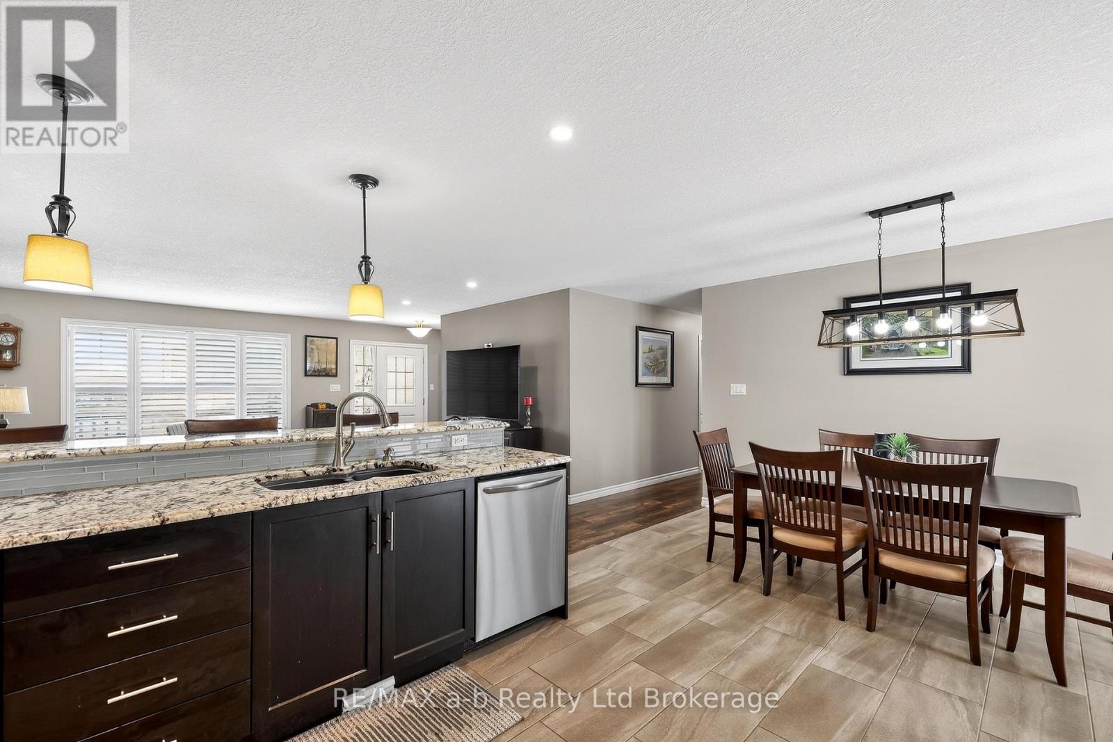 Welcome to this beautifully maintained 2+1 bedroom bungalow offering 2,018 sq ft of finished living space, located in a desirable Ingersoll neighbourhood within the Royal Roads Public School district. With its bright open layout, quality finishes, and excellent outdoor space, this home offers comfortable living both inside and out.The main floor features 1,325 sq ft with laminate flooring and a spacious open-concept design. The kitchen offers granite countertops, porcelain tile, abundant cabinetry, glass tiled backsplash, stainless steel appliances, and a large breakfast bar that overlooks the living area-ideal for everyday living and entertaining. Large windows fill the home with natural light, creating a warm and inviting atmosphere.The primary bedroom includes a walk-in closet and 5pc ensuite, the main level also offers a second bedroom and full bathroom.The finished lower level expands the living space with a generous family room, an additional bedroom, and a potential fourth bedroom already pre-framed and is currently used as storage, offering excellent potential for growing families or guests.Step outside to the back deck, where you'll find a 2-year-old saltwater above-ground pool, perfect for summer enjoyment, along with a storage shed and fenced yard.Additional highlights include a heated double car garage, great storage, custom blinds, and a location that is close to parks with quick and easy access to Highway 401, making commuting convenient.A wonderful opportunity to own a move-in ready bungalow in a family-friendly neighbourhood. (id:64974)