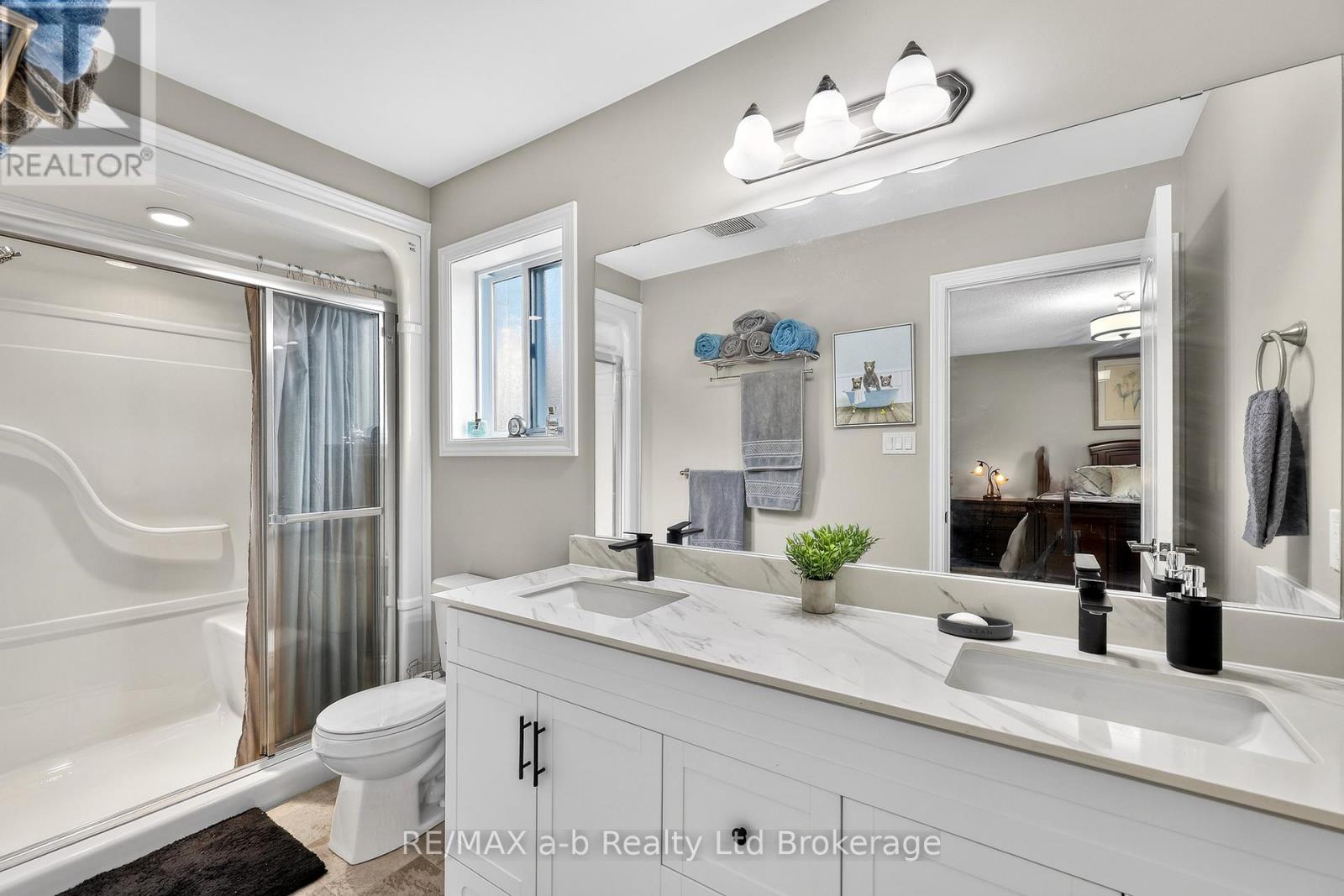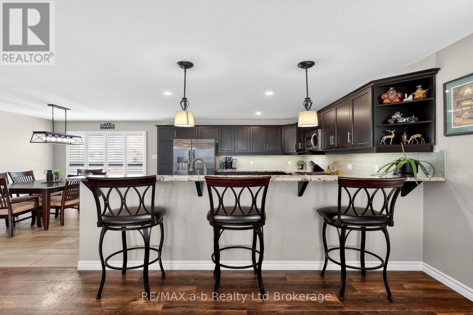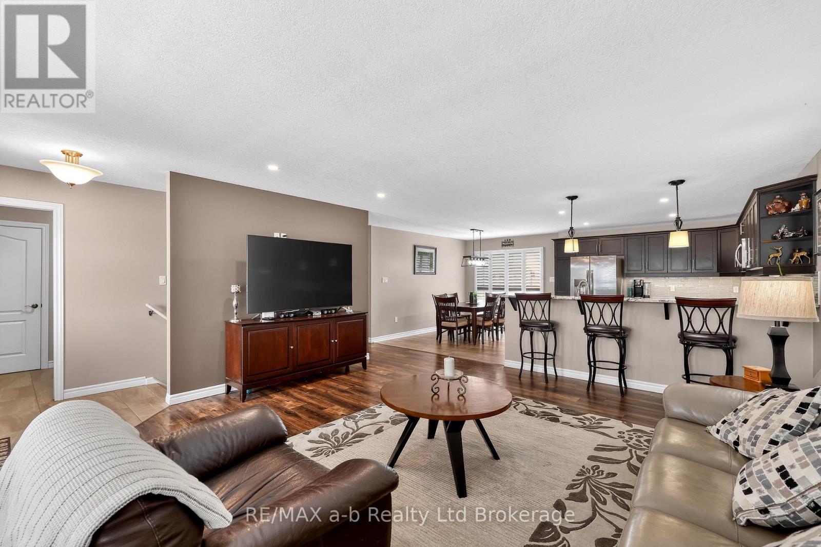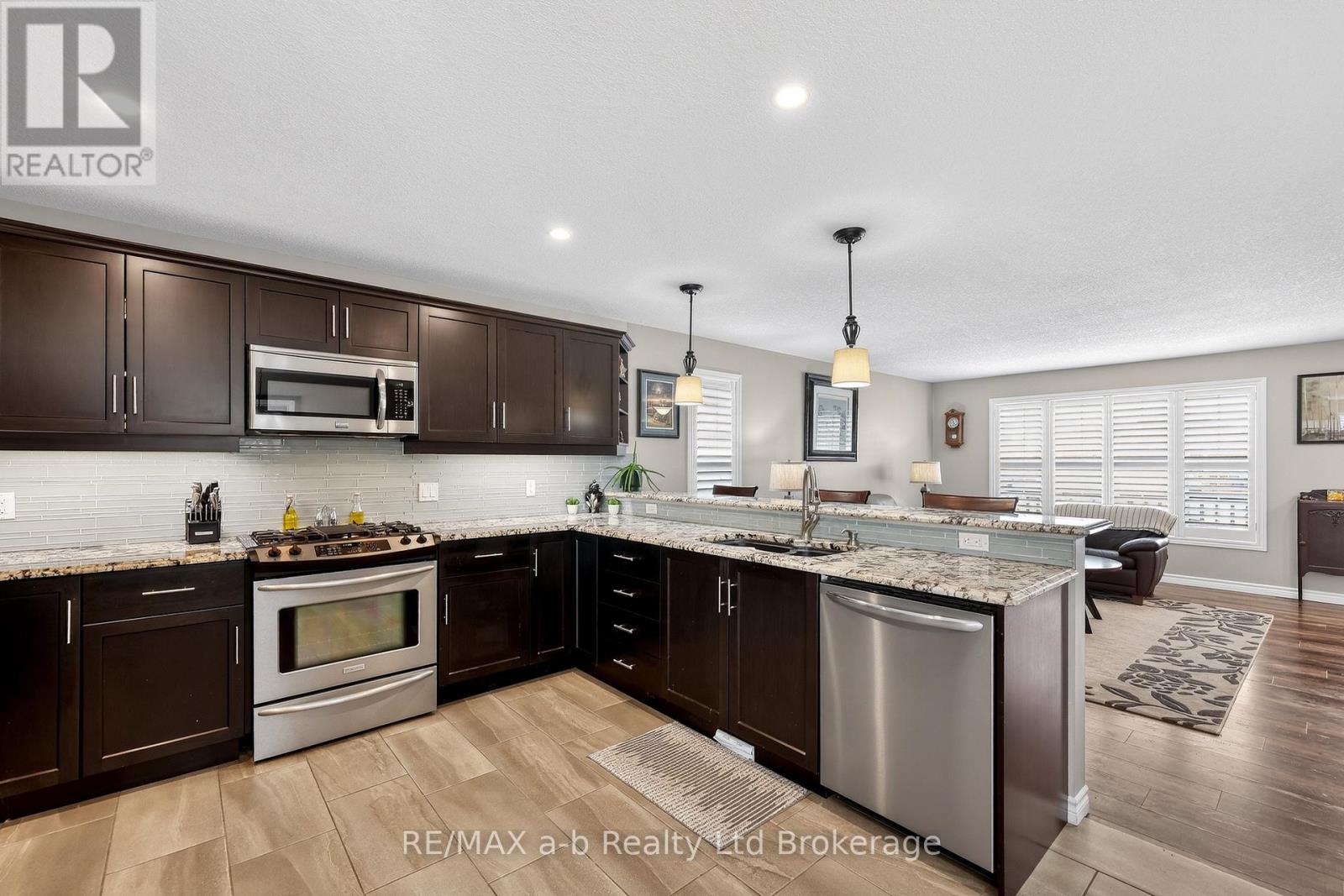 Welcome to this beautifully maintained 2+1 bedroom bungalow offering 2,018 sq ft of finished living space, located in a desirable Ingersoll neighbourhood within the Royal Roads Public School district. With its bright open layout, quality finishes, and excellent outdoor space, this home offers comfortable living both inside and out.The main floor features 1,325 sq ft with laminate flooring and a spacious open-concept design. The kitchen offers granite countertops, porcelain tile, abundant cabinetry, glass tiled backsplash, stainless steel appliances, and a large breakfast bar that overlooks the living area-ideal for everyday living and entertaining. Large windows fill the home with natural light, creating a warm and inviting atmosphere.The primary bedroom includes a walk-in closet and 5pc ensuite, the main level also offers a second bedroom and full bathroom.The finished lower level expands the living space with a generous family room, an additional bedroom, and a potential fourth bedroom already pre-framed and is currently used as storage, offering excellent potential for growing families or guests.Step outside to the back deck, where you'll find a 2-year-old saltwater above-ground pool, perfect for summer enjoyment, along with a storage shed and fenced yard.Additional highlights include a heated double car garage, great storage, custom blinds, and a location that is close to parks with quick and easy access to Highway 401, making commuting convenient.A wonderful opportunity to own a move-in ready bungalow in a family-friendly neighbourhood. (id:64974)