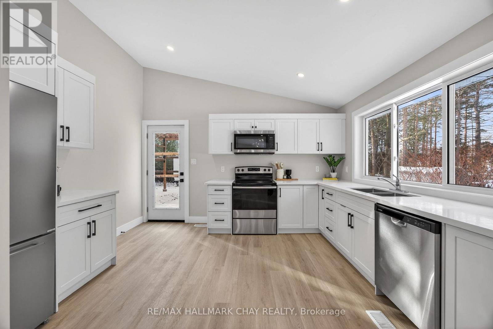 Welcome to 8717 Beachwood Road in the heart of Wasaga Beach - a fully renovated, move-in-ready gem that's been completely transformed from the studs up with no expense spared. This bright and modern home boasts all-new electrical service, brand-new plumbing, upgraded insulation, a new roof, new windows and doors, luxury vinyl plank flooring throughout, a stunning custom kitchen with quartz countertops and premium stainless-steel appliances, designer bathroom, and stylish LED lighting inside and out. Offering three spacious bedrooms, one full bathroom, and an open-concept living area drenched in natural light, it's the perfect blend of contemporary comfort and laid-back beach vibe. Ideal as a year-round family home, a carefree weekend cottage, or a high-demand short-term rental chalet, its unbeatable location puts you just a 5-minute stroll from the sandy shores of Wasaga Beach and only a quick 15-minute drive to Blue Mountain Village and the ski hills. Surrounded by trails, parks, shops, and restaurants, this turn-key property delivers four-season living at its finest - simply unpack and start enjoying the best of Wasaga Beach today! (id:64974)