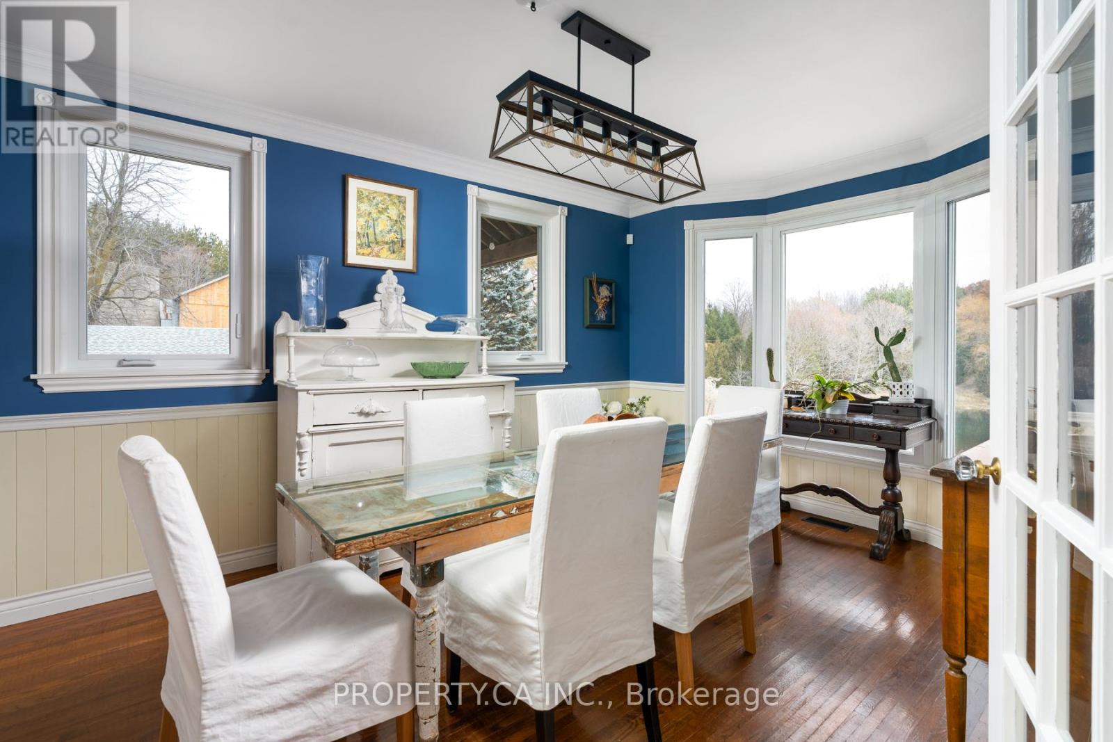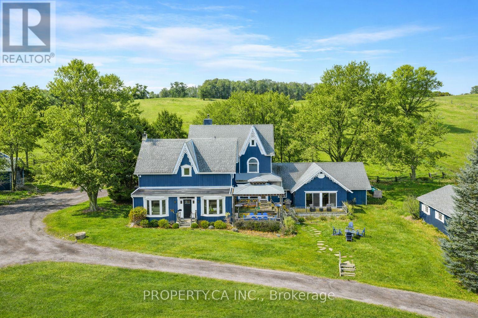 Tucked into the rolling hills of Mulmur, Heaven-on-Fifth feels like a storybook brought to life. This remarkable nine-bedroom Victorian farmhouse has been thoughtfully reimagined into a refined modern country retreat, blending timeless charm with elevated design. Whether you're seeking a private family escape, an income-generating opportunity, or a forever home, this property offers exceptional versatility.A winding drive carries you through mature forest, across a gentle river and past a tranquil private pond, revealing a serene setting surrounded by Annabelle hydrangeas and towering trees. Inside, warm pine floors, exposed beams, and expansive open-concept living spaces create an inviting atmosphere ideal for both everyday living and entertaining. Enjoy formal living and dining rooms, a beautifully updated kitchen, a large family room, and an impressive games room with a built-in wet bar.The second level features a peaceful primary suite with a walk-in closet, spa-inspired open shower, and private water closet, alongside three additional bedrooms and a four-piece bath. The third floor offers a secondary suite with ensuite plus a flexible bedroom or office. The lower level completes the home with three additional bedrooms.Outdoors, a cedar deck with a built-in hot tub and multiple dining areas overlooks a new saltwater pool, creating a true resort-style experience. With year-round amenities including a games room and gym, this turnkey property is equally suited as a recreational retreat, full-time residence, or destination investment.Ideally located just 80 minutes from Toronto, minutes to Mansfield Ski Club, and close to Creemore, Mad River Golf Club, and Collingwood, Heaven-on-Fifth offers privacy without compromise. A truly one-of-a-kind opportunity to live, host, and unwind. (id:64974)
