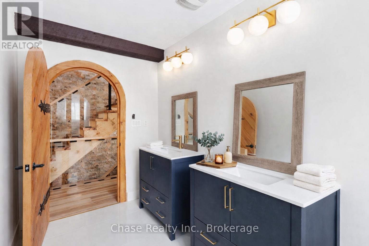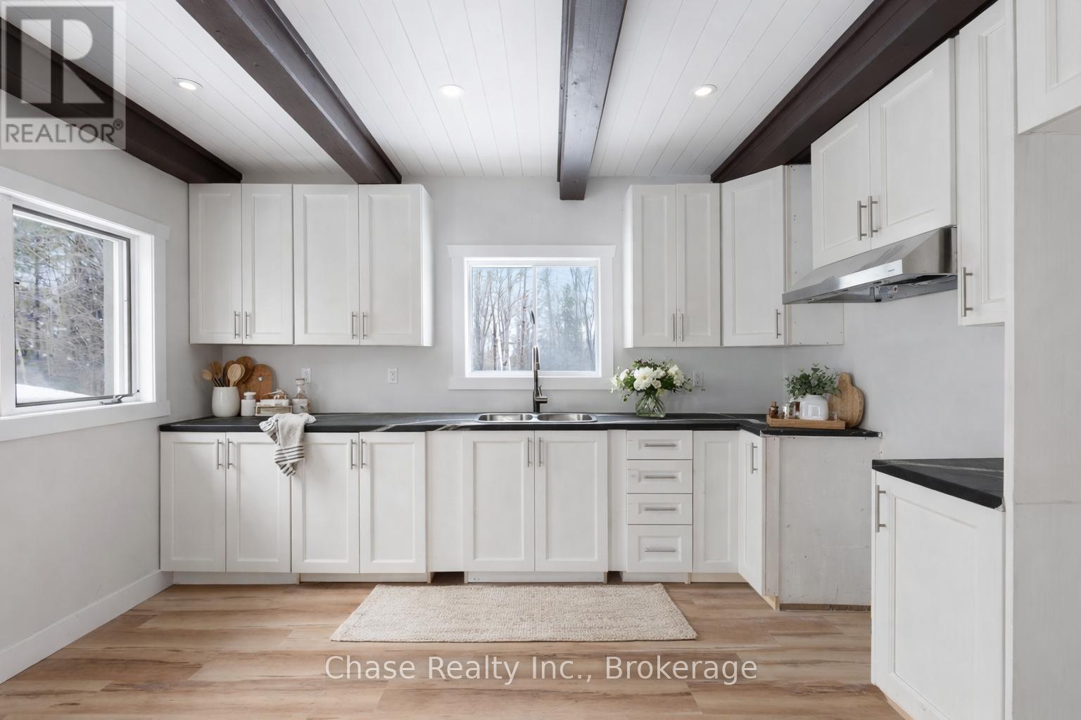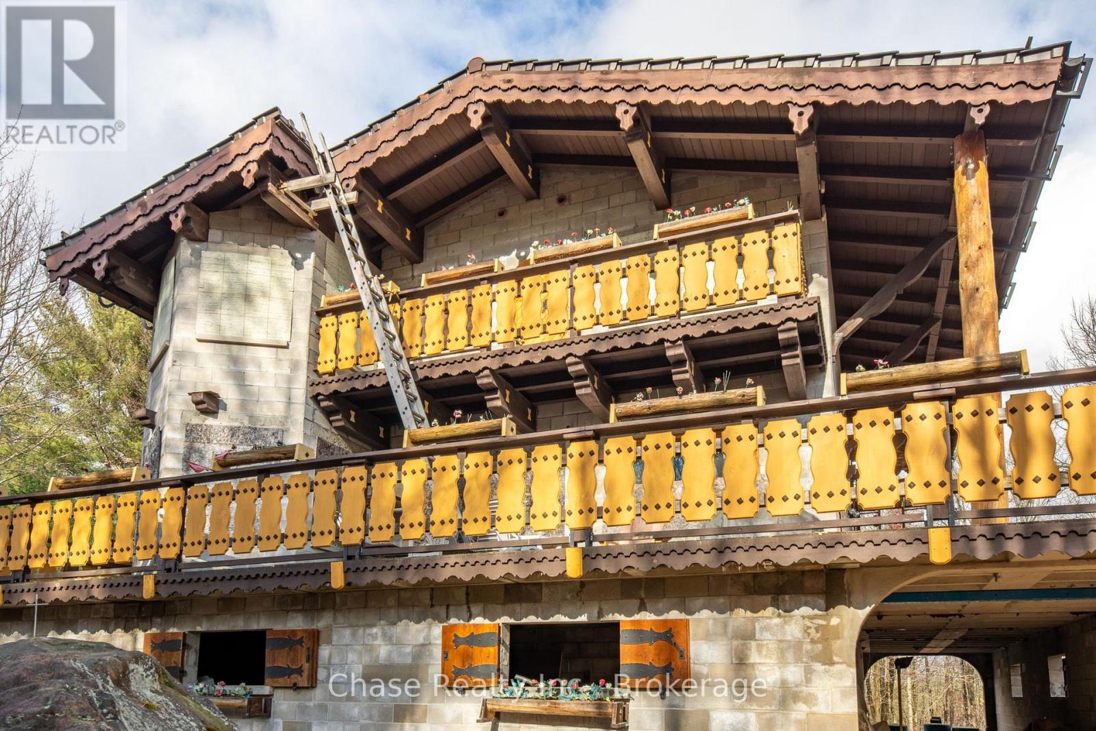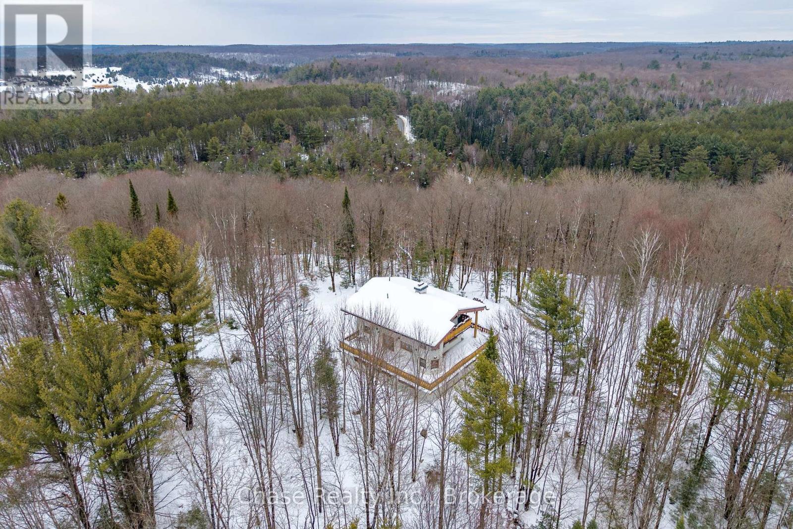 Situated on a private hill in Port Sydney, this European-inspired residence is a refined luxury retreat immersed in nature. Set on a 5-acre lot, surrounded by mature trees and frequent wildlife sightings, the property offers exceptional privacy and tranquility-your own secluded sanctuary.Offering approximately 3,000 sq. ft. of impeccably crafted living space, this 3-bedroom, 2-bathroom home showcases timeless elegance with a dramatic post-and-beam aesthetic throughout. Two sophisticated living rooms are anchored by grand stone fireplaces, while the primary suite features its own striking stone fireplace, creating an intimate and indulgent atmosphere.High-end finishes define the interior, including quartz countertops, luxury vinyl plank flooring, and architectural open-rise oak staircases. The primary suite opens to a private second-floor exterior deck, while a wrap-around, partially covered deck extends the main living area-perfect for entertaining, relaxing, and enjoying the peaceful surroundings in any season. Lower floor has a fully covered wrap around storage area. A double car garage adds both convenience and functionality. Located within close proximity to six pristine lakes, this exceptional property offers a rare blend of European character, modern luxury, and a coveted natural setting, delivering an elevated lifestyle of comfort, privacy, and year-round outdoor enjoyment. Opportunity to build a second dwelling! (id:64974)