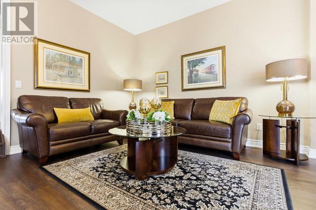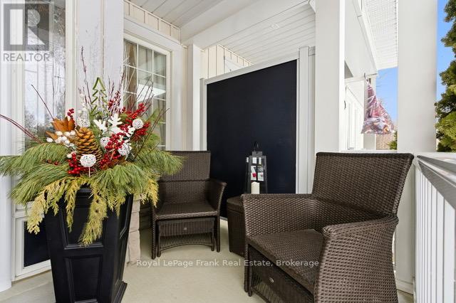 Discover the charm of this exquisite bungalow townhouse nestled in the picturesque town of Cobourg just a one hour drive east of Toronto. Imagine unwinding on your inviting front porch, overlooking a peaceful, tree-lined park. Located in a tranquil west-end neighbourhood, this home is just a short stroll from stores, mall, parks and more. This stunning turnkey property is meticulously finished from top to bottom. The upgraded kitchen is a chef's delight, boasting elegant cabinet crown moldings, high-quality stainless steel appliances, and sleek granite countertops. Luxury vinyl/laminate flooring graces most of the home, adding both style and durability. The beautifully finished basement is perfect for entertaining, featuring a spacious rec room complete with a wet bar, 3rd bedroom and pristine 4pc bath. Step outside from your main floor to your private back yard oasis with a two-tiered deck that backs onto lush green space, enhanced by an electric awning for those sunny afternoons. A fabulous garage loft offers the perfect retreat for a man cave, workshop or additional storage. This property is truly a gem that must not be missed!! (id:64974)
