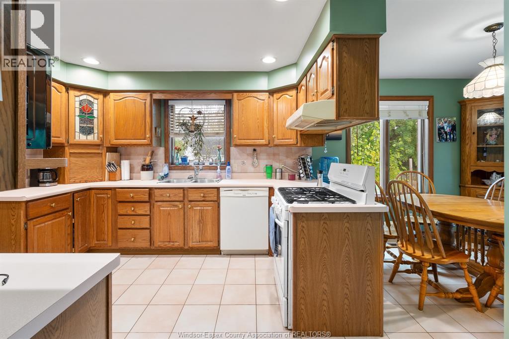 Welcome to this stunning solid brick ranch on a peaceful half-acre corner lot just outside of Kingsville. Enjoy the best of country living - quiet surroundings with schools, shops, and amenities just minutes away. This well-maintained home features a bright, open layout with soaring ceilings, 4 spacious bedrooms, and 3 full bathrooms including a primary with ensuite. Main floor laundry adds everyday convenience. The fully finished lower level is perfect for family gatherings, a hobby room, or extra storage. The attached double garage with inside entry provides direct kitchen access. Outside, enjoy a large yard with mature trees - ideal for relaxing or entertaining. Space, privacy, and comfort await. Don't miss this one. (id:64974)