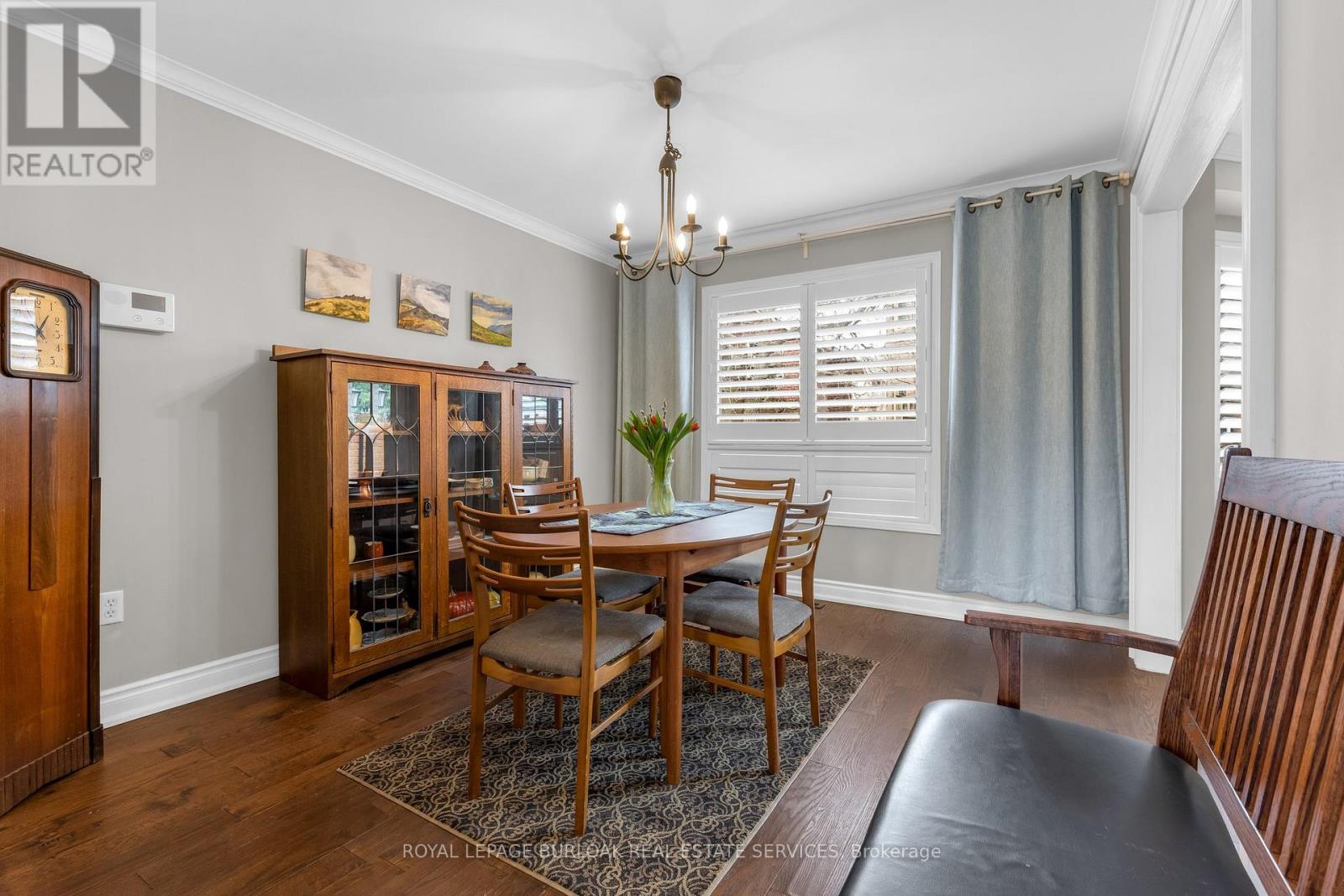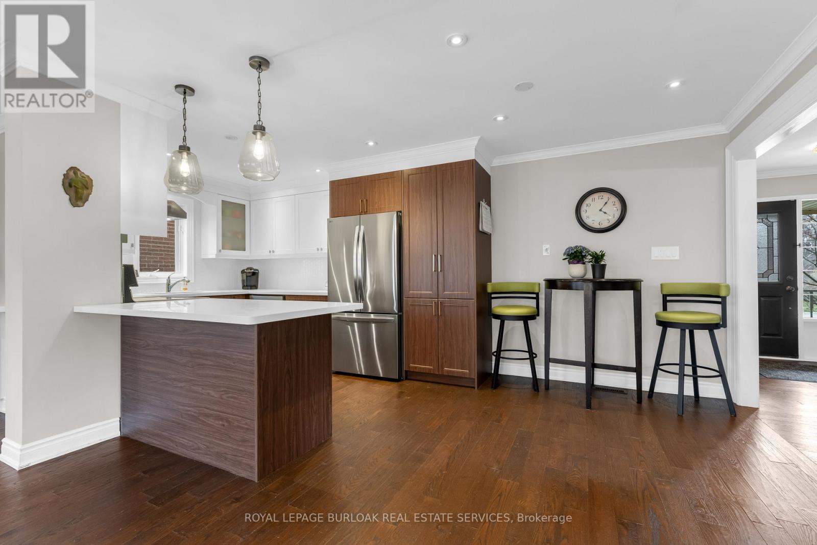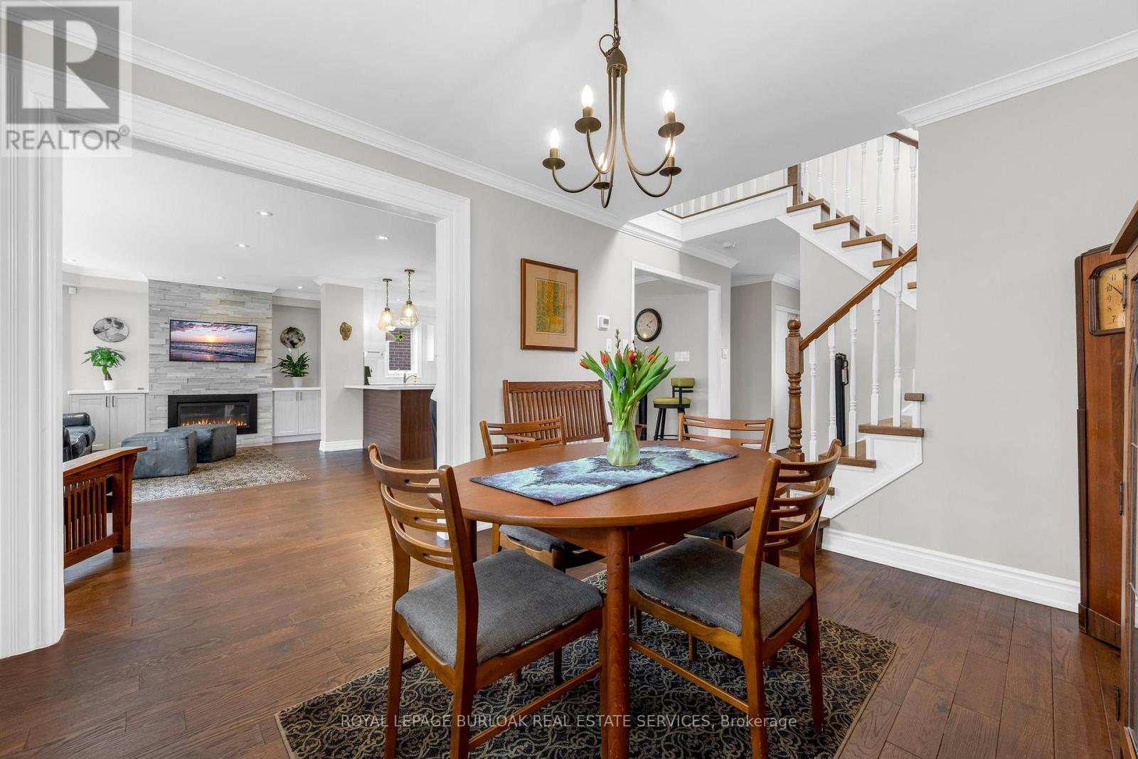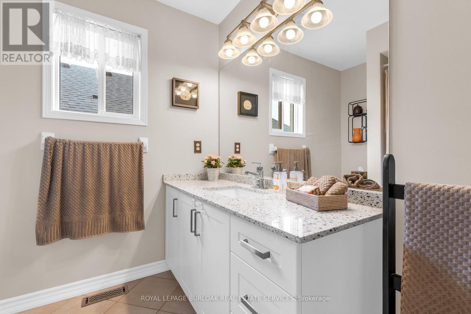 Prepare to fall in love with this beautifully updated 3+1-bedroom 2.5 bathroom detached home, complete with a double car attached garage & inside entry in the highly desirable Tyandaga Oaks community! From the moment you arrive, the charming stone steps & inviting curb appeal sets the tone! Step inside to an impeccably maintained home exquisitely appointed with tasteful décor & California shutters throughout offering a light-filled, cohesive ambiance that radiates timeless elegance & refined sophistication! This home truly offers open concept living at its finest! The stunning kitchen flows seamlessly into the family room creating the perfect space for everyday living & effortless entertaining! At the same time, the partially separated dining room offers just the right balance for hosting more intimate dinners or special occasions! The heart of the home features hickory hardwood floors, pot lights with dimmers & a cozy gas fireplace with stone feature wall creating a warm & inviting atmosphere! The bright living space with custom built-ins & large windows is filled with natural light & designed for comfort. The chef-inspired kitchen boasts quartz countertops, stainless appliances & custom cabinetry with soft-close drawers that are both beautiful & functional. Upstairs, retreat to your spacious primary suite with walk-in closet & ensuite complemented by two additional bedrooms & updated main bath. The fully finished lower level adds incredible flexibility with a large family room, 4th bedroom & separate laundry room! Perfect for guests, a growing family, or a home office setup. Listen to the birds, watch deer pass by, enjoy the sunsets & unwind in a truly peaceful, nature-filled environment, right at your front doorstep overlooking green space!The private backyard deck is ideal for summer entertaining and relaxing evenings! Located just minutes to parks, the Bruce Trail, Golf Course, shopping & QEW this home offers the perfect blend of tranquility & convenience! (id:64974)