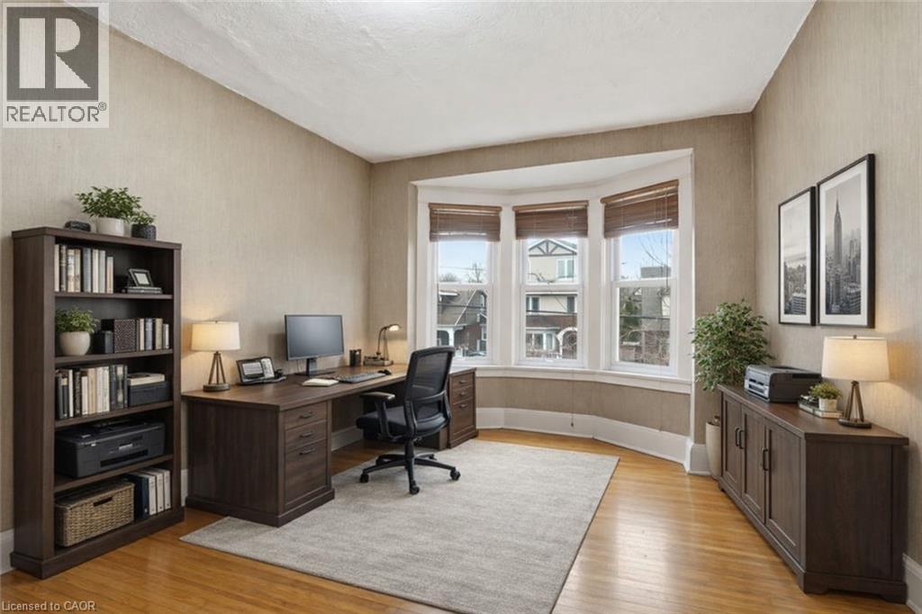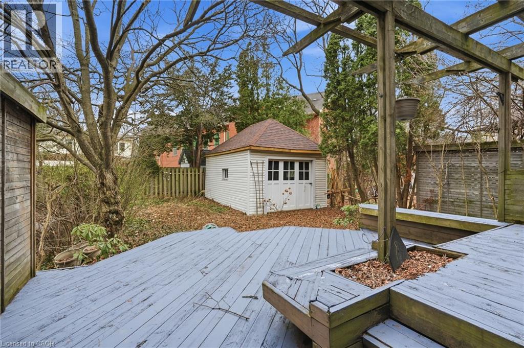 Welcome to this charming 2.5-story brick home located in one of Westdale’s most sought-after pockets, just steps to trendy shops, restaurants, and a stone’s throw from McMaster University. Brimming with character and natural light, this home showcases original charm. A rear addition provides valuable extra square footage currently acting as a convenient main floor laundry room, and a rare walk-in closet for the primary bedroom. The finished third floor is the perfect bonus space—ideal for a home gym, music studio, office, or creative retreat. Ample parking and a detached garage, perfect for a workshop or car enthusiast, round out the property without forgetting the awesome deck in the backyard for entertaining! A classic Westdale home in an unbeatable location—don’t miss this opportunity! Some photos have been virtually staged (id:64974)