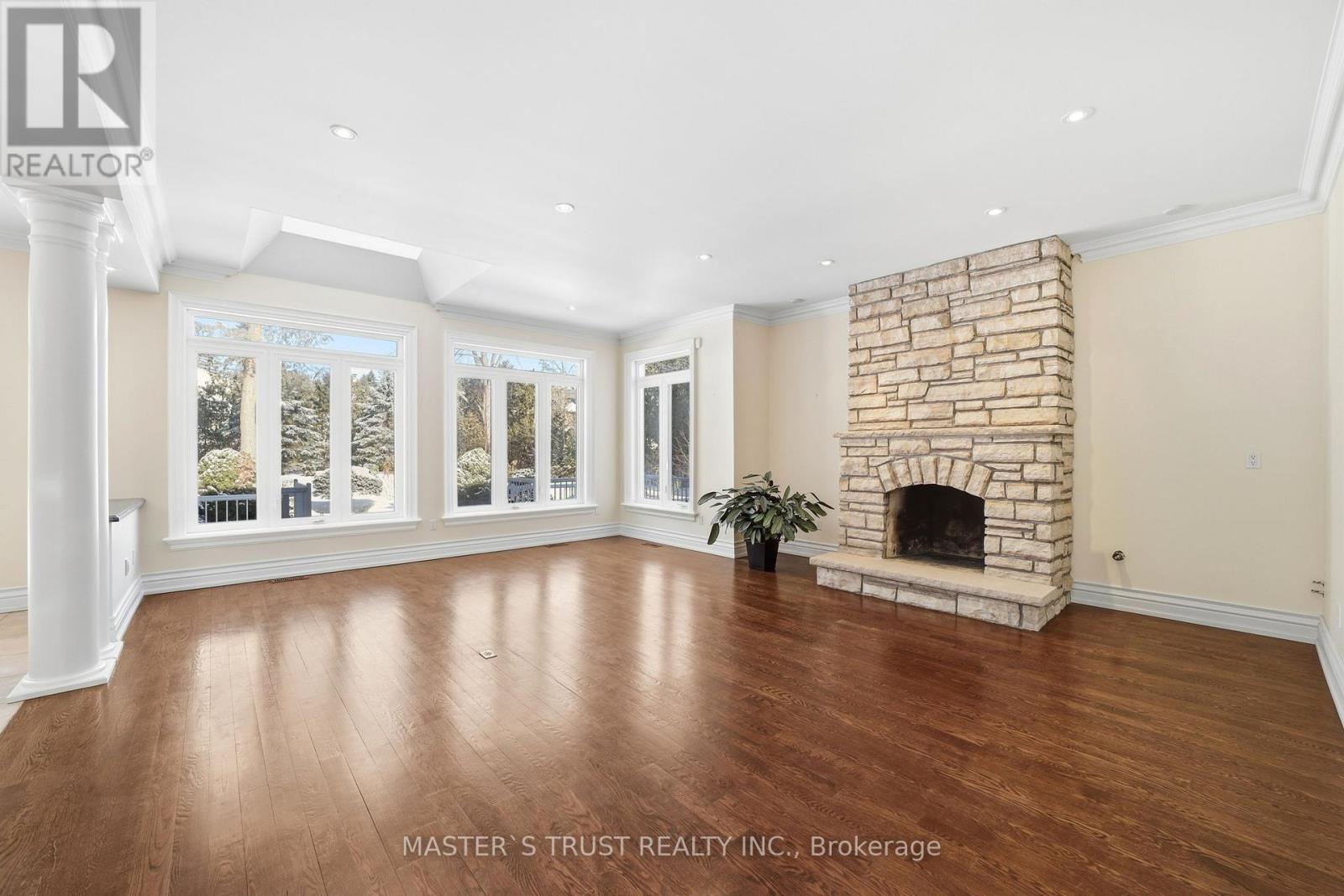 Exceptional opportunity to lease a grand stone residence on a rare 88' x 268' private lot in one of Thornhill's most distinguished neighbourhoods. Offering approximately 6,413 sq ft above grade plus a fully finished 3,000 sq ft lower level, this impressive home delivers scale, privacy, and refined comfort ideal for executive living.Grand principal rooms with 9+ ft ceilings, hardwood floors, detailed millwork, and abundant natural light. Formal living and dining areas ideal for entertaining. Spacious family room overlooking mature landscaped grounds. Generous kitchen with extensive cabinetry and breakfast area.Upper level features well-proportioned bedrooms and an expansive open loft area. Elevator access between levels adds convenience and accessibility.The fully finished lower level offers exceptional additional living space including recreation areas, sauna, full bath, flexible rooms for gym/office/guest use, and a walk-up to a private patio framed by elegant retaining walls.Deep, private backyard with mature trees and seasonal landscape beauty creates a tranquil retreat rarely found in executive rentals.Oversized tandem double garage (approx. 21' x 40') with two doors provides exceptional depth for multiple vehicles and storage, plus ample driveway parking.Located near top-rated schools, parks, golf, transit, and major commuter routes. Entire home for lease. Tenant responsible for utilities and lawn/snow maintenance. Ideal for corporate executives, diplomats, and professional families seeking a distinguished long-term residence. (id:64974)