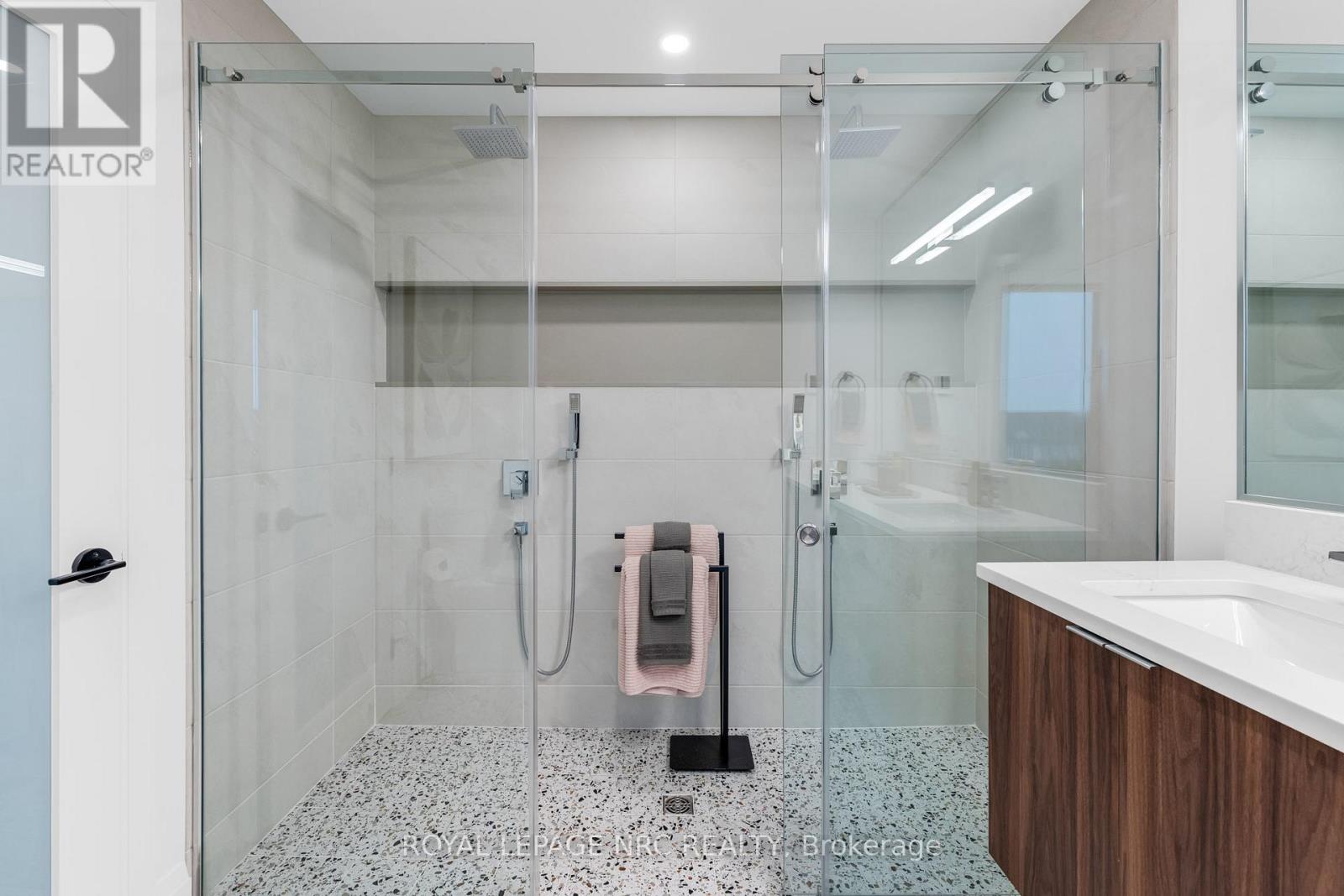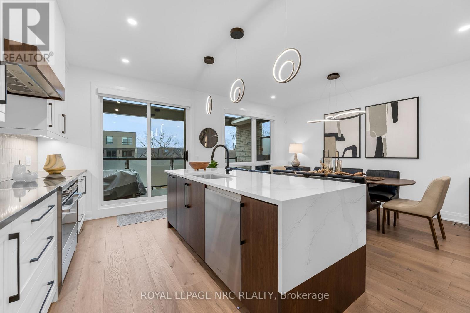 This highly curated home awaits you! Welcome to 88 Moody St! Built by the incredible team at Rinaldi Homes, this 3 bedroom 4 bathroom townhome offers 2366 sq ft of finished living space and contains all the upgrades your heart desires. Open the front gate and step inside to find a spacious foyer with a show stoping open stringer staircase, a main floor bedroom, 3pc bathroom & access to the attached 2 car garage that features an epoxy floor. The second floor offers 9' ceilings, a large living room with pot lighting & tiled finished 77" fireplace, a large dining room, a dream kitchen complete with a servery, walk in pantry, luxurious Fisher & Paykel appliances and a stylish 2pc bathroom. Just Off the kitchen you will find an incredible 20'4"x7'9" balcony that includes frosted glass and masonry privacy features & a retractable awning system. The third floor offers a serene primary bedroom suite with walk-in closet & luxury 5 pc ensuite bathroom (including quartz counters, a heated floor and a breathtaking glass & tile double shower), a laundry closet with sink, and another bedroom suite with a 4 piece ensuite bathroom (also with heated floor). Motorized Hunter Douglas shades are wired into every window. The basement has been finished into an inviting rec room and includes luxury vinyl plank flooring and a spacious storage area. Engineered hardwood and luxurious tile adorn all other areas of the home. The included smart home system includes smart thermostats, lighting control, 3 cameras and alarm functions. Parking for 4 is available between the private interlocking stone driveway and attached 2 car garage. Only a short walk to downtown Fonthill, shopping, restaurants & the Steve Bauer Trail. Easy access to world class golf, vineyards, the QEW & 406. A small $280/month condo fee includes water for the unit & outdoor sprinkler system and grounds maintenance. This home is as move-in ready as they come - book your private viewing today! (id:64974)