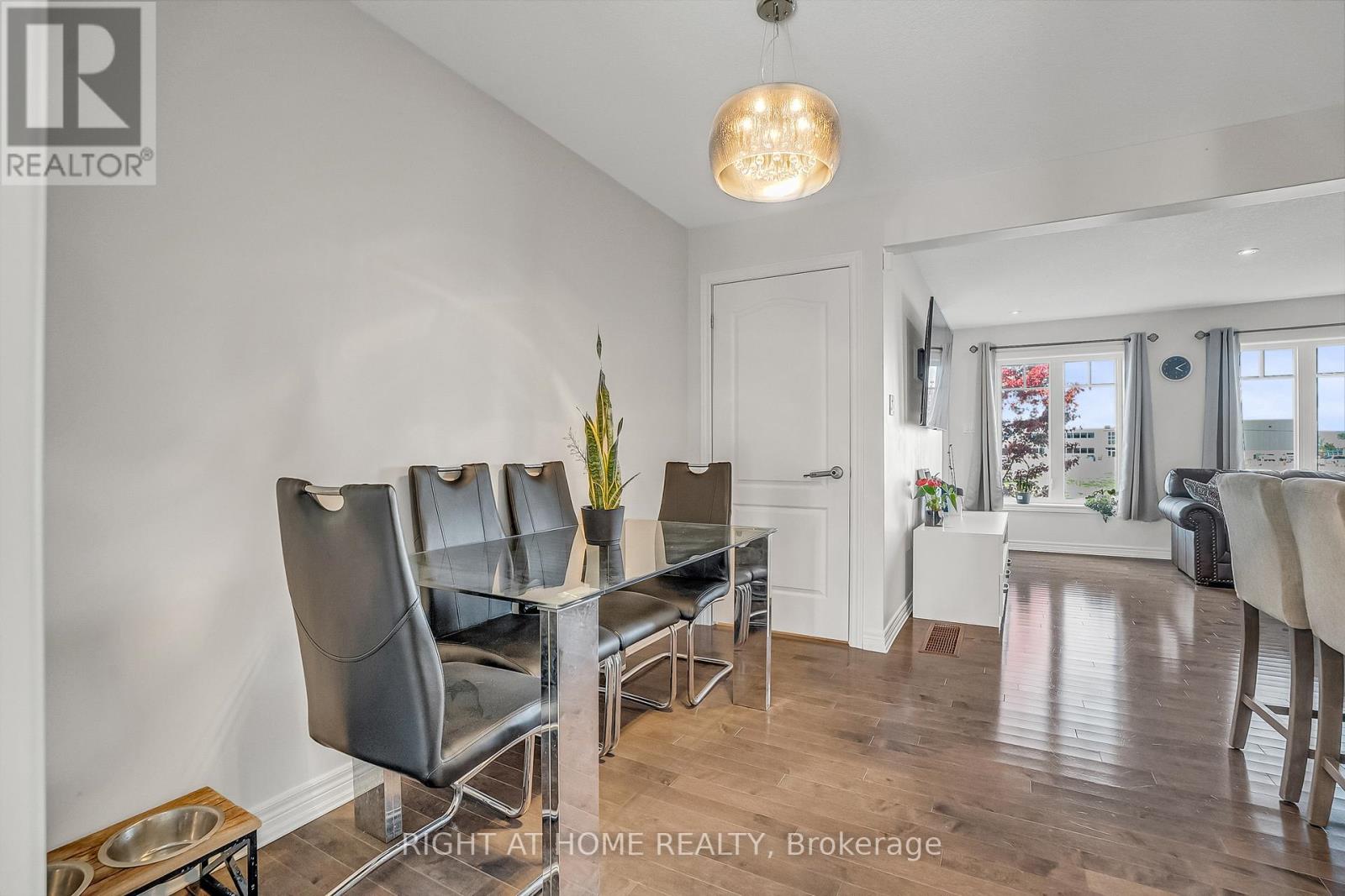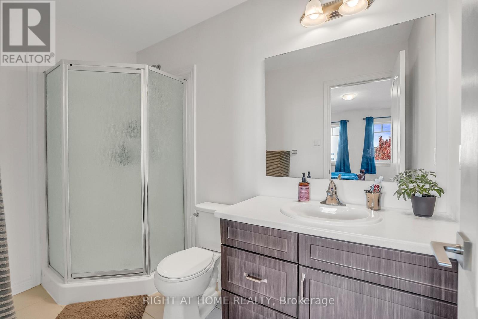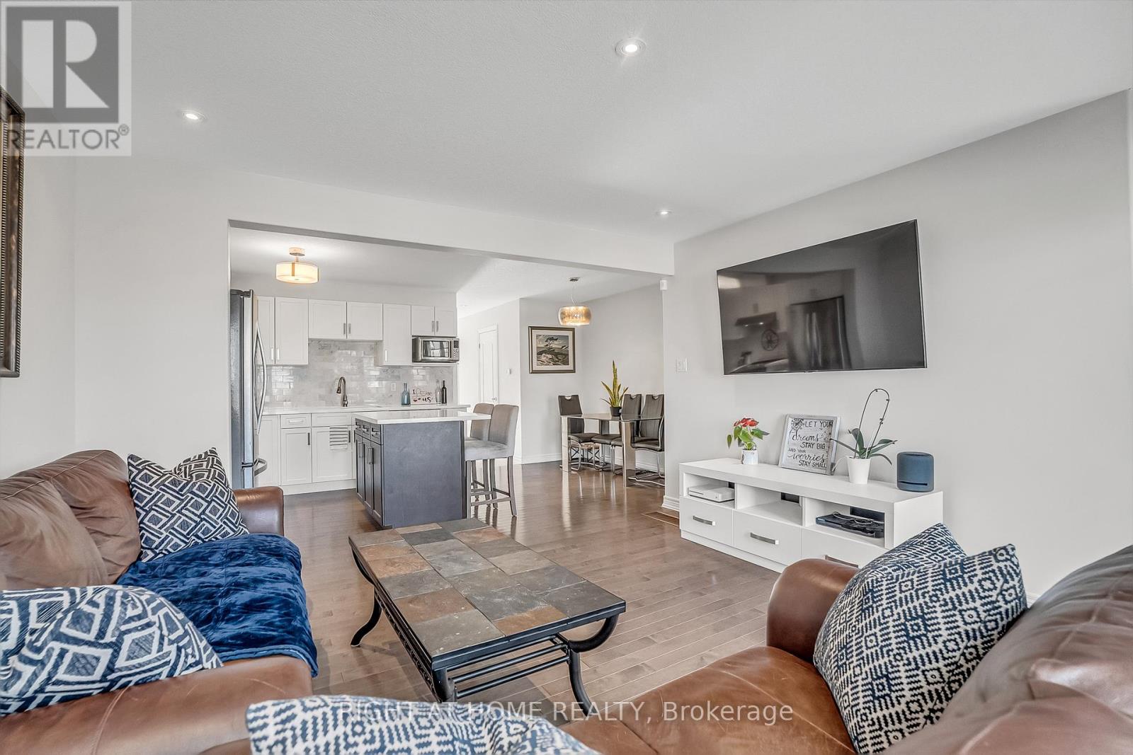 ** WALKOUT BASEMENT ** Welcome to this beautifully upgraded freehold townhouse, perfectly situated on a quiet, family-friendly cul-de-sac. Move-in ready and tastefully finished from top to bottom, this home exudes modern style and comfort. The professionally landscaped front yard creating an inviting first impression. Inside, the open-concept main level showcases a designer kitchen complete with a centre island, quartz countertops, sleek backsplash, and stainless steel appliances. The bright and spacious living area features large windows and a built-in entertainment wall, ideal for relaxing or entertaining. Upstairs offers three generous bedrooms and two bathrooms, including a primary suite with a large closet and private 3-piece ensuite. The finished basement extends the living space with a beautifully finished recreation area and a convenient fourth bathroom. Step outside from the walkout basement to a private, fully fenced backyard with newly laid sod and no rear neighbours perfect for outdoor gatherings. With parking for two vehicles, inside access from the garage, and ample visitor parking nearby, this exceptional home combines comfort, convenience, and a prime location near top-rated schools, parks, and everyday amenities. (id:64974)