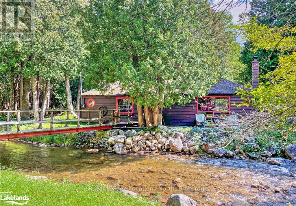 Dunedin...A River Flows Through it! Located just west of Creemore this property offers you a true piece of paradise. Property has been in the same family for over 60 years! The Noisy River meanders though the almost 1 acre treed lot offering 200 feet of ownership of the river. Park in the drive, walk the bridge over the river to access the cottage nestled in the forest. Private 3 bedroom, 2 full bath cute and cozy living space with large open concept living/dining area with wood burning stone fireplace/heatilator combination. Additional structures include detached garage/workshop, garden sheds, small sleeping bunkie and an authentic train caboose that could be the most perfect kids indoor play area or an artists studio/retreat space for creative inspiration as you look out towards the river...Minutes drive to the Village of Creemore, restaurants, amenities, golf, Highlands Nordic, Devils Glen, Bruce Trail system, Wasaga Beach and Collingwood/Blue Mountain.. (id:64974)