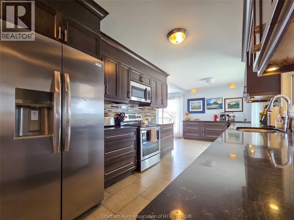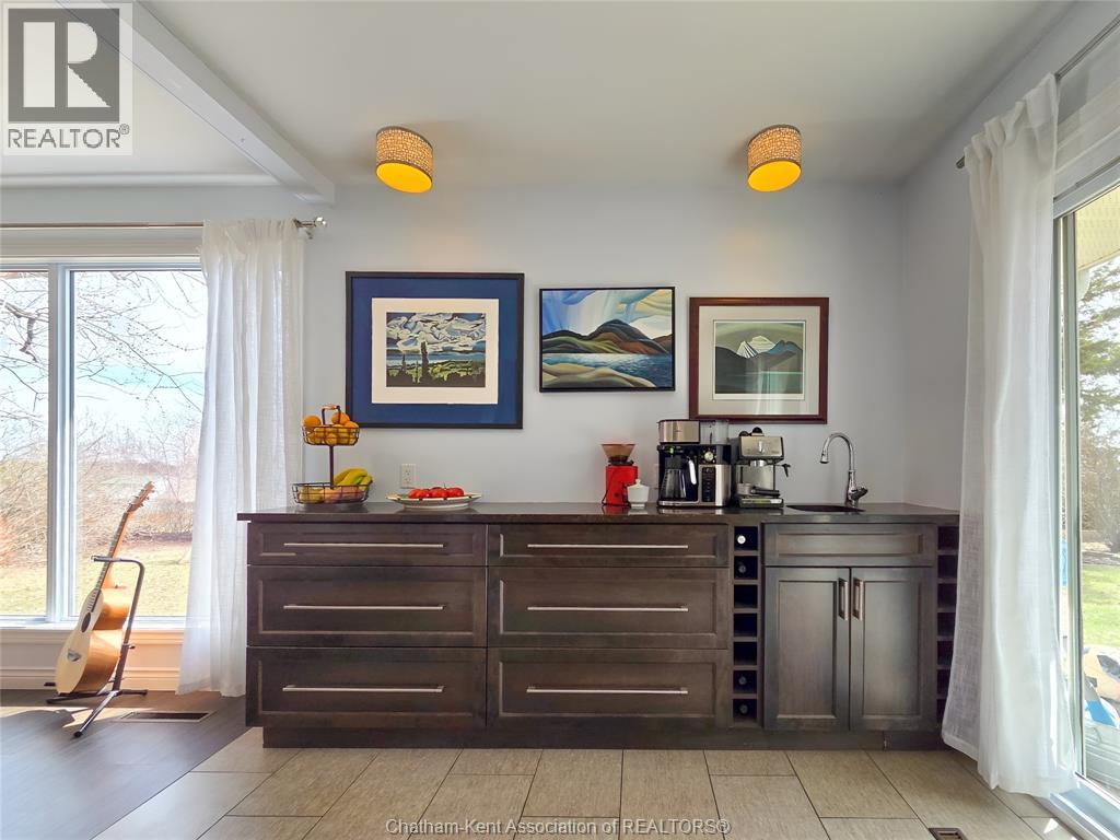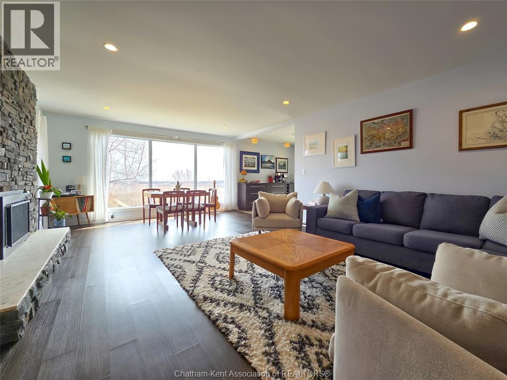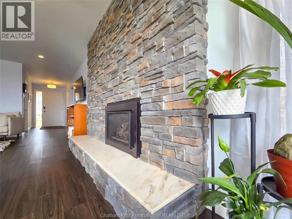 Welcome to this beautifully updated brick rancher finished to the nines and designed for both comfort and style. This spacious home offers 3+1 bedrooms and 2.5 bathrooms, perfect for families or those who love to entertain. Step inside to discover a stunning gourmet kitchen featuring high-end finishes, modern appliances, and plenty of space to gather. The thoughtfully designed layout includes a dedicated music room—ideal for creative pursuits or a quiet retreat. Cozy up by one of two fireplaces, adding warmth and charm to both the main living space and lower level. The fully finished basement provides additional living space, a fourth bedroom, and flexibility for guests, a home office, or recreation. With quality craftsmanship throughout and every detail carefully considered, this move in home offers the perfect blend of elegance and functionality. Don't miss your opportunity to own this exceptional property on the outskirts of Blenheim, very near water fronting Erieau and amenities. (id:64974)
