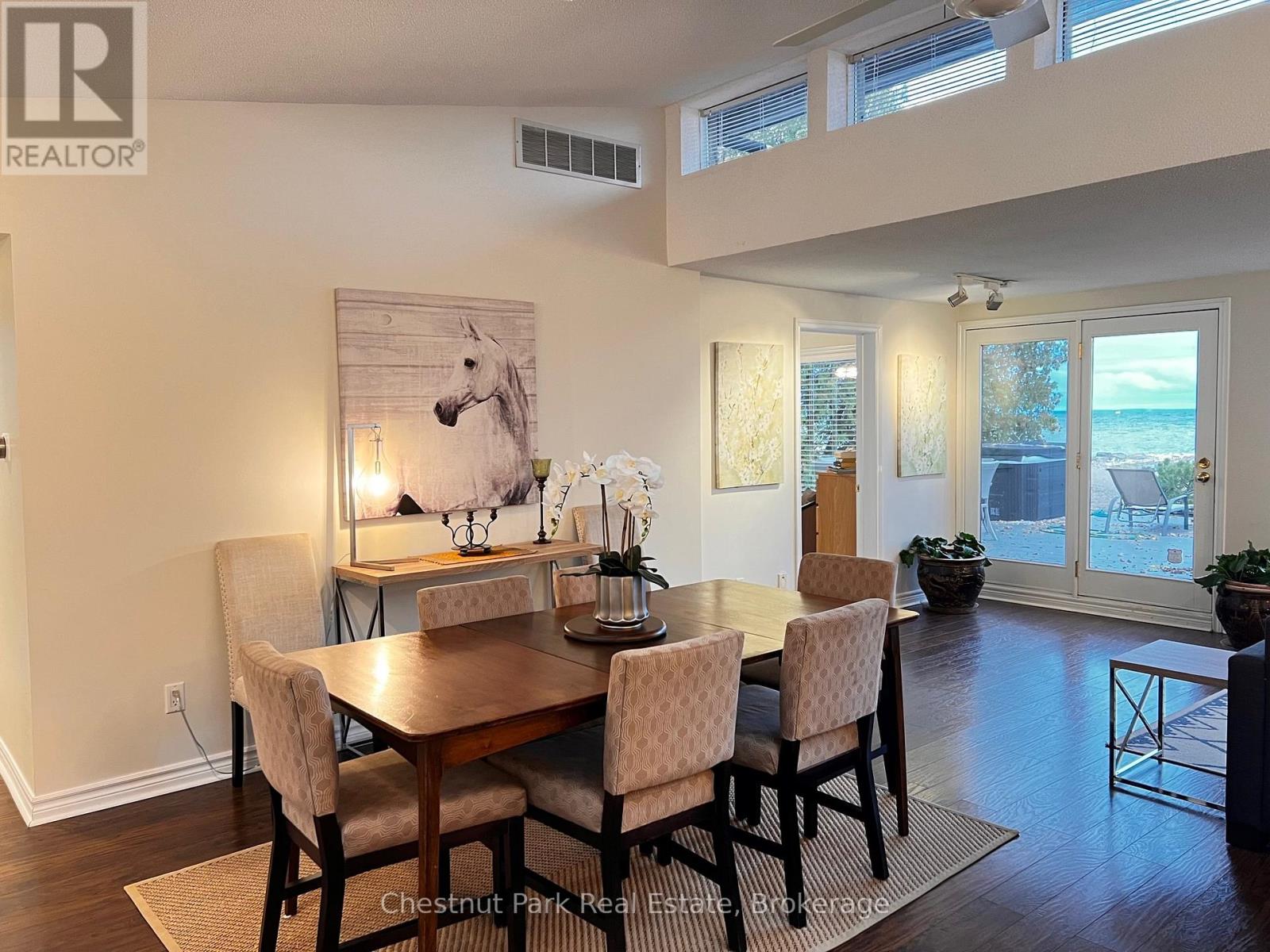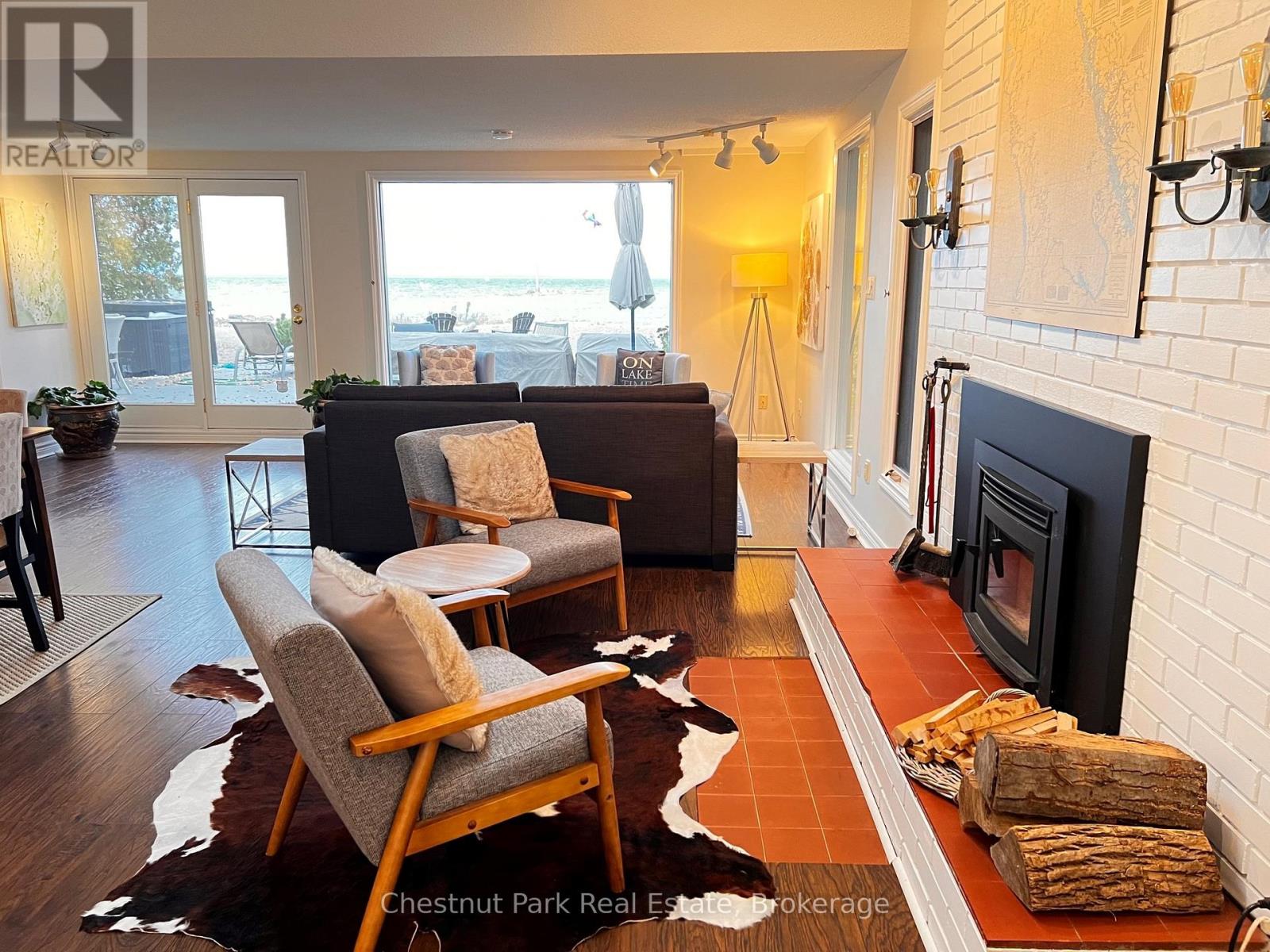 WATERFRONT SEASONAL LEASE IN COLLINGWOOD! Located directly on the shores of Georgian Bay, this charming 3-bedroom, 2-bath waterfront home offers approximately 1,300 sq. ft. of comfortable, year-round living. The bedroom layout includes two queen beds and two single beds, making it ideal for families or guests. Perfectly situated just minutes from Blue Mountain, this property offers the best of every season! Enjoy golfing and boating in the summer, skiing in the winter, and endless outdoor recreation year-round. Inside, enjoy a bright open-concept layout featuring a cozy wood-burning fireplace, a dining area with seating for six and stunning bay views, and a well-equipped kitchen with a built-in oven and cooktop. Step outside to a large waterfront deck complete with a BBQ, outdoor furniture, and a firepit perfect for relaxing and entertaining. The surrounding area offers endless activities, including scenic hiking and biking trails, boutique wineries, theatre, shopping, spas, and excellent local dining all just minutes away. Parking: One small vehicle fits in the detached garage (with extra storage), plus ample driveway parking. Monthly Rental amounts are as follows: May and June at $5,500 per month, July and August at $7,000 per month, and September and October at $5,500 per month. Please note that July, August, and September 2026 have now been leased and are no longer available. Ski Season is $4,000 per month. Please note: This property is not available for annual lease. (id:64974)