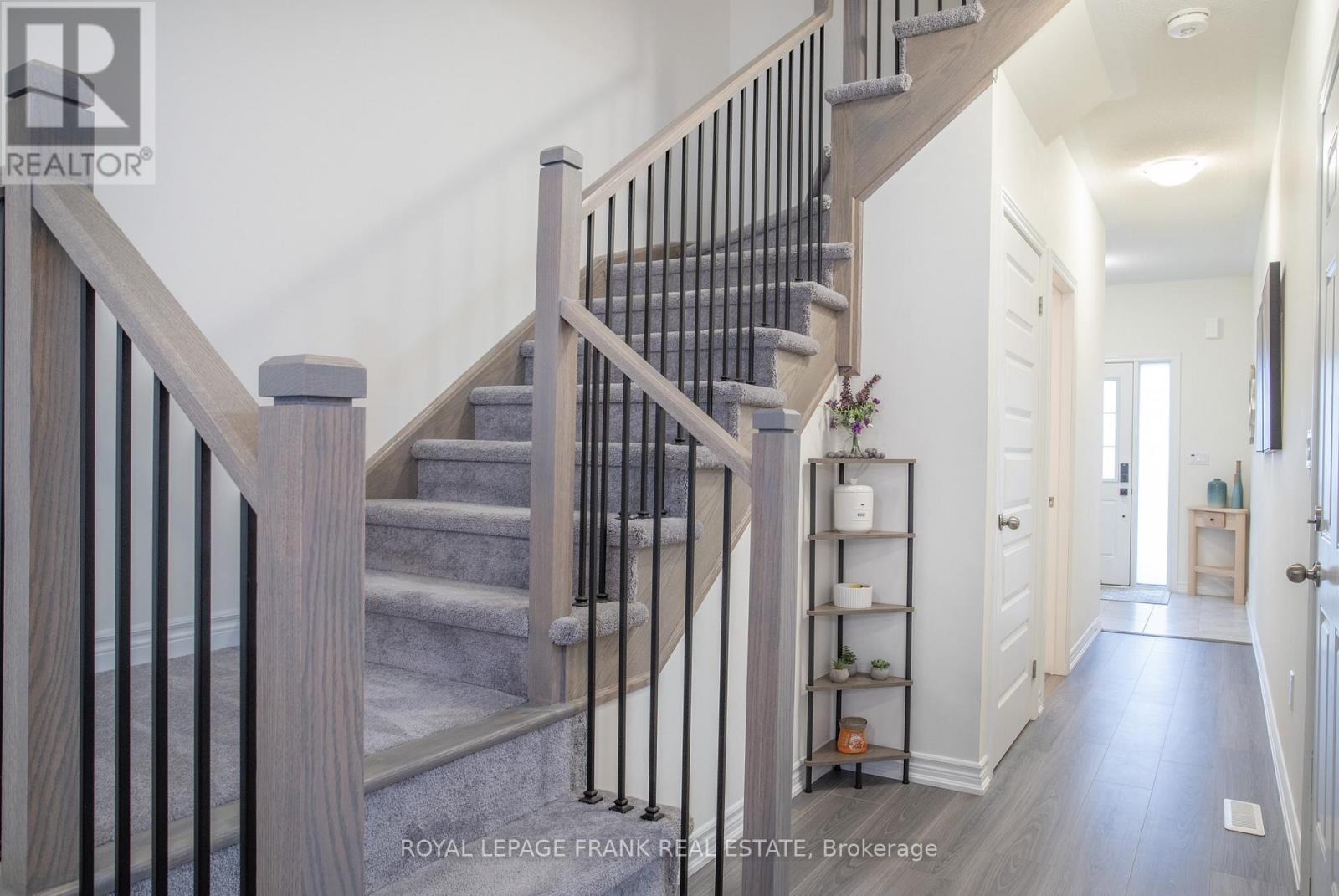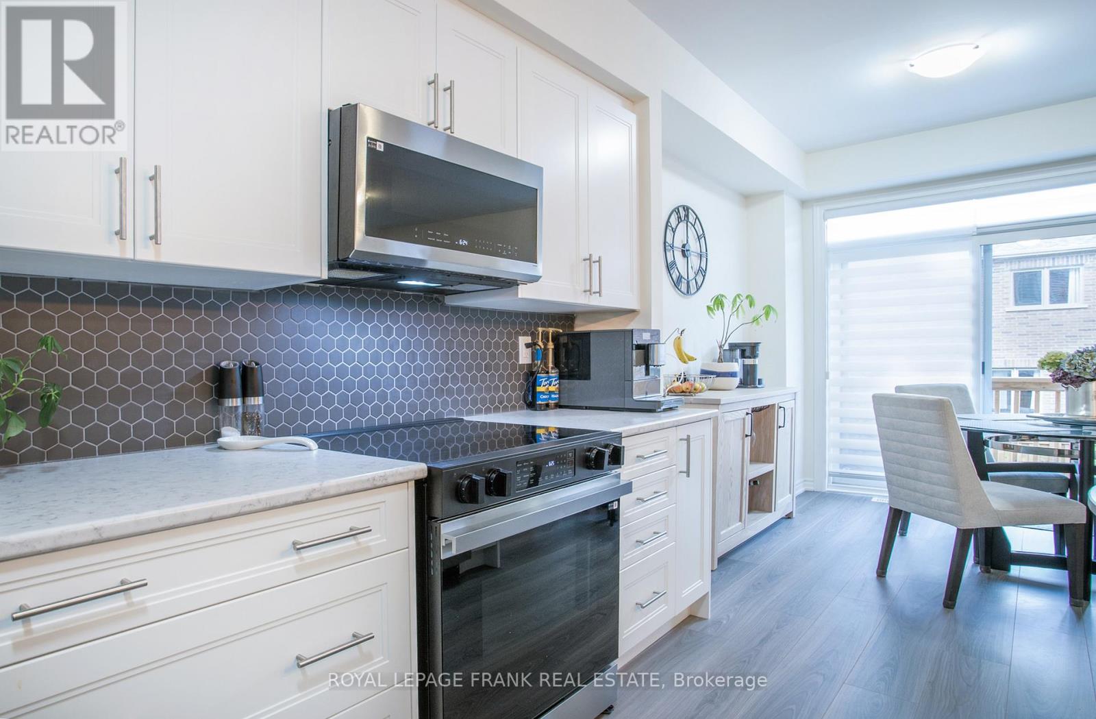 Gorgeous nearly new, beautifully upgraded townhome perfectly located in the quaint historical town of Port Perry. This home offers an open, family friendly floorplan with spacious rooms and upgrades that very buyer looks for. 9 ft. ceiling on the main floor gives the home a bright and airy feel. The kitchen complete with upscale stainless appliances, pot drawers modern backsplash and an island that doubles into your kitchen work station, seamlessly transitions into the living and dining area. No carpeting on the main floor, just quality tile and plank flooring. Upstairs are 3 generous size bedrooms with the primary bedroom featuring an ensuite that will make you swoon! Incredible free standing tub, walk-in shower with upgraded glass. Doors and lots of counterspace and drawers for handy storage. Extra deep garage (7M x 3M) Easily fits an SUV with an additional two parking spots in the Driveway. Direct entry from the garage to the foyer. This home features a deck lot meaning oversized basement windows and high ceilings. The yard has been fully fenced for privacy and enjoyment. Many more upgrades including the staircase with wrought iron spindles and stained railings, upgraded doors throughout, glass shower with niche, plank flooring on main floor and upper hall. You do not want to miss this immaculate home. (id:64974)
