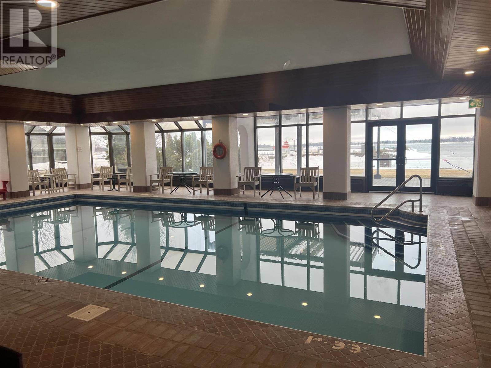 This waterfront condo building is located close to the marina, walking trails, Bellevue Park, shopping and all other amenities. There is an inviting pool, hot tub/whirlpool, common room, laundry facility, outside parking, elevators, security system and wheelchair accessible. This unit has been well maintained and updated including the bathroom, kitchen and some flooring. Easy carefree loving awaits you with nothing to do but move in. (id:64974)