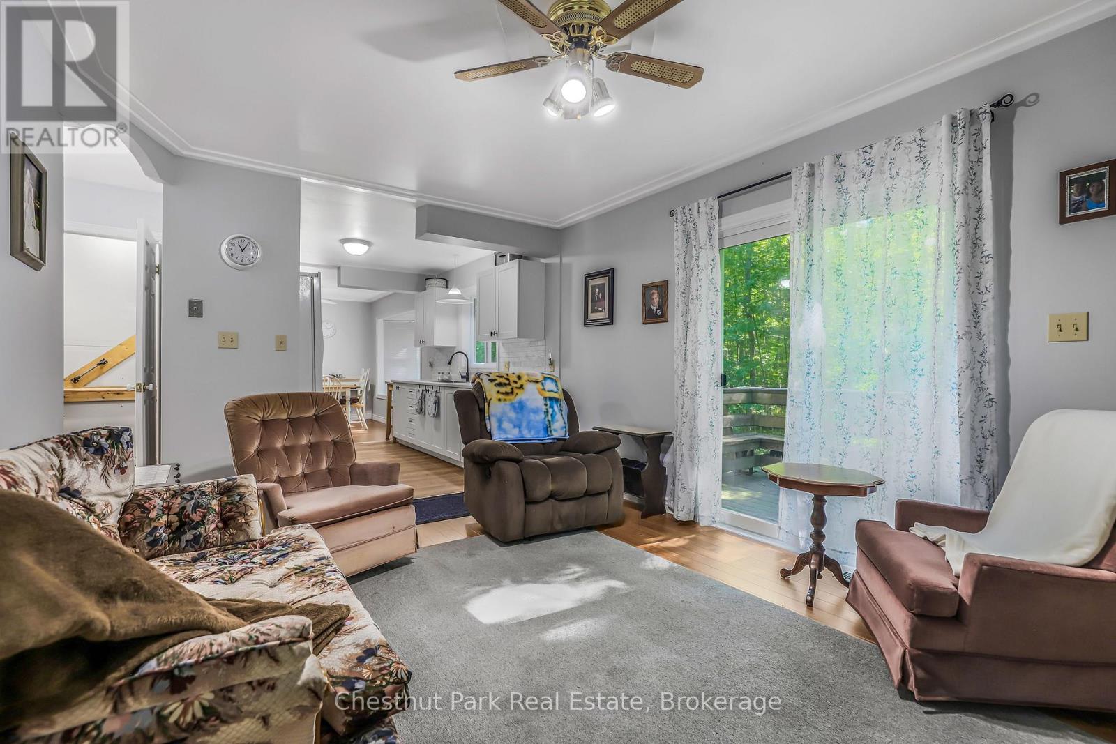 Discover a private 28-acre retreat at Tammys Cove, ideally located just across from scenic Miller Lake. This 2005-built, three-storey, four-season residence is constructed with durable ICF and offers an exceptional blend of comfort, space, and natural beauty. The home features four generously sized bedrooms and three full bathrooms, with elevated views overlooking the surrounding landscape. Set on a picturesque property with an abundance of mature hardwood maple trees, the land offers both natural beauty and the potential added value of harvestable timber. Extensive recent upgrades include a new roof, eavestroughs with gutter guards, furnace, air conditioning unit, water heater, pressure tank, water softener, and UV filtration system. Interior improvements include fresh trim, updated tub surrounds and shower stalls, and new kitchen cabinetry, countertops, and backsplash. Offered fully furnished and turnkey, the property also includes a generator, tools, a 2024 John Deere riding lawn mower, and an all-purpose utility vehicle with dumping box-providing everything needed for immediate enjoyment of this exceptional Bruce Peninsula offering. (id:64974)