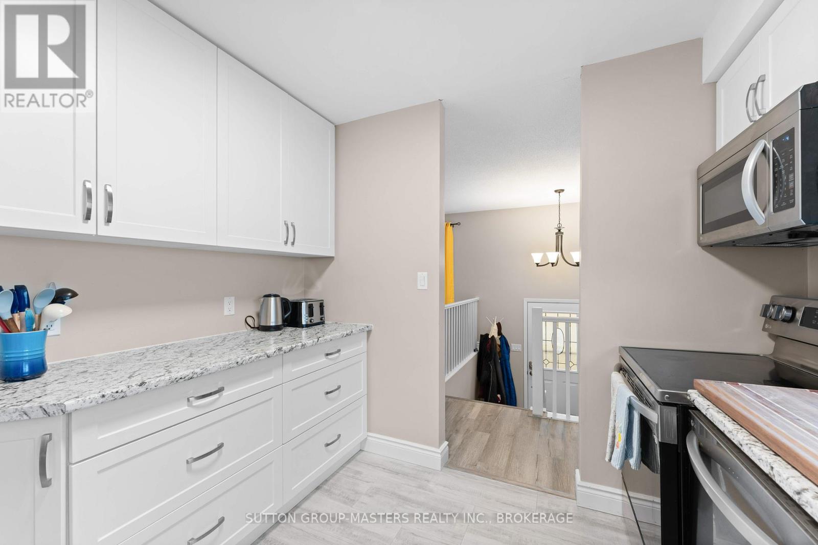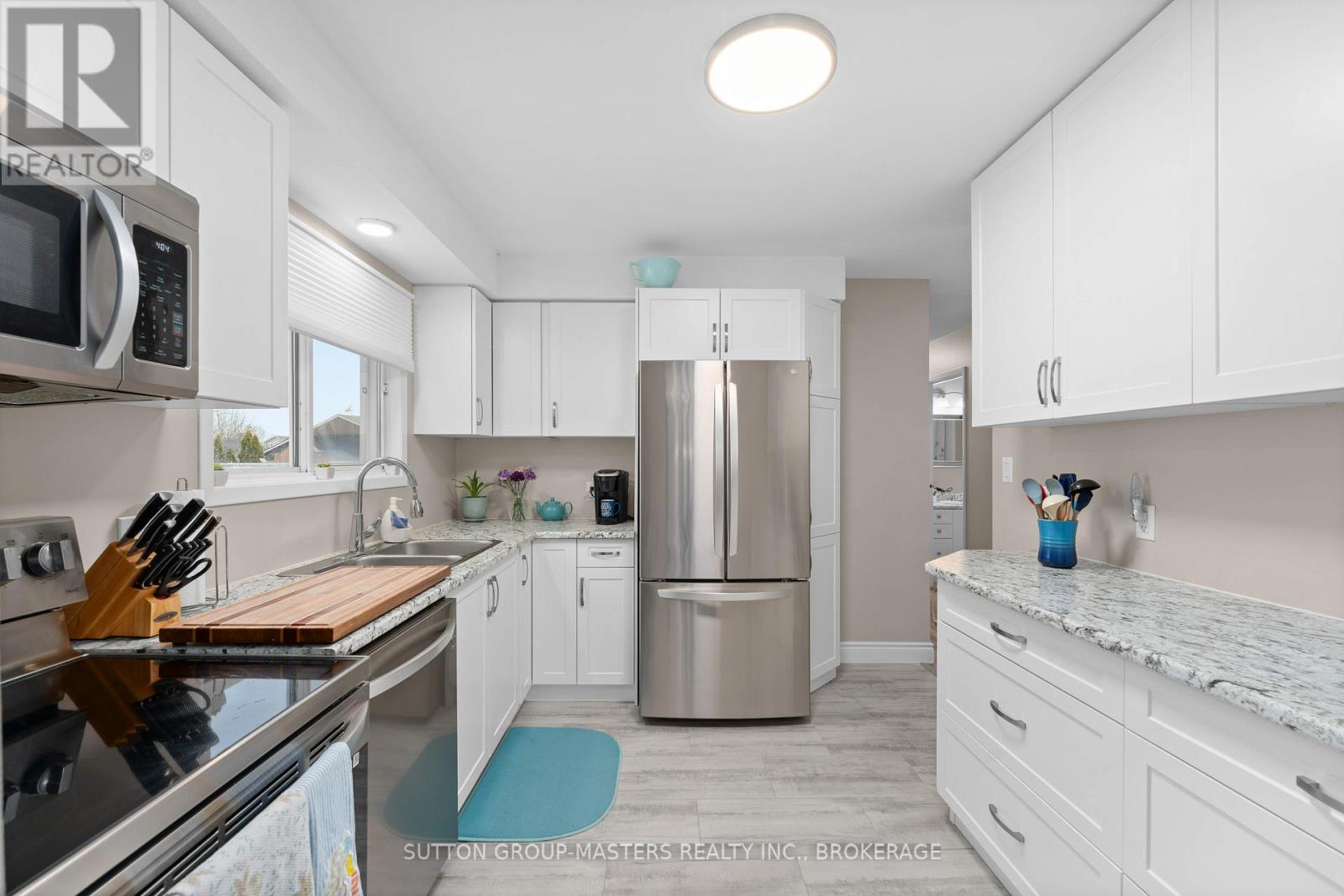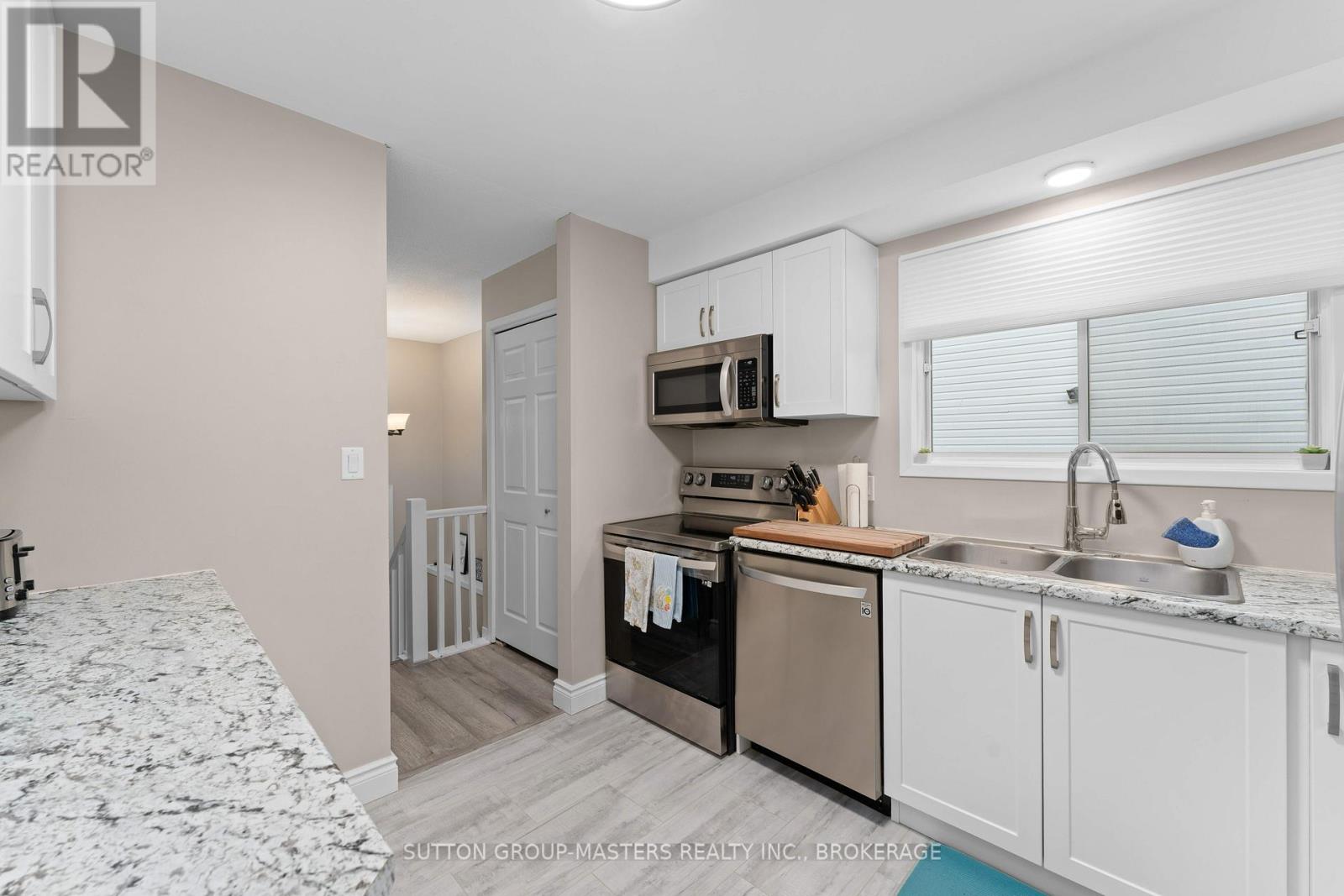 Welcome to Waterloo Village where lifestyle, location, and opportunity come together. This beautifully updated 3+1 bedroom, 2.5 bathroom home offers a functional layout designed for modern living. The bright main floor flows effortlessly into a recently updated kitchen with ample storage, perfect for everyday living and entertaining. Upstairs, the spacious primary retreat features a rare private ensuite and triple closet space, a standout feature in this neighbourhood where ensuites are not often found. The fully finished lower level adds incredible versatility, complete with a large rec room, additional bedroom, and expansive windows that fill the space with natural light keeping it bright, open, and inviting. Step outside to a thoughtfully upgraded backyard, featuring a large patio perfect for entertaining and a generous custom-built shed offering both charm and practical storage. Backing directly onto St. Marguerite Catholic School, you'll enjoy added privacy with the convenience of direct access, plus nearby walking paths leading to Trillium Ridge Park perfect for strolling, playing, and enjoying the outdoors. Located in a highly desirable neighbourhood popular with both homeowners and investors, the separate walk-up basement entrance provides excellent potential for an in-law suite or future rental income. Whether you're a first-time buyer looking for a smart start or an investor seeking strong potential in a proven area, this home delivers. (id:64974)