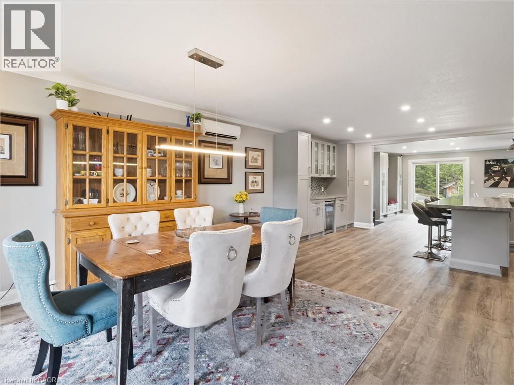 Winter, Spring, Summer or Fall. Your own gated, year round playground on 12.93 picturesque acres. Sled, Skate, Canoe, ATV. This stunning bungalow has been reimagined into almost 1800 sq.ft. of luxury living. Completely redone in 2025 with something for everyone in the family.4 Minutes away from Muskoka Bay Resort & Muskoka Wharf & Bay. This open concept bungalow has everything you need. Open concept living/dining/kitchen area allows you to entertain all your friends and family. New kitchen with Caesarstone counter tops, pot filler over the stove and stainless steel appliances. The coffee bar presents more cabinet space and a usable workstation. The new living area is absolutely stunning with crown molding, lots of light and sliding doors to the new wrap around deck. The new main bathroom has full size laundry with Caesarstone folding station. The primary bedroom was designed with comfort and convenience with spa-like ensuite and designer walk in closet. This master retreat has sliding patio doors to the new glass railed deck. 2 additional bedrooms allow for the kids or guests to have their own space. There is much more too! The wrap around porch and deck offer 144 linear feet of space to explore and entertain. There are views from every part of the deck. New fire pit conversation area on solid granite lets you view the stars every night. The recently added 3 car detached garage ('24) is a home for all your daily drives. And if you have more toys to store, don't worry. There's an additional 30'x25' workshop/garage with concrete floor, heat, hoist and overhead door. Spend hours everyday on the many trails on your own property exploring all of nature's glory. Wild strawberries and blueberries can be found. Send the kids and guests on a quest. Spend some time reflecting by the giant inland pond or skipping stones. There's so much to explore & so many beautiful vistas that it's hard to put into words. There is a possibility of severance if one wants to explore that. (id:64974)