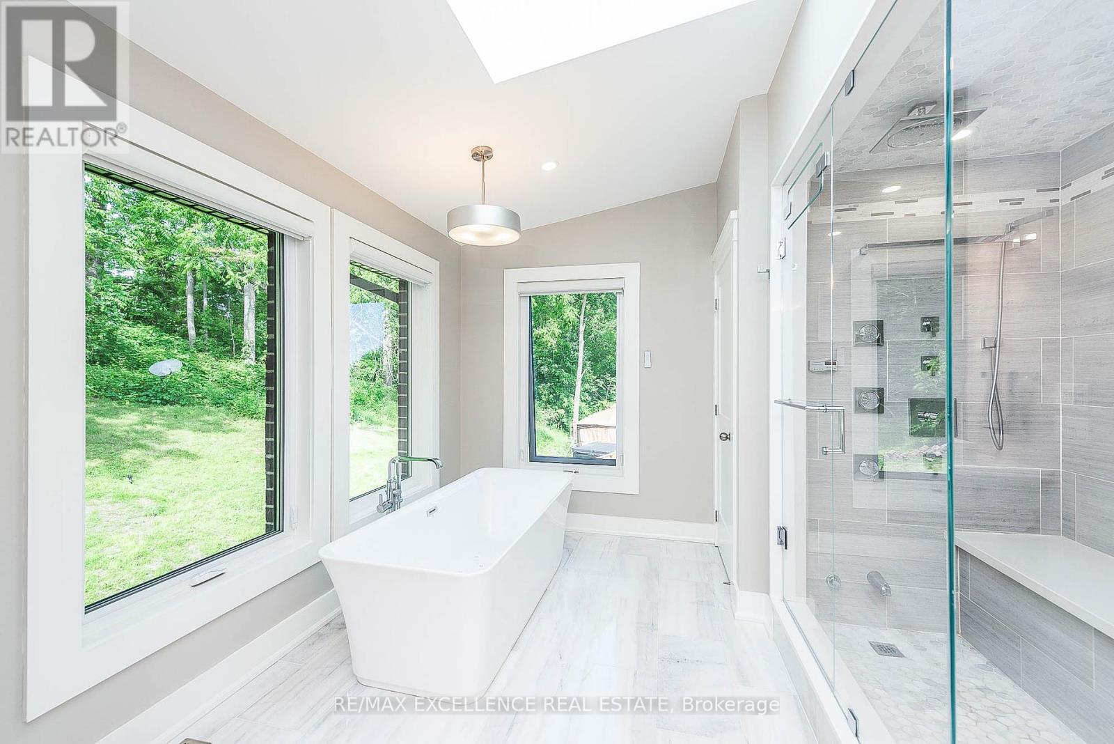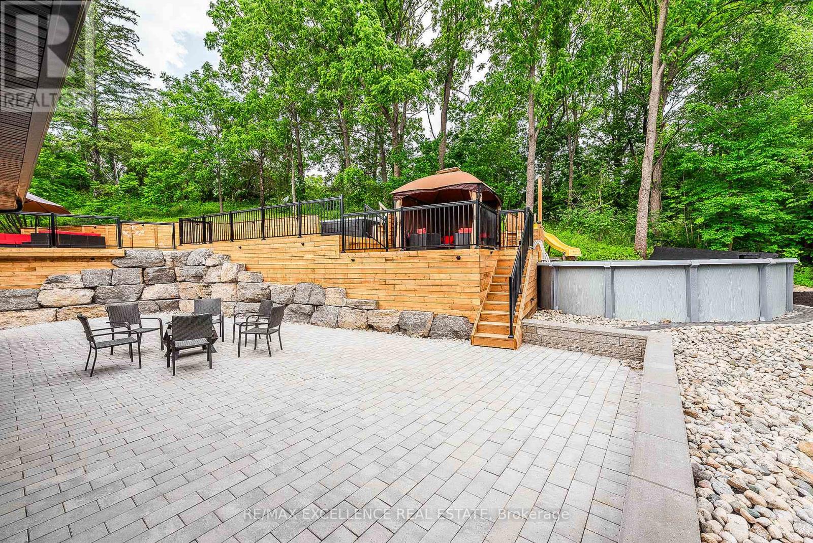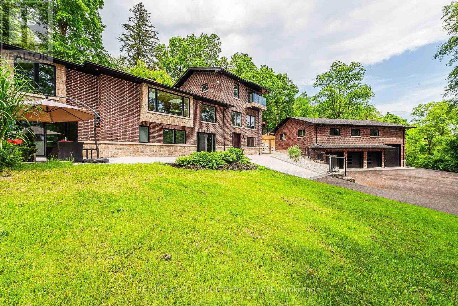 This custom-built raised bungalow, boasting over 5,000 sq ft. of luxurious living space, on 1.15 acre lot , which is nestled in a prestigious location near the Lionhead Golf Course & the serene Credit River. Rhm1 Zoning Allows For the possibility of a Home Business! Buyer Due Diligence. The property features an expansive new deck that overlooks a sparkling pool & hot tub, perfect for entertaining or relaxing. The home includes a spacious 4-car garage including a12 ft high door, designed to fit your RV, boat or a hobby shop . Dimensions for hobby shop 32' x 52 ' (1664 sqft) and second level storage 32'x40'(1280 sqft) This exquisite residence offers privacy & tranquility while being conveniently close to upscale amenities and neighboring custom homes. The property also includes two separate units, each equipped with a kitchen, washroom and separate laundry making them ideal for extended family living or guest accommodations. The main floor office provides the perfect setting for a productive workspace, combining functionality with elegance in this custom-built raised bungalow. Master bath with an air tub, heated towel hanger, steam shower with body sprayers, fitted with designer fixtures. 2 New furnaces, 2 Air condition units. The shop includes water, gas, an electrical panel, & sewer access. Owned hot water tank. Outside sewer access by the driveway for a garden house. Complete new sewer drains, passive sewer septic system, new water lines, and an all-new electrical system with one 200 amp panel & three 100 amp panels. Natural gas furnaces, clothes dryers, two fireplaces, and cooktop. In-floor electric heating in the entrance, sitting room, kitchen, and master bath. Travertine & marble stone flooring, complemented by maple hardwood throughout. Multifunctional Outdoor Court that can be used for playing tennis or basketball. Come and get a feel of this home! (id:64974)