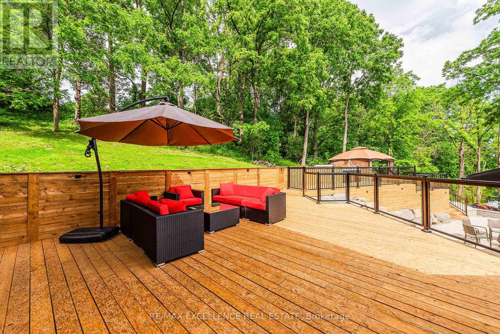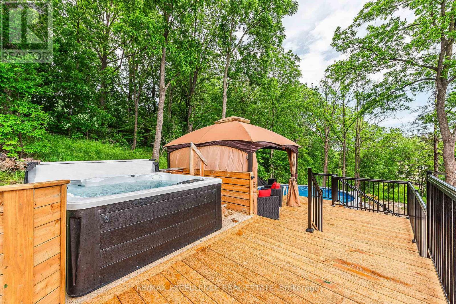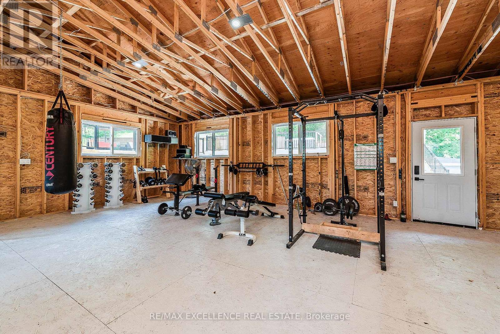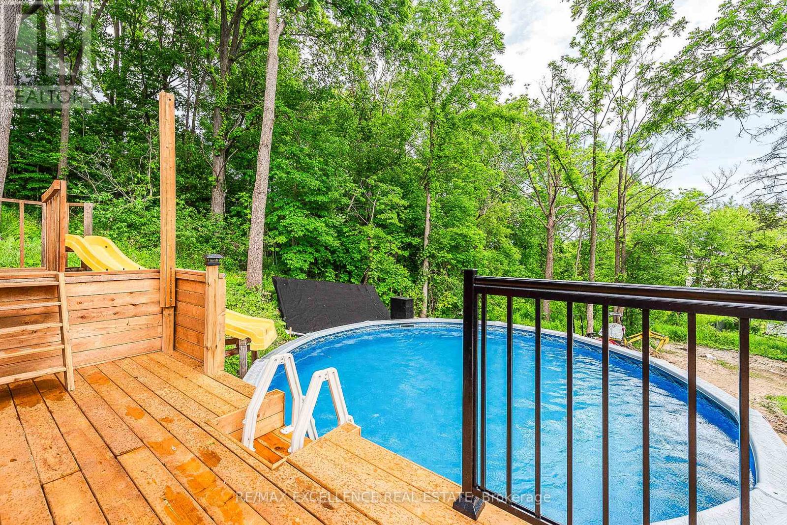 This custom-built raised bungalow, boasting over 5,000 sq ft. of luxurious living space, on 1.15 acre lot , which is nestled in a prestigious location near the Lionhead Golf Course & the serene Credit River. Rhm1 Zoning Allows For the possibility of a Home Business! Buyer Due Diligence. The property features an expansive new deck that overlooks a sparkling pool & hot tub, perfect for entertaining or relaxing. The home includes a spacious 4-car garage including a12 ft high door, designed to fit your RV, boat or a hobby shop . Dimensions for hobby shop 32' x 52 ' (1664 sqft) and second level storage 32'x40'(1280 sqft) This exquisite residence offers privacy & tranquility while being conveniently close to upscale amenities and neighboring custom homes. The property also includes two separate units, each equipped with a kitchen, washroom and separate laundry making them ideal for extended family living or guest accommodations. The main floor office provides the perfect setting for a productive workspace, combining functionality with elegance in this custom-built raised bungalow. Master bath with an air tub, heated towel hanger, steam shower with body sprayers, fitted with designer fixtures. 2 New furnaces, 2 Air condition units. The shop includes water, gas, an electrical panel, & sewer access. Owned hot water tank. Outside sewer access by the driveway for a garden house. Complete new sewer drains, passive sewer septic system, new water lines, and an all-new electrical system with one 200 amp panel & three 100 amp panels. Natural gas furnaces, clothes dryers, two fireplaces, and cooktop. In-floor electric heating in the entrance, sitting room, kitchen, and master bath. Travertine & marble stone flooring, complemented by maple hardwood throughout. Multifunctional Outdoor Court that can be used for playing tennis or basketball. Come and get a feel of this home! (id:64974)