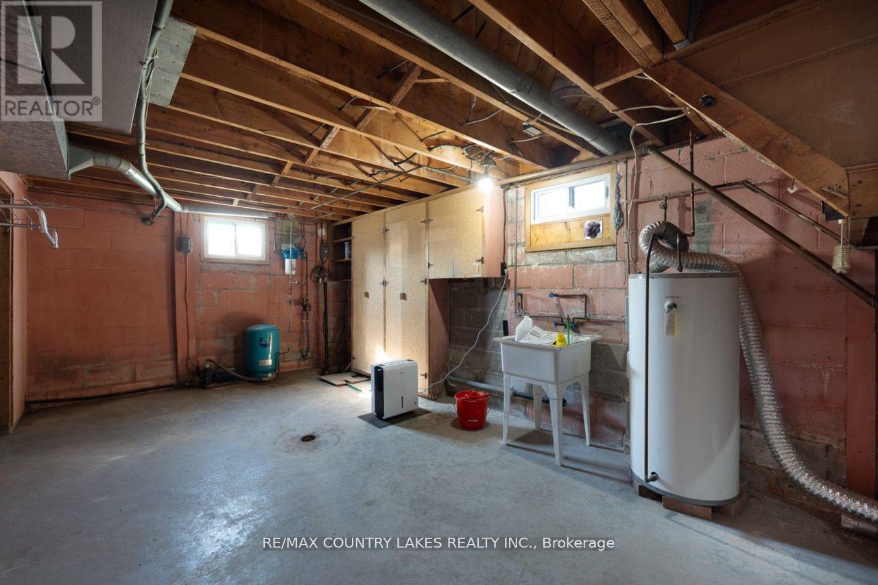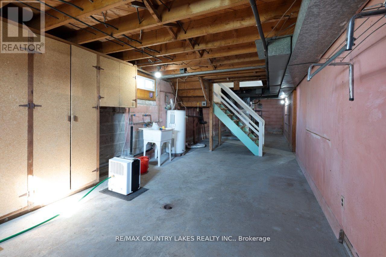 Welcome to this three-bedroom brick bungalow situated on a large mature lot just minutes West of Lindsay. The interior of the home offers a pleasing layout that features a large eat-in kitchen with a bow window and lots of cupboard space. The bright living room also has a bow window that allows for ample natural light, a walk-out to front deck and walkway and a conveniently located coat closet. Down the hall you will find three nicely sized bedrooms and a four-piece bath. The basement is partially finished and offers a large recreation room with propane fireplace, large utility room with laundry hook up, plus a storage room. Most rooms have been freshly painted (2024), and the living room and hallway have new laminate flooring. There is a carport / breezeway attached to the home that leads directly into the single car garage. Enjoy the lovely mature side yard for all your outdoor activities and gatherings. The home is serviced with municipal water and septic system, has a paved drive and sidewalk in front. Come have a look. Hot water heater is "As is" has not been turned on recently. (id:64974)