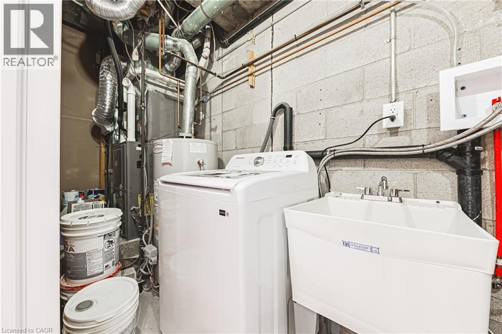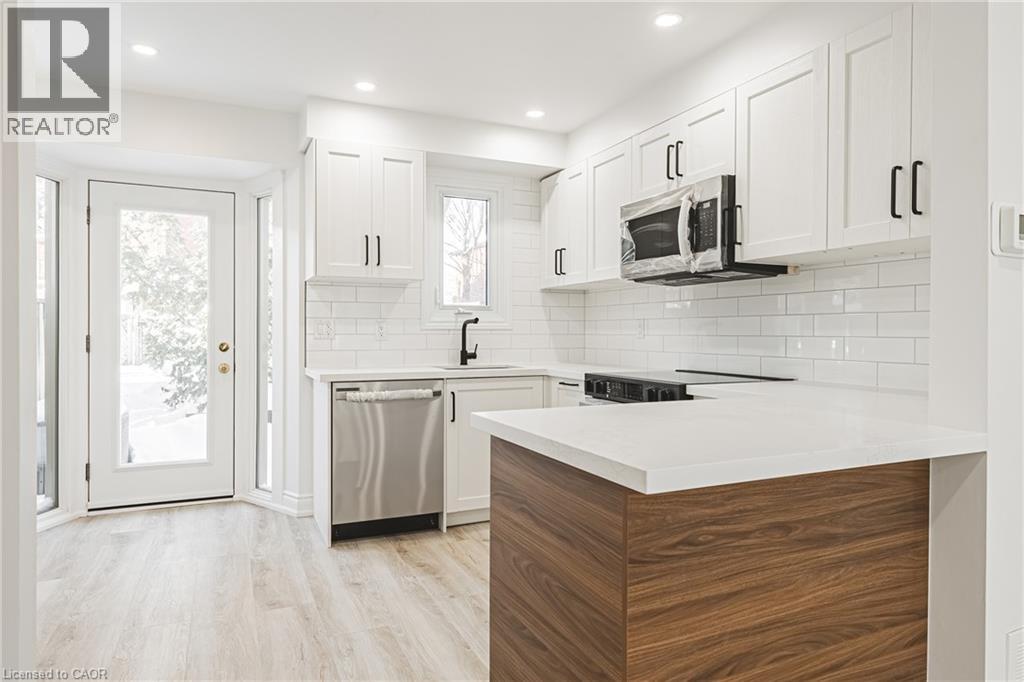 This fantastic NEWLY renovated END UNIT offers 2 spacious bedrooms, 1.5 baths and private backyard! Situated in the sought-after Brownstone complex in central Burlington, this unit boasts almost 1200 sqaure feet plus a fully finished lower level! The home has a great open concept floorplan with plenty of natural light and beautiful finishes / fixtures throughout. The main level features a large living/dining room combination with a brand new eat-in kitchen. The kitchen has airy white cabinetry, quartz counters and stainless-steel appliances. The upper level includes 2 generous sized bedrooms and a stunning newly renovated 4-piece bathroom with plenty of storage. The finished lower level features a generously sized rec room, separate laundry area, 2-piece bathroom and inside entry to the garage! This home is move in ready and is steps from Mapleview Mall, Spencer Smith Park, schools, restaurants and more with easy access to highways. (id:64974)