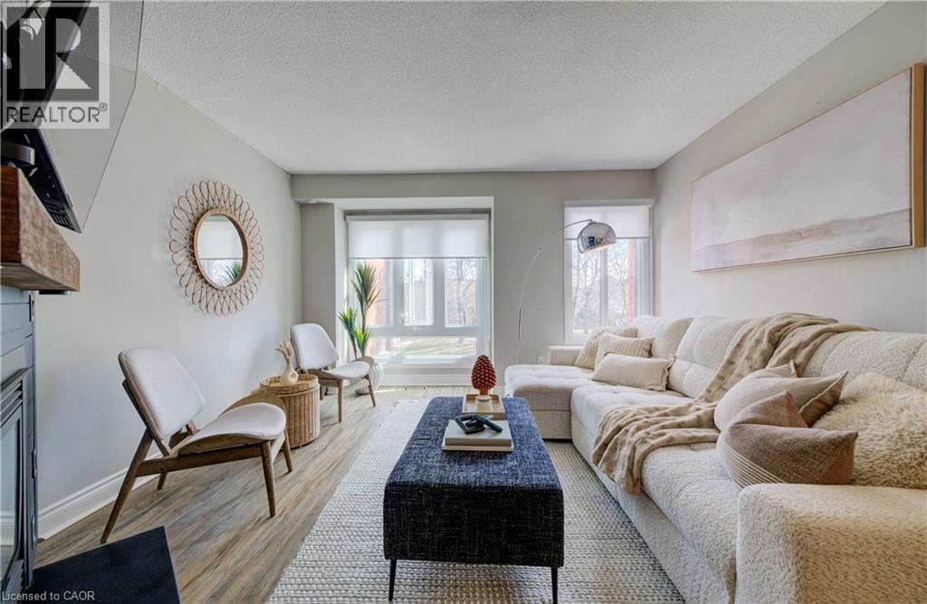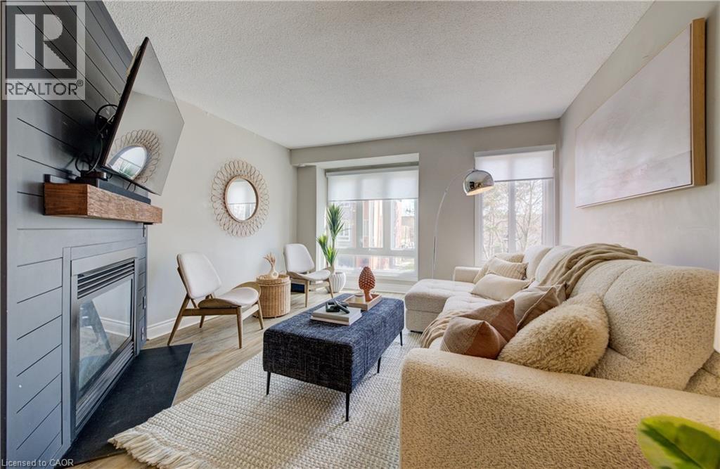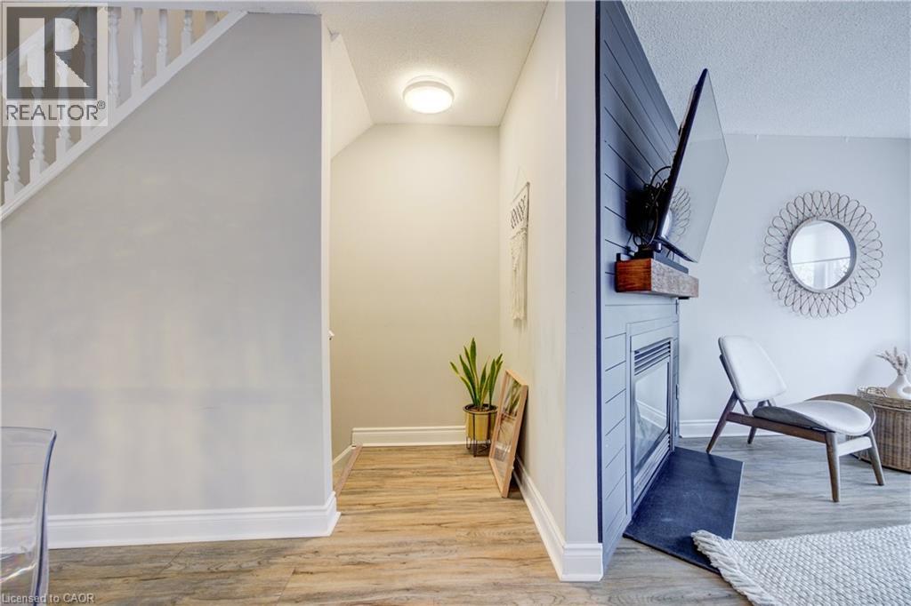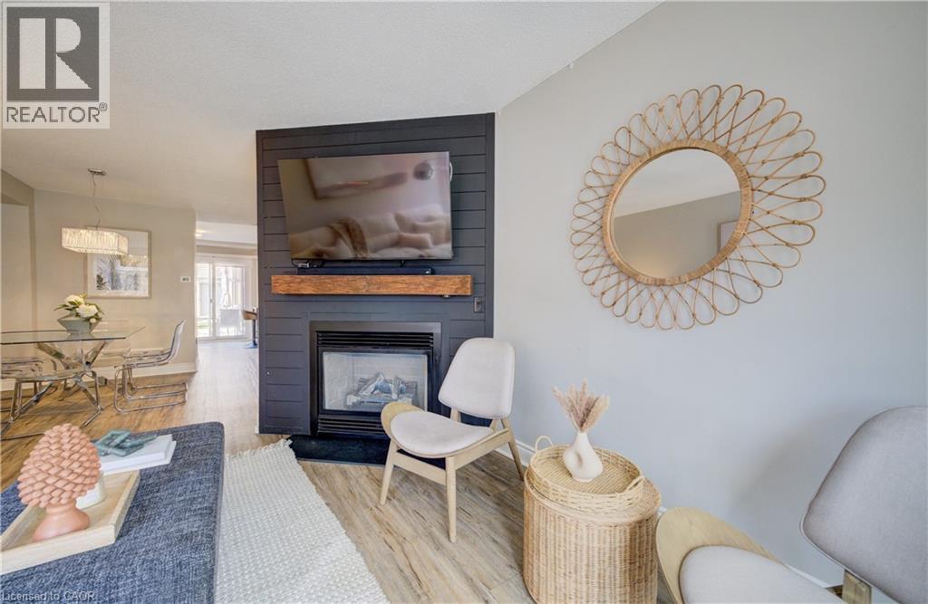 Tucked quietly at the back of The Brownstones, this executive townhome offers the perfect blend of privacy, function, and location — with 1,446 sq ft of total living space designed to fit your lifestyle. Step inside from your own private driveway and garage into a thoughtfully designed entry level featuring a powder room, laundry, and a versatile flex space - ideal as a home office, guest room, or third bedroom. Upstairs, the main living area is warm and inviting with an open-concept layout, anchored by a cozy gas fireplace and feature wall - the kind of space that just feels good to be in. The updated kitchen is both functional and stylish, with easy access to a bright rear patio for morning coffee or relaxed evenings. The upper level offers two generous bedrooms and a beautifully renovated 5-piece bathroom with double sinks. All of this in one of Burlington’s most convenient locations - just steps to shopping, groceries, and everyday essentials, with easy access to downtown Burlington, the GO Train, and major highways, and within walking distance to great schools. A home that truly fits your life - whether you’re starting out, simplifying, or somewhere in between. (id:64974)