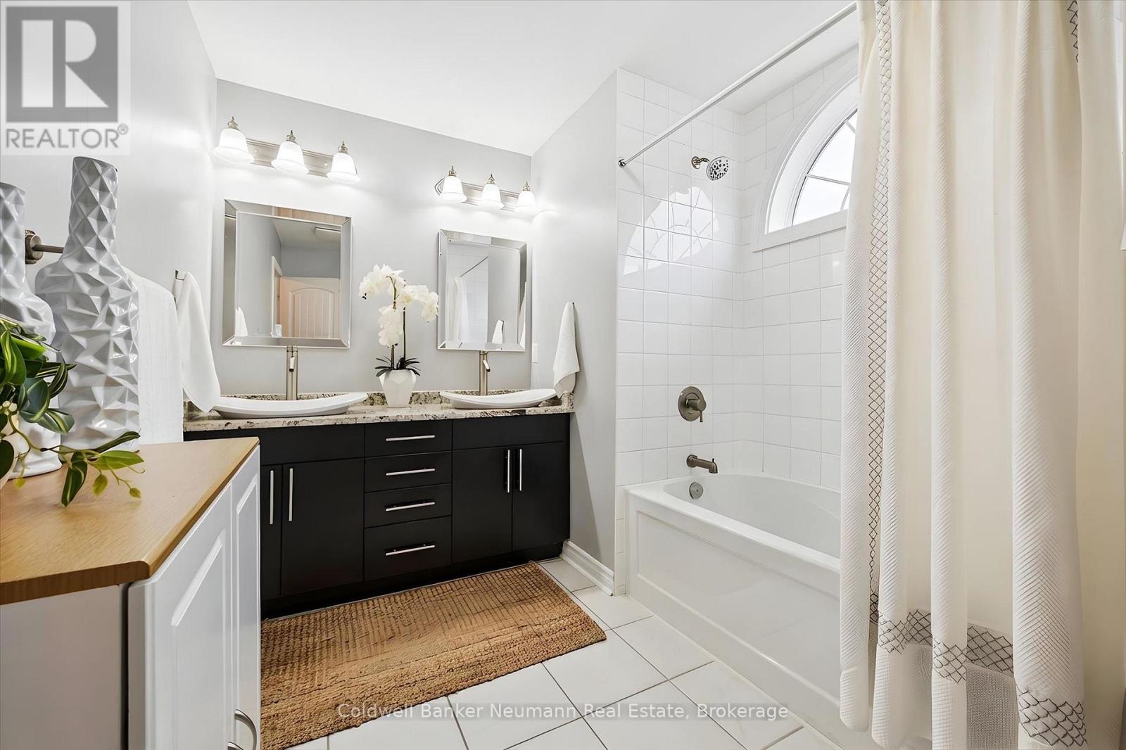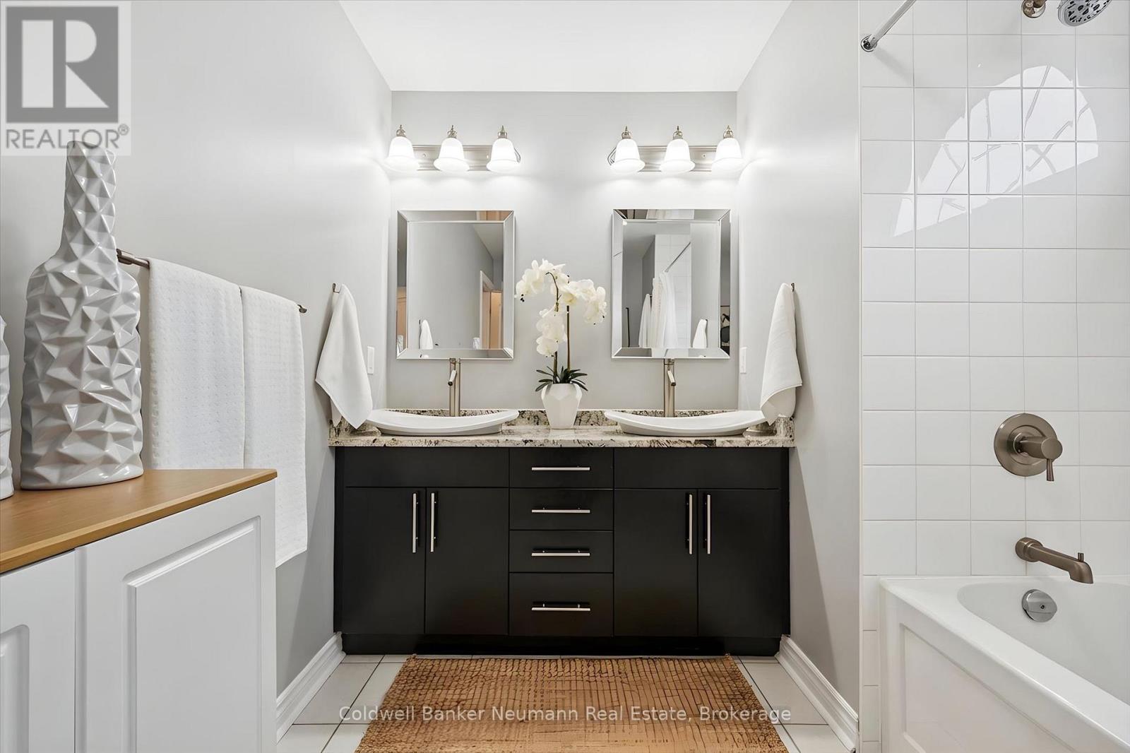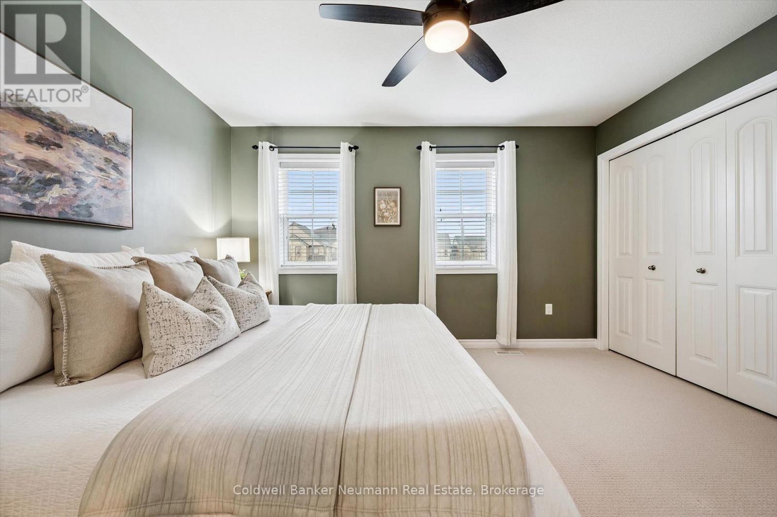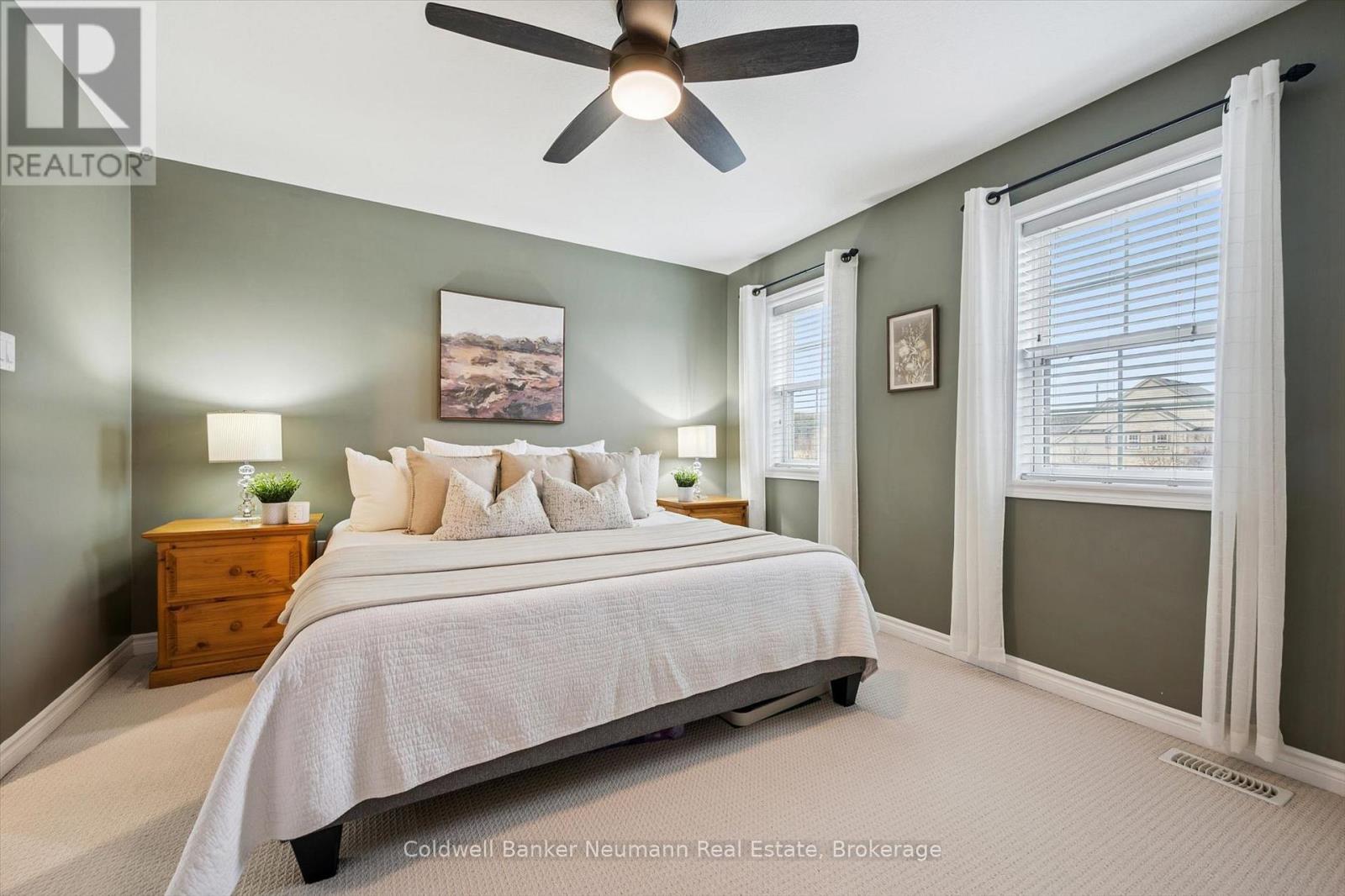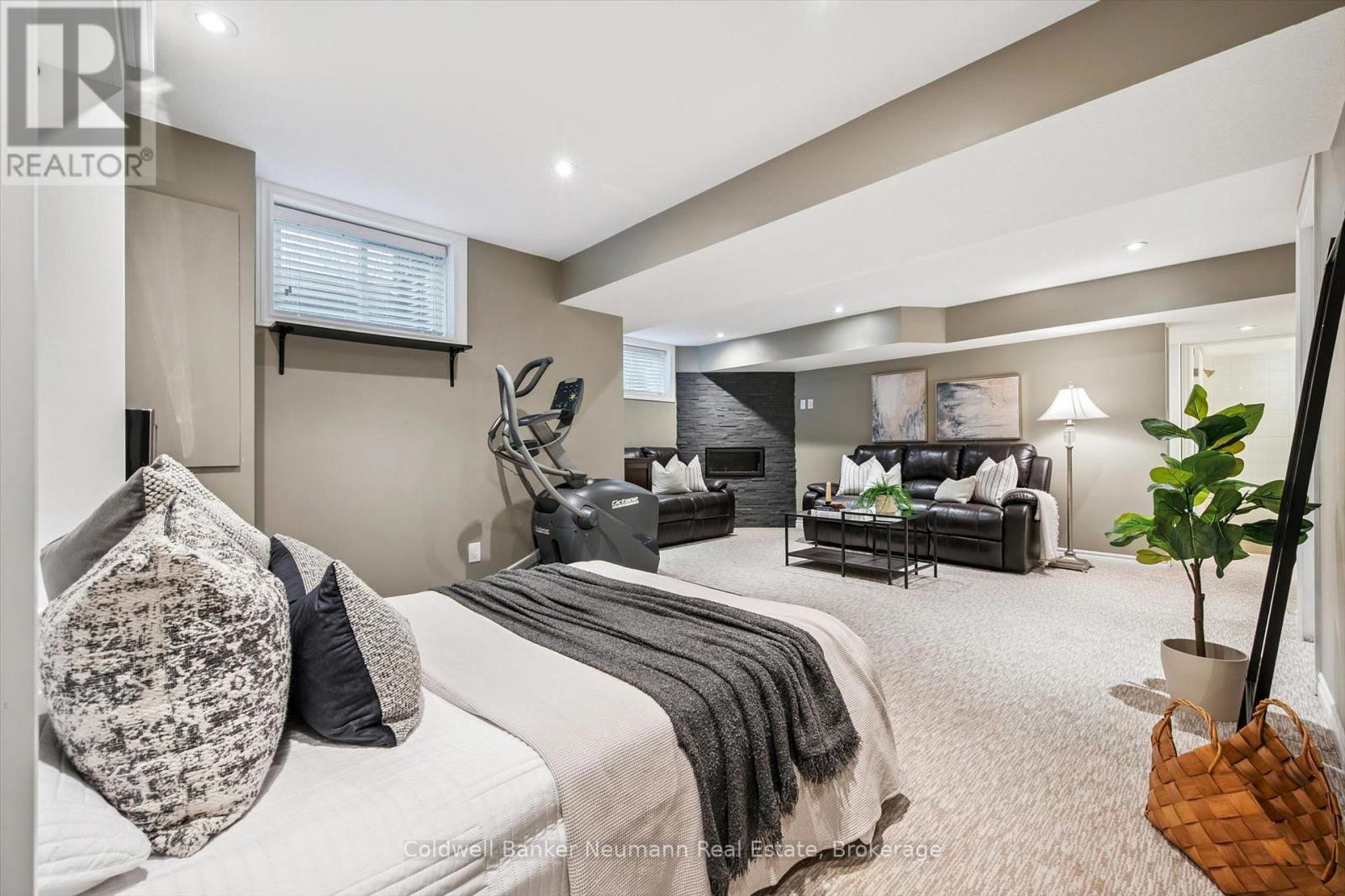 This immaculate 1,310 sq ft townhouse offers a bright, open concept layout and is located within a well maintained, beautifully landscaped complex in Guelph's desirable south end. Enjoy the ease of low maintenance living so you can spend more time in the surrounding trails, parks and amenities. Filled with natural light from large windows, the main level features Maple hardwood and ceramic flooring, a spacious living and dining area, and a walkout to a private patio that includes a gas line for your BBQ. The kitchen is stunning with granite counters, ceramic backsplash, NEW APPLIANCES & lots of countertop space. With 2 bedrooms, a 5 pcs bathroom and a DEN (ideal for a home office), this property is well-suited for families, professionals or investors. The finished basement adds valuable living space and can easily function as a third bedroom or in-law/guest suite, complete with a Murphy bed, cozy gas fireplace, 4 pcs bathroom with heated floors and ample storage. Perfect for extended family living or rental flexibility. Included are 2 PARKING SPOTS, a rare and valuable feature, with potential to rent or provide added flexibility for multi-vehicle households. Additional highlights include central air conditioning, an HRV, sump pump, a covered front porch, plenty of storage throughout and a 2 pcs bathroom on the main level. The furnace and A/C were replaced in 2020 and a new water softener installed in 2023. Located just steps to trails, parks, and top rated schools and within walking distance to grocery stores, restaurants, and entertainment, this home is ideal for families. For investors, the strong location, functional layout, and basement flexibility make it an attractive, low maintenance rental option in a high demand area. Quick access to the 401, Hwy 6 and nearby GO transit makes commuting simple. An excellent opportunity for a wonderful family home or a smart, versatile investment property in a highly convenient, well connected neighbourhood. (id:64974)