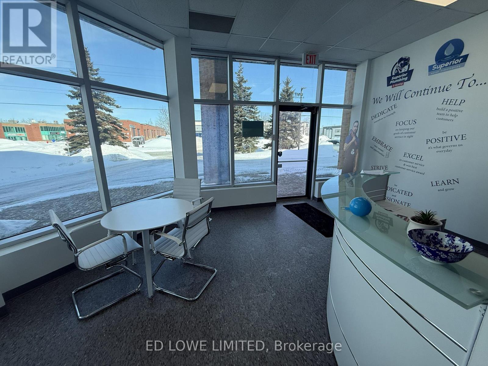 Available for sub-lease, this bright, modern end unit is 2,154 s.f. with lots of natural light. Features include front foyer/reception area, private offices, kitchenette, storage and open warehouse with drive-in shipping door. Excellent exposure, ample parking and close to shopping - Costco, Park Place, restaurants and Highway 400 interchange. Existing lease expires October 31, 2028. (id:64974)