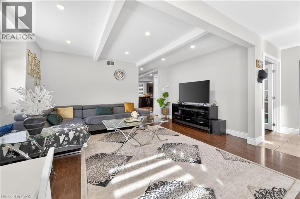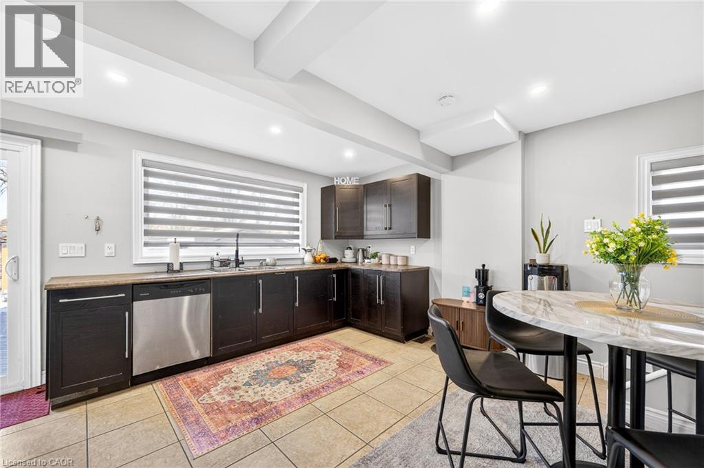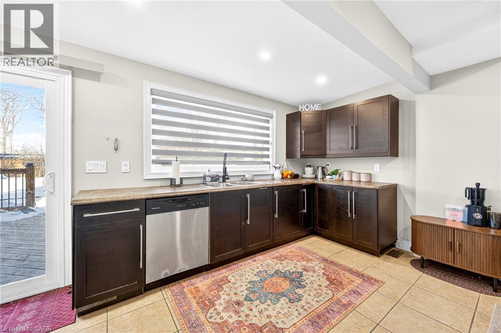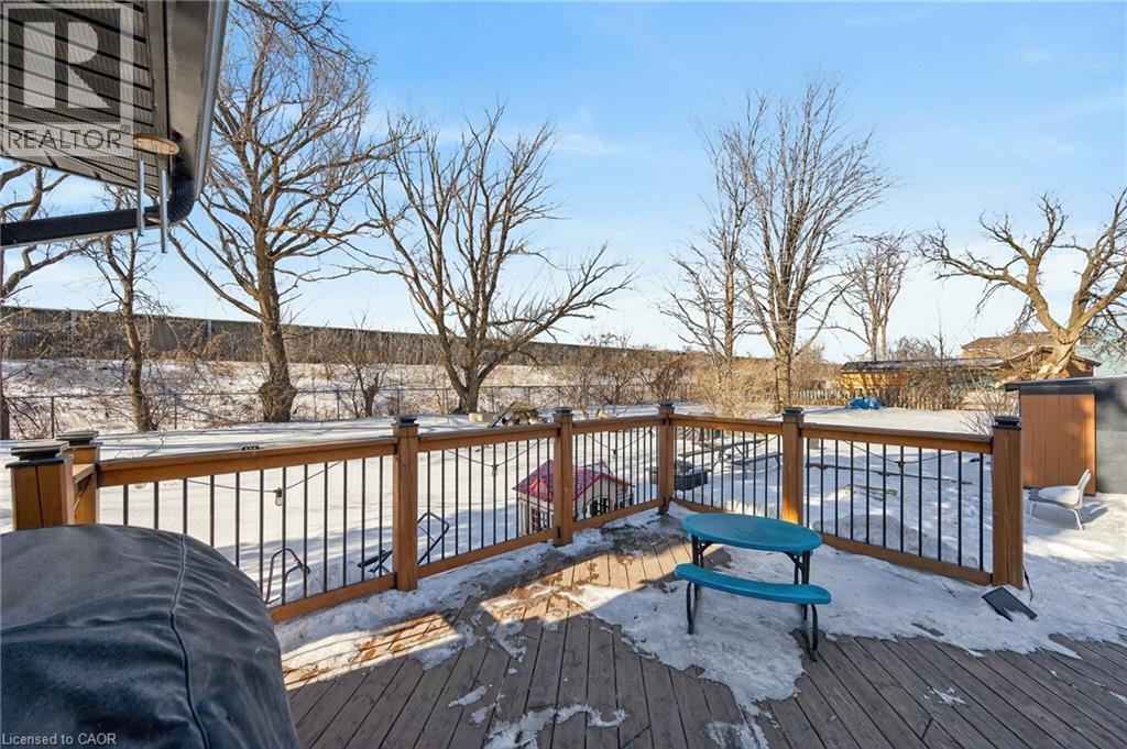 Beautifully updated 1,594 sq. ft. two-story home featuring 3 + 1 bedrooms and 2 full bathrooms. Located on a 40 x 93 ft. lot just steps to the Waterfront Trail with direct access to Hamilton Beach and Kinsmen Park. Minutes to Hamilton, Burlington, and highway access. Bright open-concept main floor with modern eat-in kitchen, stainless steel appliances, and walk-out to a large deck. Main level includes a full bathroom and private office. Upper level offers three spacious bedrooms, a 5-piece bath with double vanity, and convenient laundry. Updated mechanicals, 200-amp service, long private driveway, exterior garage/workshop, and excellent privacy with adjacent City-owned land. Ideal family home in a prime waterfront neighbourhood. (id:64974)