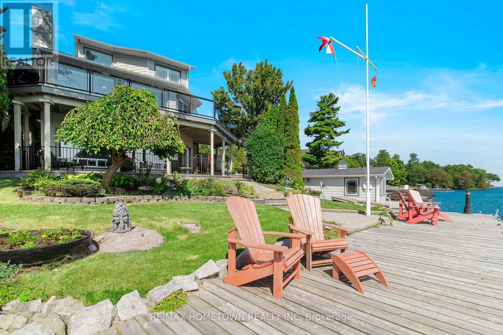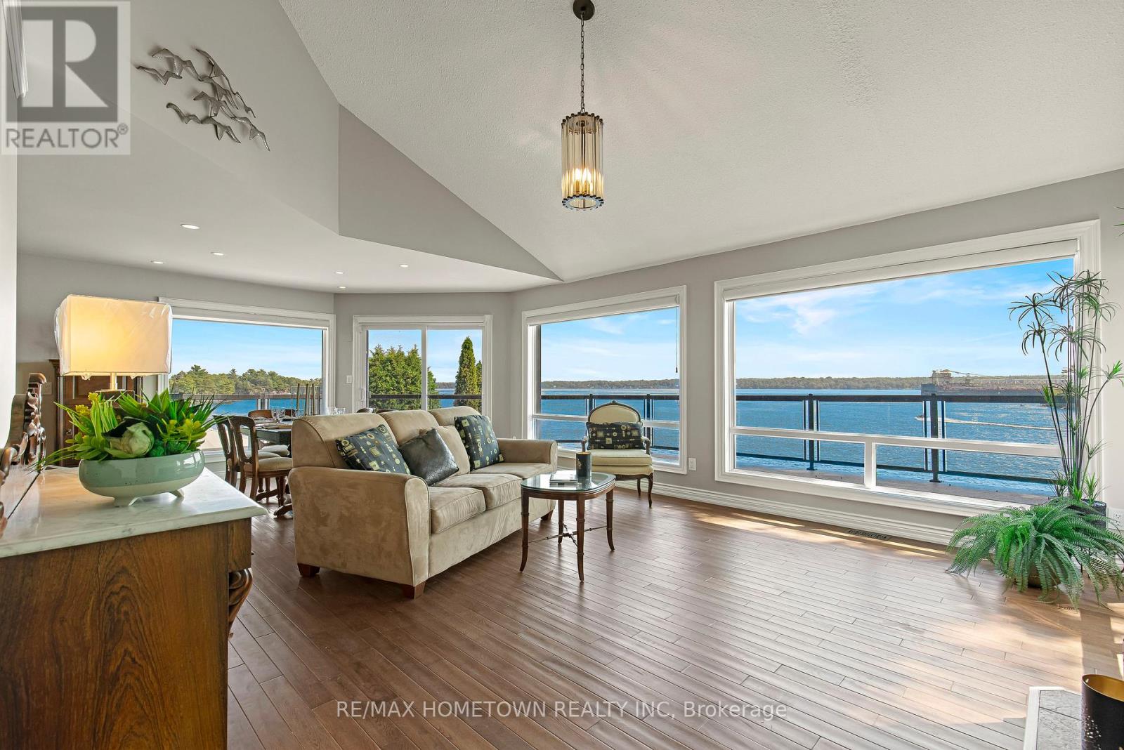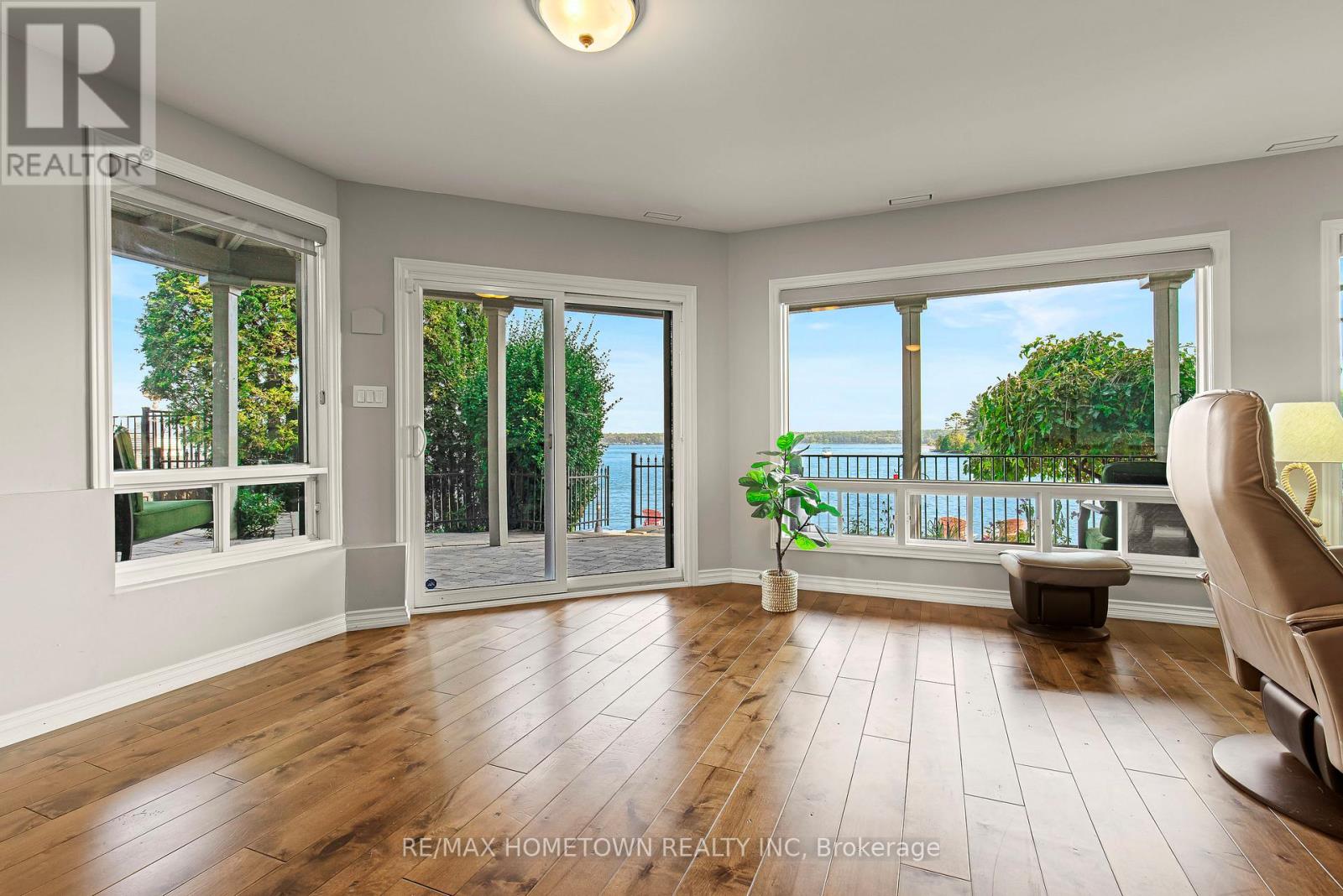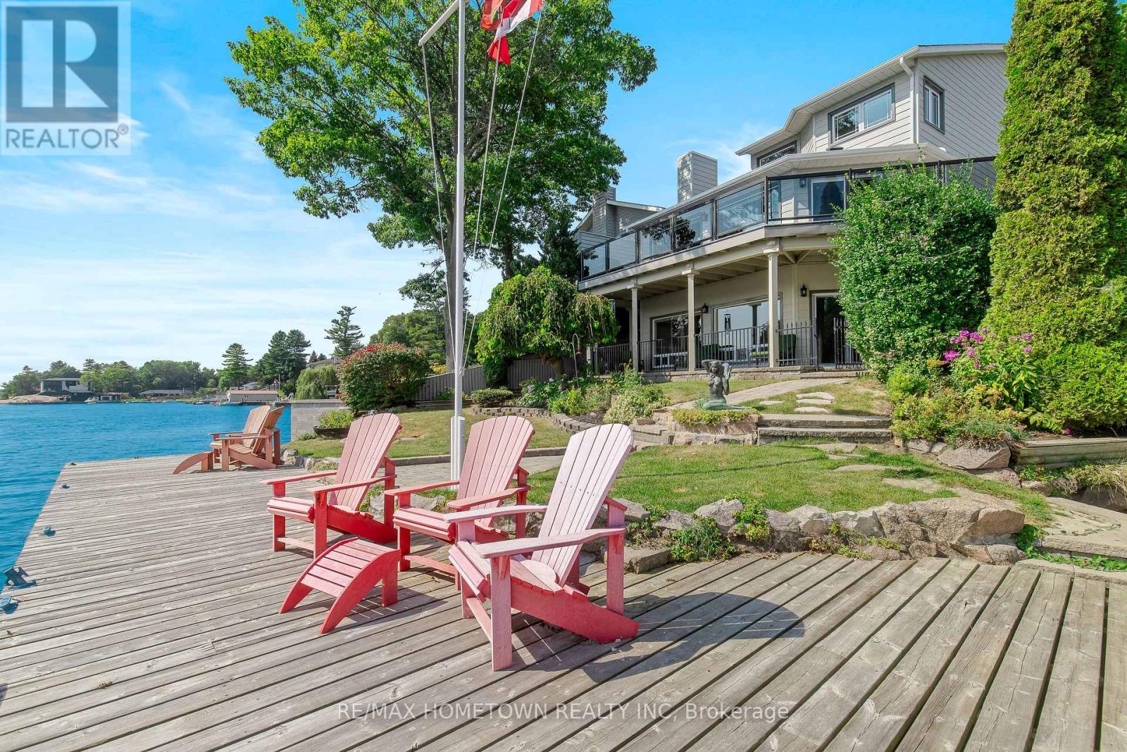 Located within the City of Brockville, yet offering the privacy of a riverfront retreat, 9 Bayview Road provides front-row views of the great ships navigating the world-renowned St. Lawrence Seaway. Just minutes from downtown Brockville, yet worlds away in its waterfront serenity. Life on the St. Lawrence River offers a rhythm and beauty that changes with every season, and this exceptional waterfront property captures it perfectly. Set among dramatic rock outcroppings and beautifully maintained gardens, the home blends natural landscape with thoughtfully designed living. A wall of south-facing windows fills the interior with natural light while framing sweeping panoramic vistas across the river. From the balcony or covered deck, watch international freighters glide past your shoreline, a remarkable spectacle found in only a select few waterfront locations in the world. Outdoor living is effortless with walkout access to the river, easy docking from a Kehoe dock, and a SeaDoo lift with storage facility ready for summer adventures. Spring brings fresh colour to the gardens and lively river activity, while summer invites boating, swimming, and waterfront gatherings. Autumn sunsets and peaceful winter scenes ensure beauty in every season. With private road access and guest parking on Bayview Road, this is a rare opportunity to own an exceptional city waterfront home on the St. Lawrence River. (id:64974)