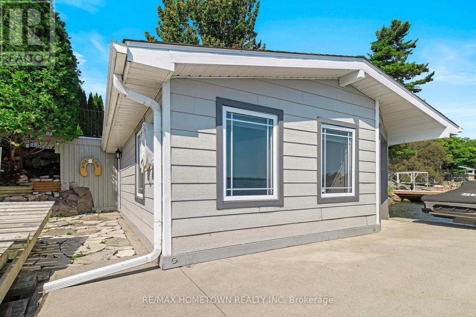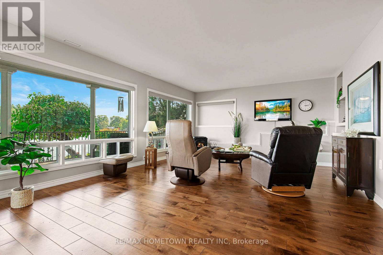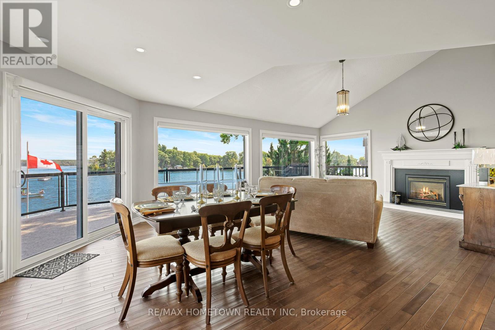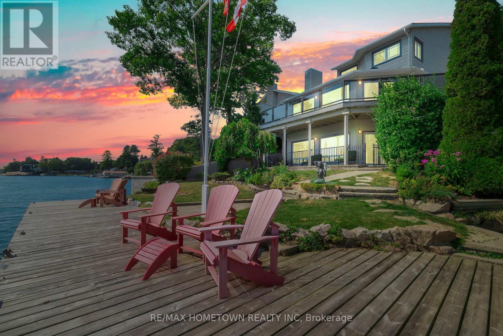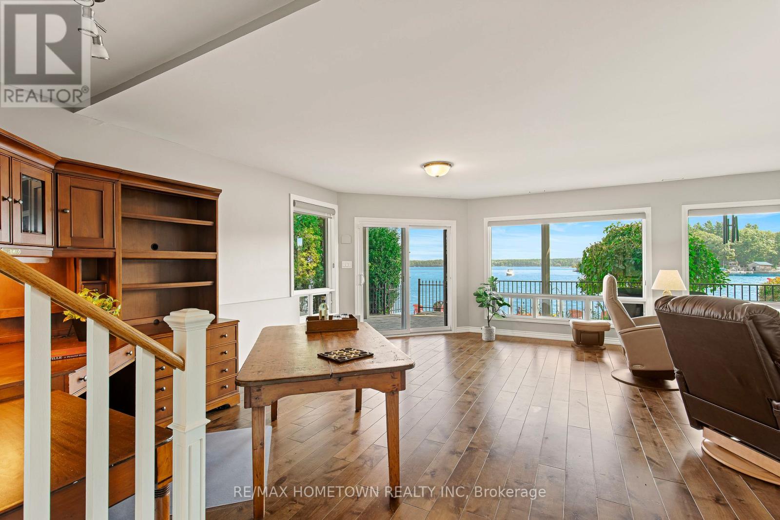 Located within the City of Brockville, yet offering the privacy of a riverfront retreat, 9 Bayview Road provides front-row views of the great ships navigating the world-renowned St. Lawrence Seaway. Just minutes from downtown Brockville, yet worlds away in its waterfront serenity. Life on the St. Lawrence River offers a rhythm and beauty that changes with every season, and this exceptional waterfront property captures it perfectly. Set among dramatic rock outcroppings and beautifully maintained gardens, the home blends natural landscape with thoughtfully designed living. A wall of south-facing windows fills the interior with natural light while framing sweeping panoramic vistas across the river. From the balcony or covered deck, watch international freighters glide past your shoreline, a remarkable spectacle found in only a select few waterfront locations in the world. Outdoor living is effortless with walkout access to the river, easy docking from a Kehoe dock, and a SeaDoo lift with storage facility ready for summer adventures. Spring brings fresh colour to the gardens and lively river activity, while summer invites boating, swimming, and waterfront gatherings. Autumn sunsets and peaceful winter scenes ensure beauty in every season. With private road access and guest parking on Bayview Road, this is a rare opportunity to own an exceptional city waterfront home on the St. Lawrence River. (id:64974)