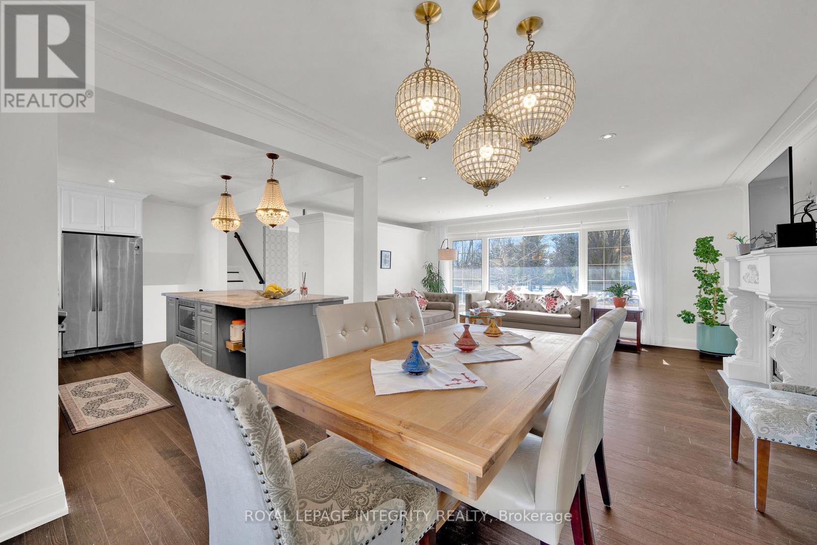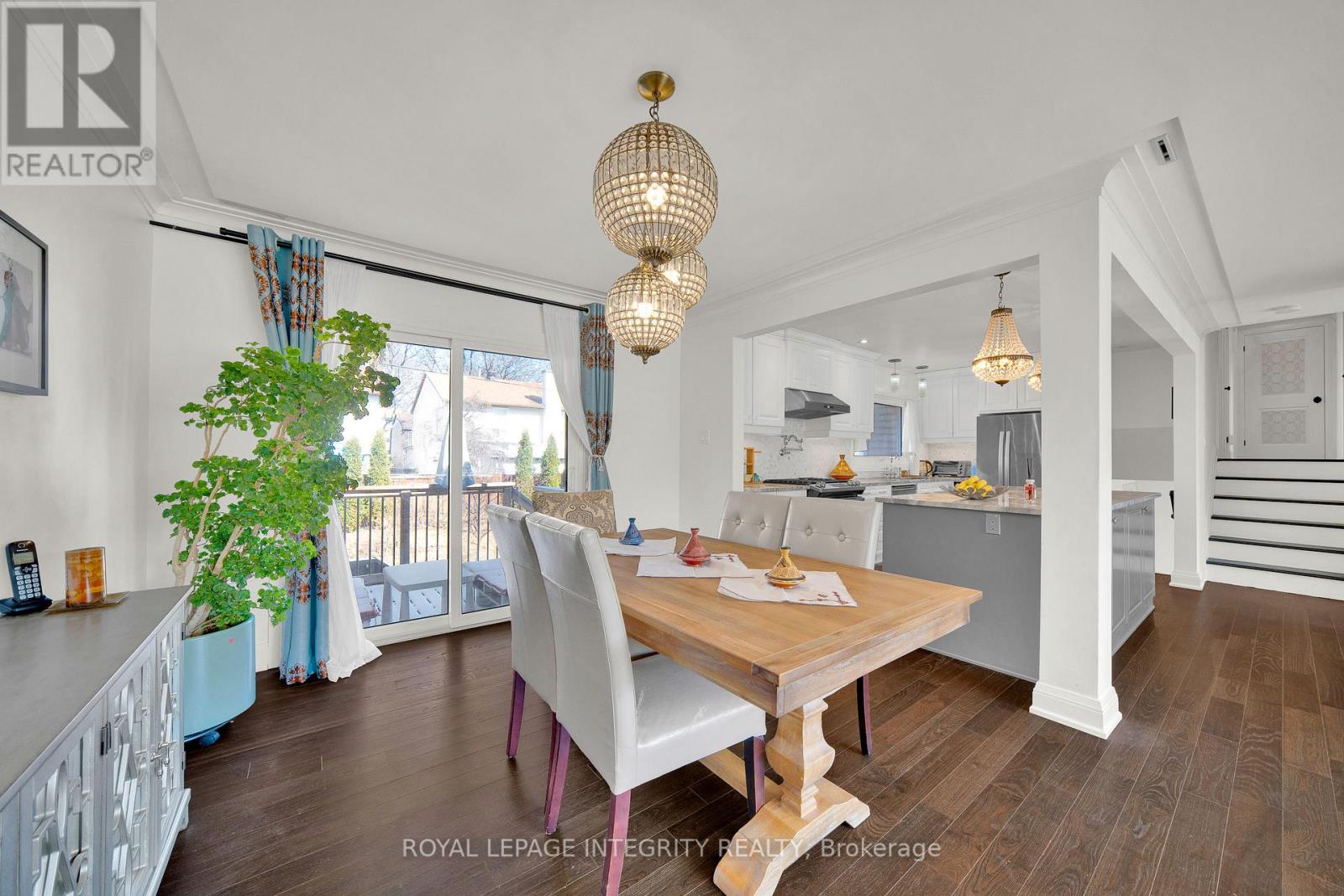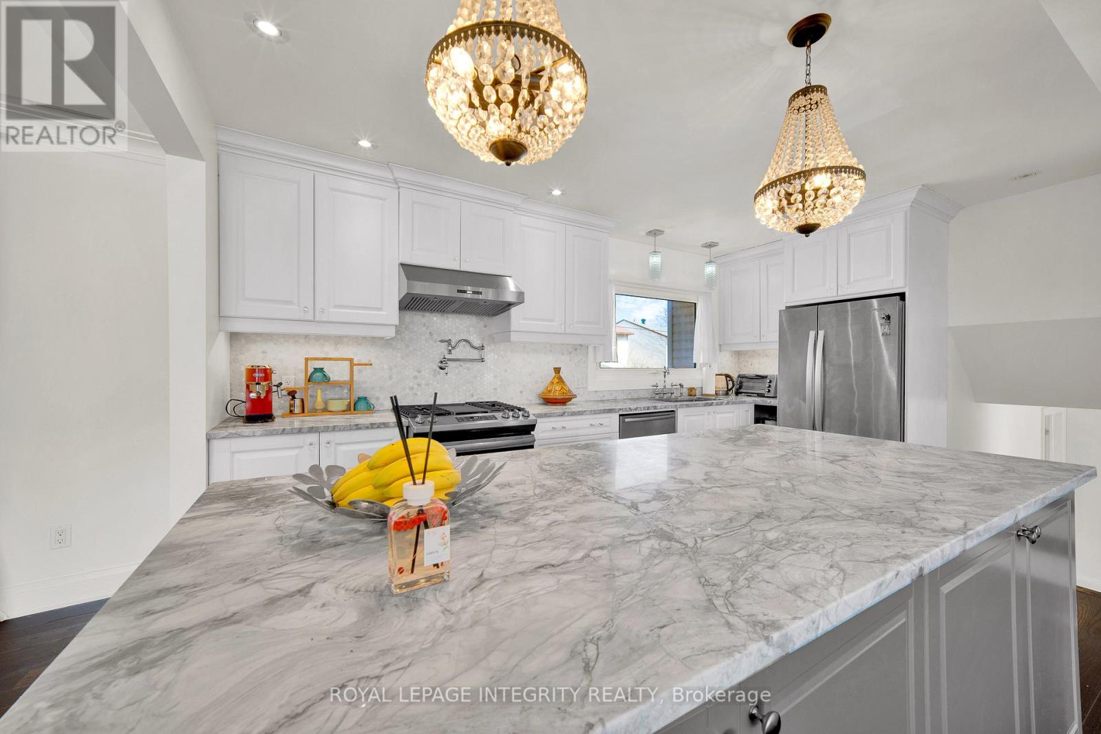 Welcome to 9 Bellfield Street, an exquisitely renovated home on a premium 64.99 x 112 ft lot in the sought-after, family-friendly community of Bayshore. Thoughtfully redesigned with style and function in mind, this move-in-ready residence offers elegant living spaces, quality finishes, and an unbeatable location. A grand foyer leads into the bright open-concept main floor, where the beautifully updated kitchen serves as the heart of the home, featuring marble countertops, white cabinetry with extensive storage, high-end finishes, a pot-filler above the stove, and a spacious layout ideal for those who love to cook. The adjoining living and dining areas are filled with natural light and perfect for entertaining. Oversized front windows frame picturesque views of the green space across the street, offering no direct front neighbours and beautiful scenery year-round. An elegant gas fireplace adds warmth and charm, while sliding doors from the dining room open to a large east-facing backyard with a deck.The second level features a tranquil primary bedroom overlooking the backyard, complete with a renovated 4-piece ensuite with a walk-in glass shower and double vanity. Two additional bedrooms and another beautifully renovated 4-piece bathroom with marble finishes complete the upper level. The lower level offers versatile space for a family room, gym, office, or play area, along with a mudroom/laundry room with inside access to the oversized garage and backyard. The fully finished basement adds even more living space with a spacious recreation area and workspace, ideal for growing families. Just minutes to the Queensway, Bayshore Shopping Centre, schools, parks, and everyday amenities. Recent updates: Basement finished (2026), Windows (2018&2025), New perimeter drain (2019), Laundry Room (2020), Exterior wall paint (2023), Two-level Deck (2020), A/C(2018). (id:64974)