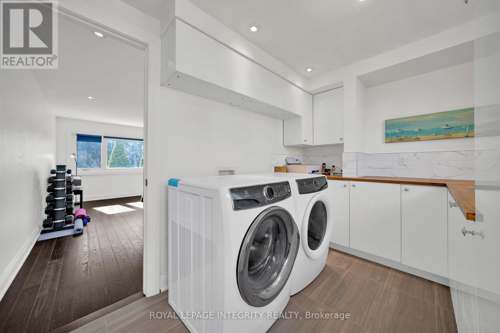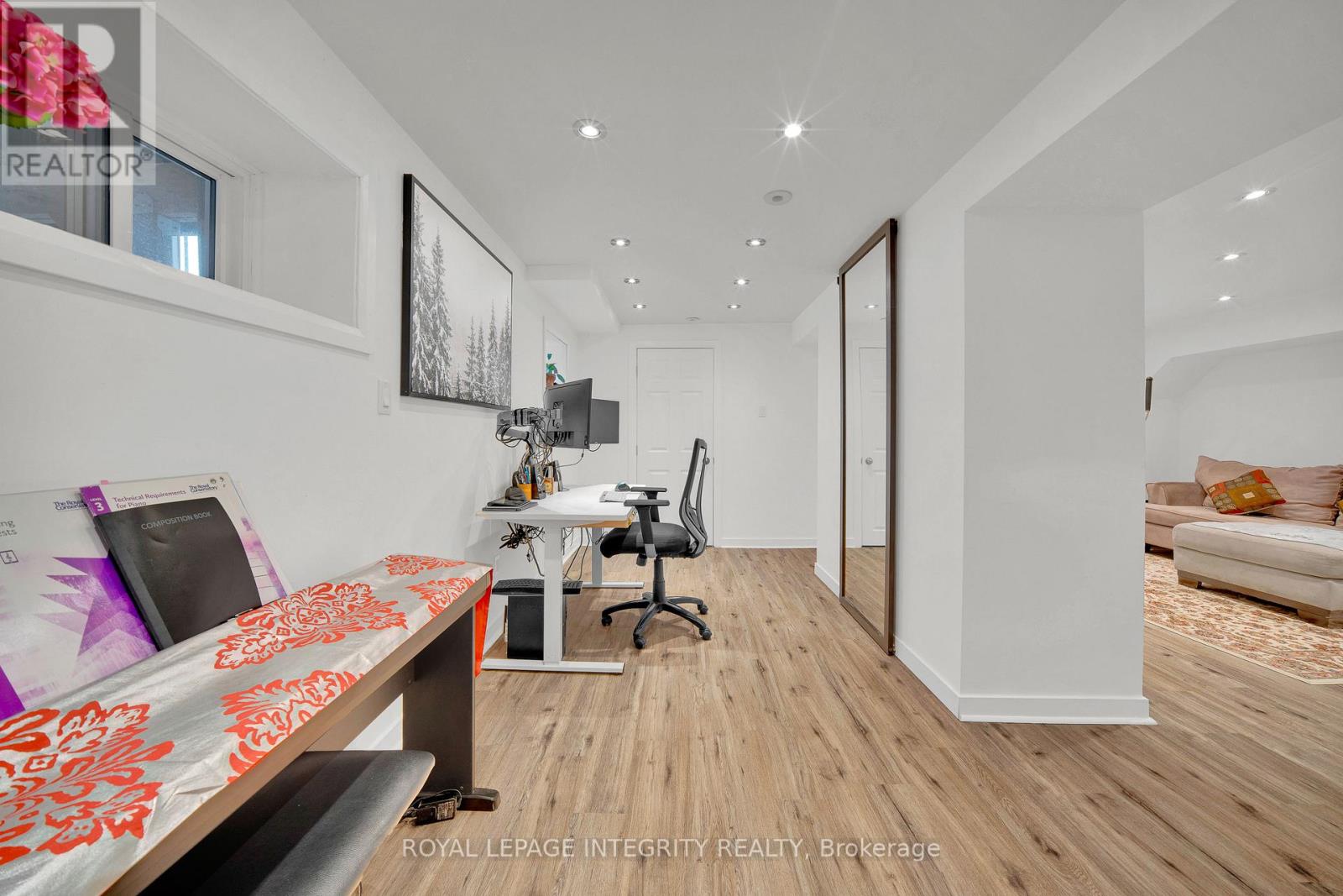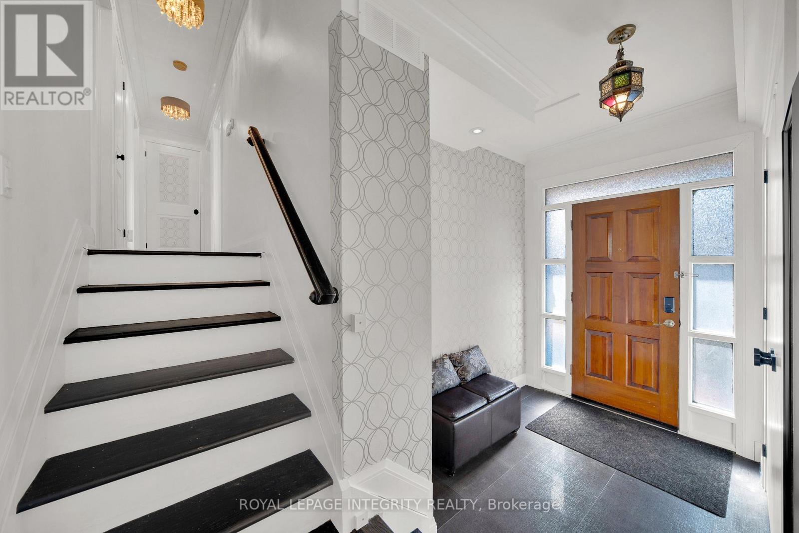 Welcome to 9 Bellfield Street, an exquisitely renovated home on a premium 64.99 x 112 ft lot in the sought-after, family-friendly community of Bayshore. Thoughtfully redesigned with style and function in mind, this move-in-ready residence offers elegant living spaces, quality finishes, and an unbeatable location. A grand foyer leads into the bright open-concept main floor, where the beautifully updated kitchen serves as the heart of the home, featuring marble countertops, white cabinetry with extensive storage, high-end finishes, a pot-filler above the stove, and a spacious layout ideal for those who love to cook. The adjoining living and dining areas are filled with natural light and perfect for entertaining. Oversized front windows frame picturesque views of the green space across the street, offering no direct front neighbours and beautiful scenery year-round. An elegant gas fireplace adds warmth and charm, while sliding doors from the dining room open to a large east-facing backyard with a deck.The second level features a tranquil primary bedroom overlooking the backyard, complete with a renovated 4-piece ensuite with a walk-in glass shower and double vanity. Two additional bedrooms and another beautifully renovated 4-piece bathroom with marble finishes complete the upper level. The lower level offers versatile space for a family room, gym, office, or play area, along with a mudroom/laundry room with inside access to the oversized garage and backyard. The fully finished basement adds even more living space with a spacious recreation area and workspace, ideal for growing families. Just minutes to the Queensway, Bayshore Shopping Centre, schools, parks, and everyday amenities. Recent updates: Basement finished (2026), Windows (2018&2025), New perimeter drain (2019), Laundry Room (2020), Exterior wall paint (2023), Two-level Deck (2020), A/C(2018). (id:64974)