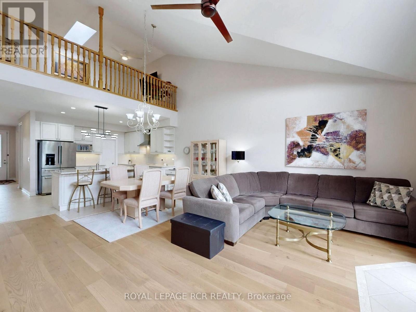 Welcome to Fox Trail, an exclusive enclave of luxury bungaloft condominium style homes. This meticulously kept home overlooks the Foxbridge Golf Course and picturesque countryside. Stunning morning sunrises and cozy evening barbecues can be enjoyed on the oversized deck and patio area amongst the sounds of nature. This beautifully laid out and designed home with over 3,000 sq ft of living space allows for main floor living, with a main floor master bedroom with luxurious 5 piece ensuite, a full kitchen with breakfast bar and walk-in pantry. The main floor also boasts a great room with vaulted ceiling and gas fireplace, den, laundry room with basin and garage access to the two car garage. Upstairs, the loft offers 2 large bedrooms, a full bathroom and seating area that overlooks the great room below. The fully finished basement offers a recreation room with two fireplaces, a kitchen, bathroom with shower and bedroom/home office. Live the lifestyle you deserve in this close-knit and friendly community nestled in Uxbridge, the Trail Capital of Canada. Enjoy country living and all the benefits of the city nearby, a short drive from both Aurora and Oshawa/Whitby. (id:64974)