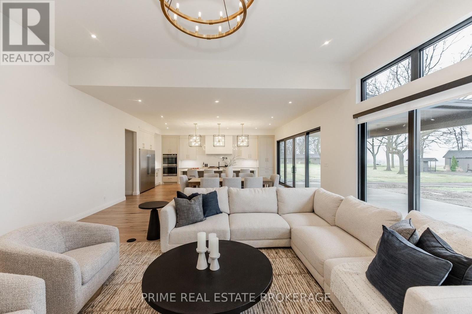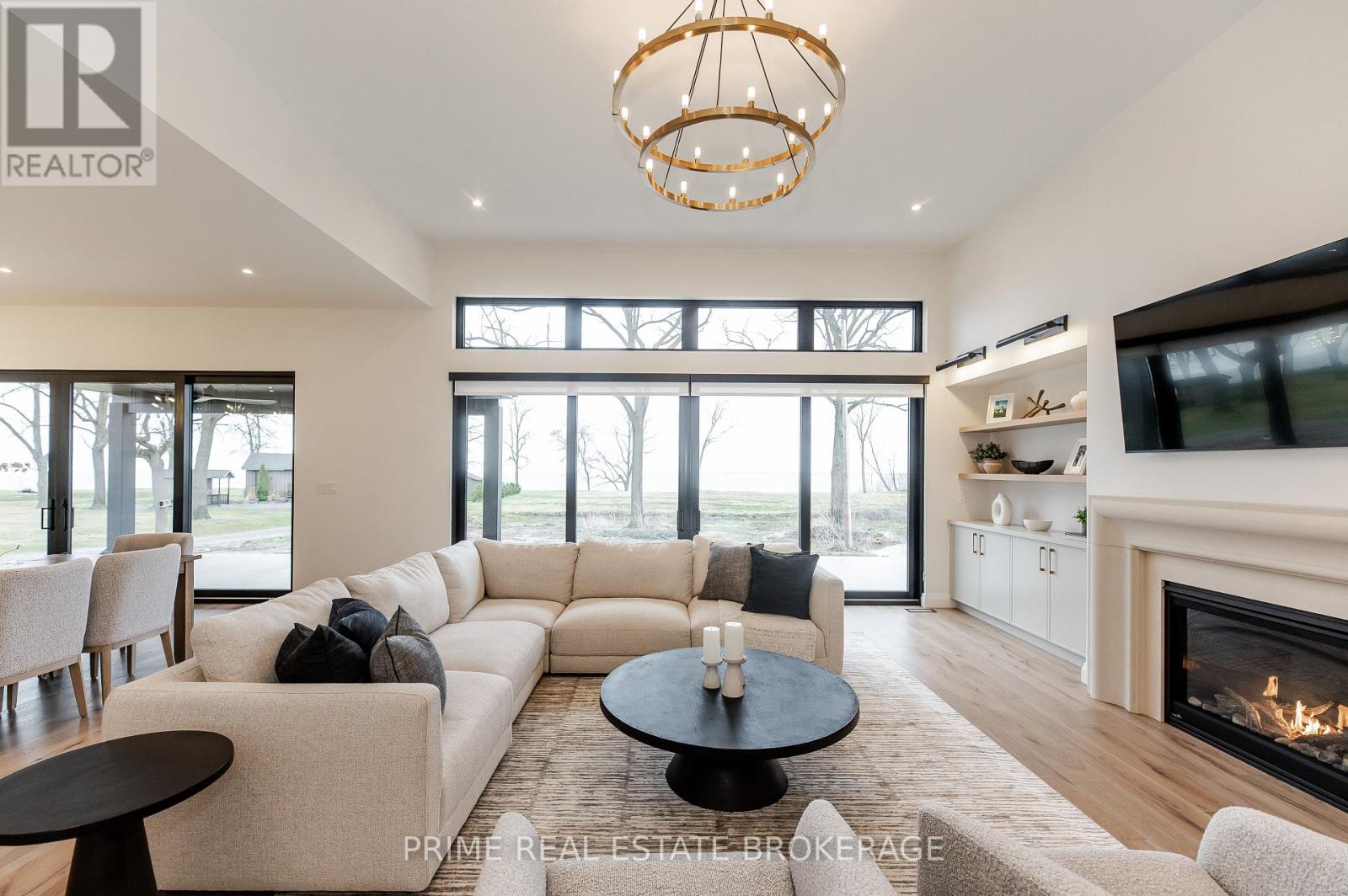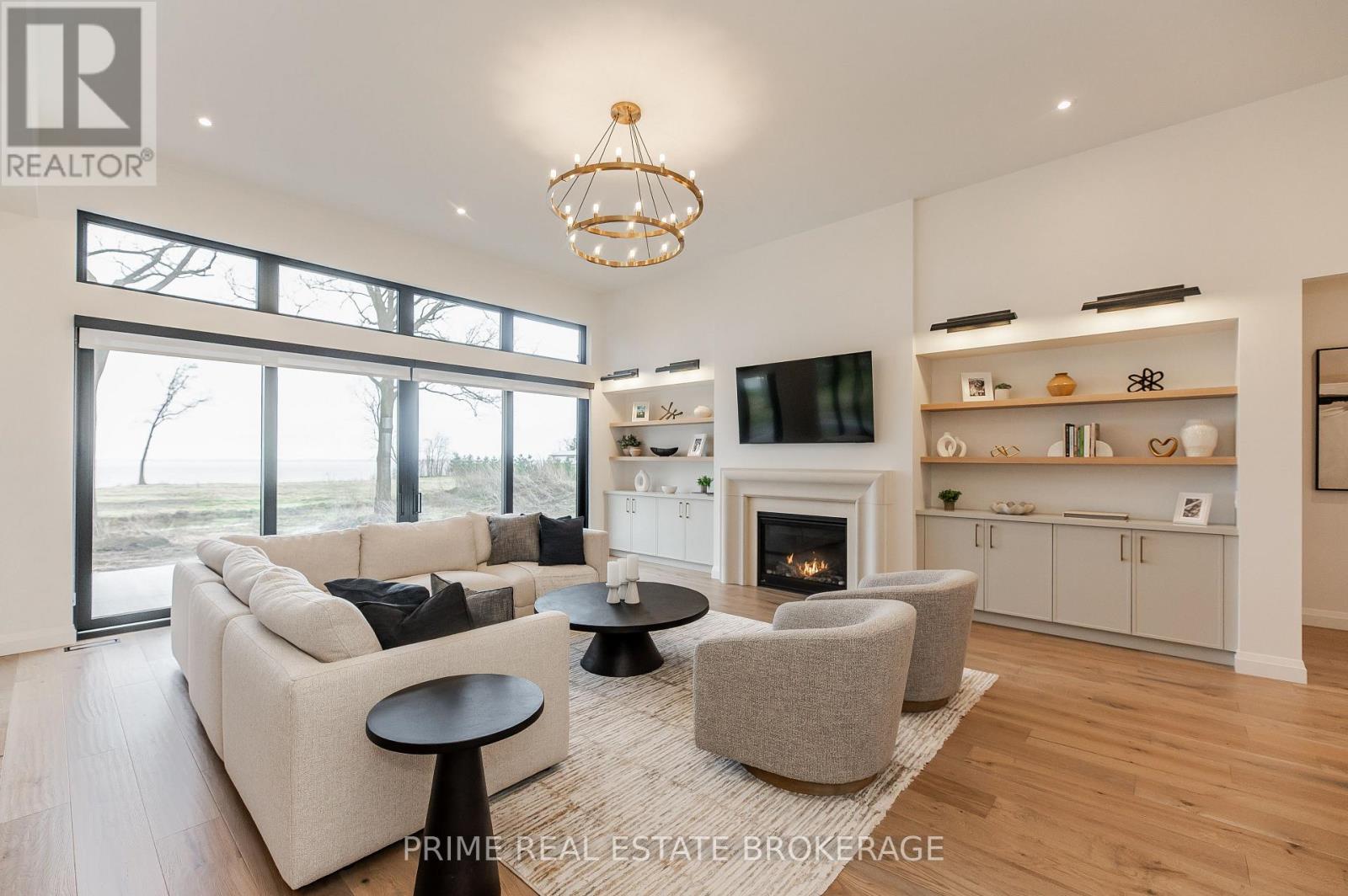 Experience the height of lakeside elegance in this stunning, newly constructed custom-built masterpiece, where the serene beauty of Long Point Country meets modern architectural brilliance. From the moment you cross the threshold, you are greeted by the breathtaking scale of soaring 12-foot ceilings & an expansive open-concept layout that draws your gaze directly to the shimmering vistas of Lake Erie. This home is designed for the consummate entertainer, featuring a show-stopping 12-foot central island that serves as the heart of the home, complemented by a discreet separate pantry for seamless hosting. Imagine crisp autumn evenings spent by the water or bright summer mornings sipping coffee while watching the sun dance on the lake from your main living space, where high-end finishes effortlessly blend sophisticated luxury with a warm, cottage-inspired soul. The primary suite serves as a true private sanctuary, boasting a spa-like ensuite complete with an oversized glass shower, a deep freestanding tub for unwinding & a generous walk-in closet. Practicality meets style in the functional mudroom, which offers integrated laundry and custom built-in storage perfectly situated off the garage. Below, the fully finished lower level defies expectations with impressive 10-foot ceilings, a stylish wet bar, & three additional bedrooms that offer endless versatility for a home gym, professional office, or a welcoming retreat for weekend guests. Nestled within a prestigious new subdivision, your lifestyle here is defined by adventure and leisure; you are just moments away from the premier boating at Pottahawk Point, the golden sands of Turkey Point, gorgeous views from Long Point Inner Bay & local staples like The Chip Ship. This is more than just a residence; it is a rare opportunity to secure a legacy property in a coveted community. With over 2,000 square feet of meticulously crafted living space, this lakefront gem represents the ultimate intersection of comfort & prestige. (id:64974)