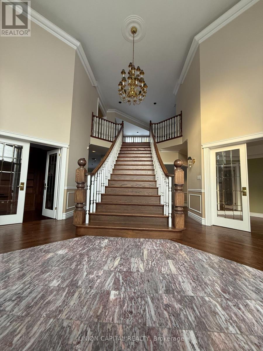Welcome to Deer Creek in Durham's most prestigious enclave. This exceptional 6+1 bedroom, 7 bathroom estate home sits on a private 1.34-acre lot and offers over 5,100 sq ft of refined living space. Enjoy resort-style outdoor living with an inground pool, hot tub, and tranquil setting backing onto lush green space and a golf course, surrounded by mature trees for ultimate privacy. Designed for both comfort and entertaining, the home features 9-ft ceilings on the main floor, a gourmet chef's kitchen, double-sided gas fireplace between the living and family rooms, and a sunken office/den. The upper level offers four spacious bedrooms, including two with private ensuites and two connected by a Jack & Jill bath. A separate in-law wing includes its own kitchen, living room, two additional bedrooms, full bathroom, and private deck. Additional highlights include an oversized bathroom with accessible shower, elevator/lift access from the garage, and a finished basement with a 7th bedroom, wine cellar, and generous open space for recreation or customization. (id:64974)