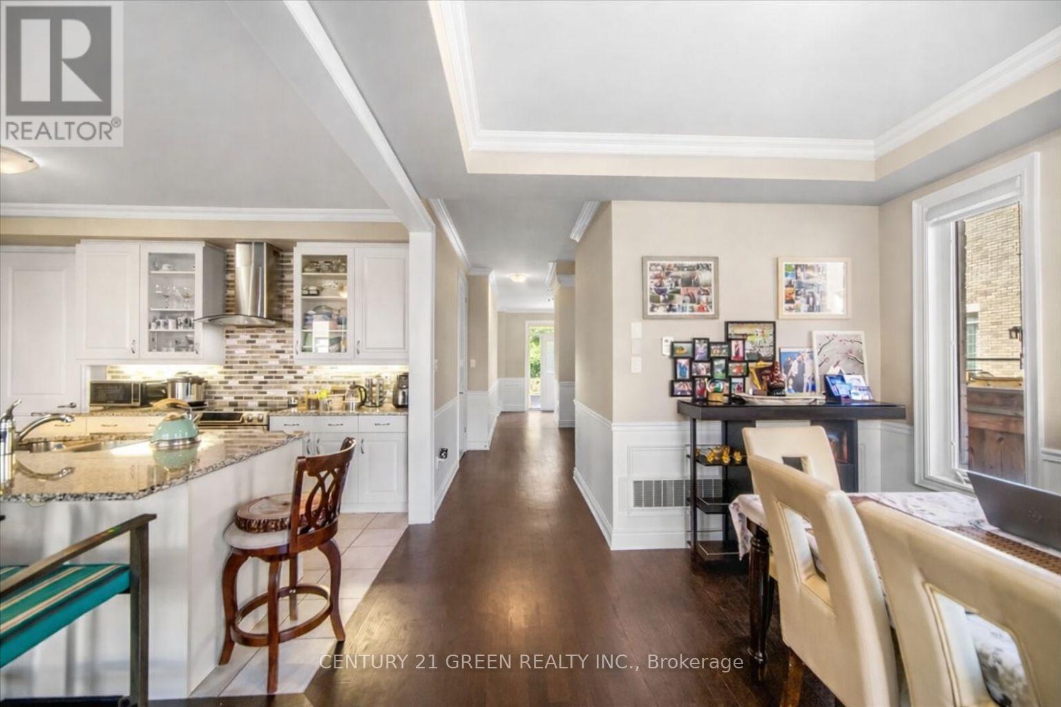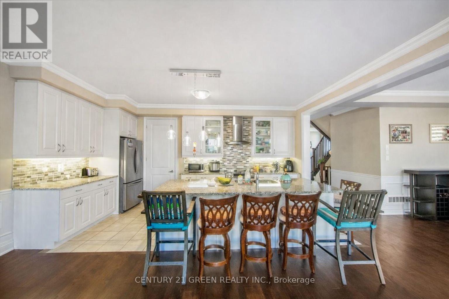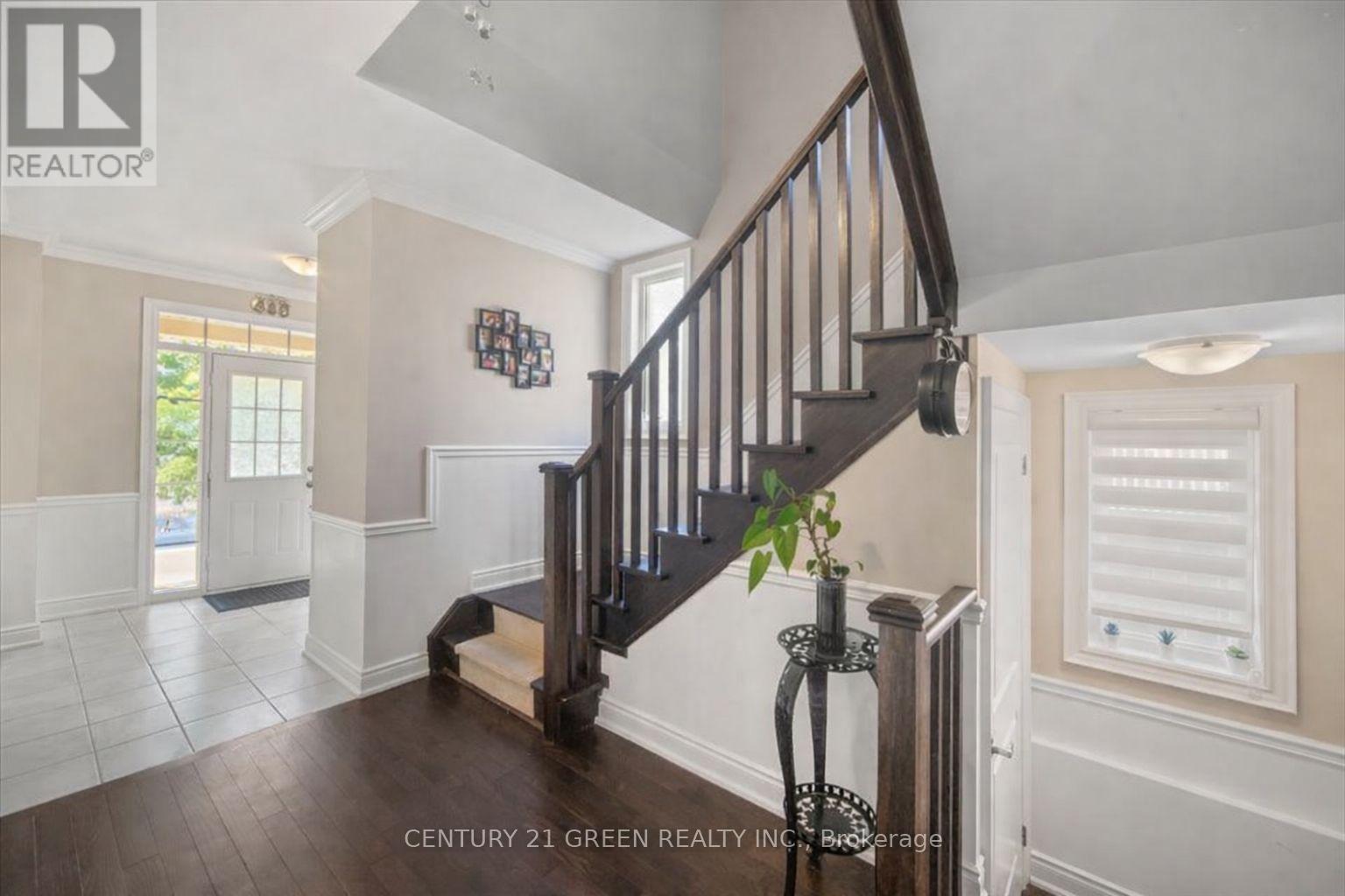 Step into sophistication with this beautifully appointed family home, where timeless design meets modern comfort. The expansive main level welcomes you with a grand foyer that flows seamlessly into a sun-drenched great room an ideal space for both relaxation and refined entertaining. The gourmet kitchen is a culinary masterpiece, featuring sleek stainless steel appliances, contemporary cabinetry, and premium finishes that elevate everyday living. Adjacent to the kitchen, the stylish dining area boasts sliding glass doors that open to a serene, landscaped garden oasis perfect for alfresco gatherings and tranquil moments. A chic powder room completes the main floor with convenience and flair. Ascend to the upper level where four generously proportioned bedrooms await, including a sumptuous primary suite with a spa-inspired 4-piece ensuite bath. The fully finished basement offers versatile additional living space, ideal for a media lounge, home office, or guest retreat. Outside, the expansive backyard provides a private haven for family celebrations, weekend barbecues, and outdoor leisure. This exceptional property blends elegance, functionality, and charm an impeccable opportunity in one of Ajax's most desirable neighborhoods. (id:64974)