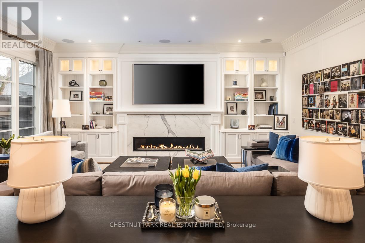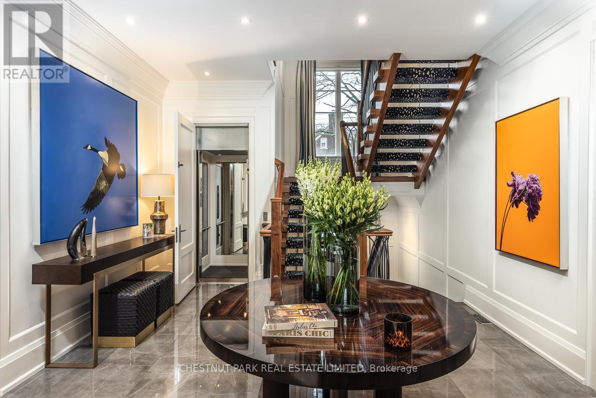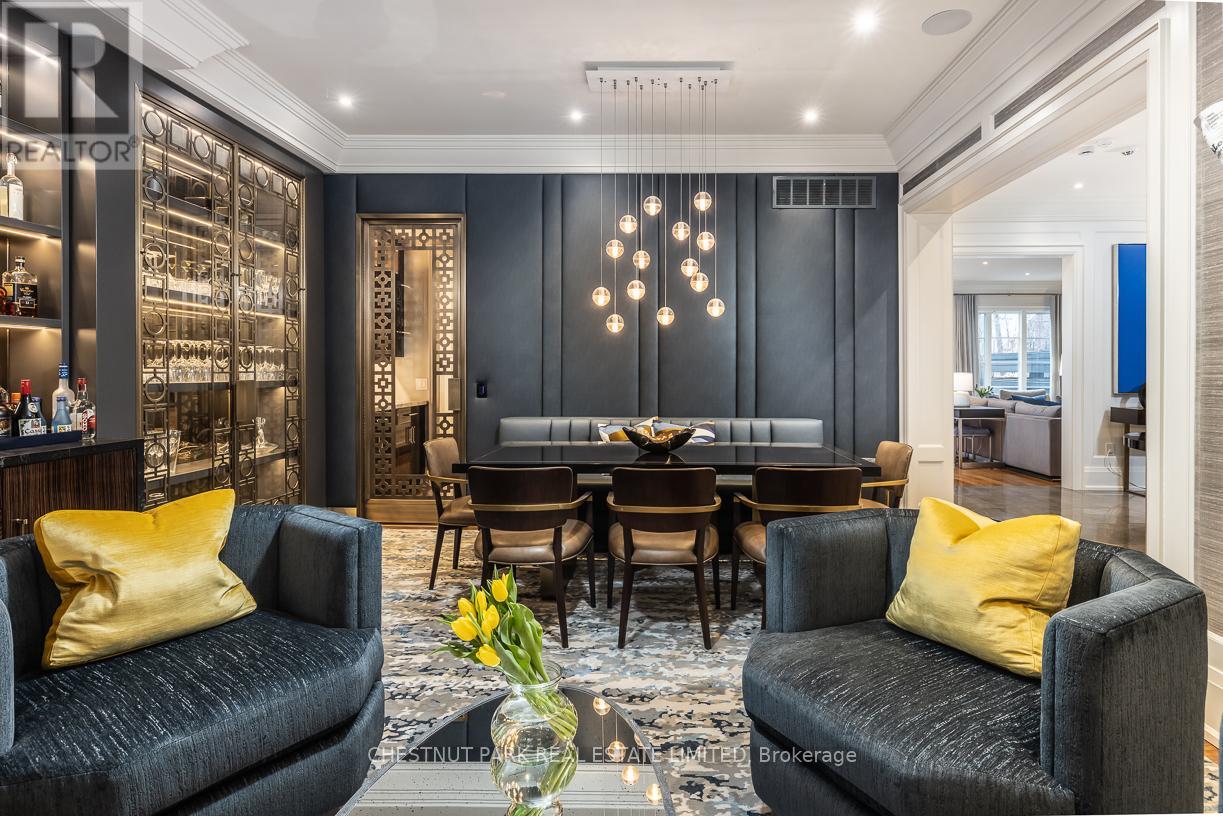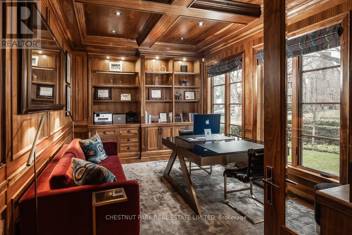 A rare Forest Hill offering, this custom residence showcases over 8,000 square feet of beautifully finished living space across five levels, all serviced by an elevator. Built in 2017 and extensively refined, the home offers exceptional scale, comfort, and craftsmanship. Grand principal rooms flow seamlessly for both everyday living and entertaining, anchored by a top-tier chef's kitchen, inviting family room, main floor library, dining room, and lounge with custom cabinetry and bar fridges. The second level features a sumptuous primary suite with his/her 3-piece and 5-piece ensuites and separate dressing rooms, along with four additional bedrooms, each with its own ensuite. Designed for complete lifestyle living, the lower level includes a home theatre, glass-enclosed gym, recreation room with bar, large wine cellar, and nanny suite. Outdoor living is equally impressive, with a stunning pool and hot tub, 2-piece washroom off the pool deck and cooking hub. An oversized double garage with pet spa and the convenience of a mud room completes this exceptional home, ideally located near top schools, parks, and local amenities. (id:64974)