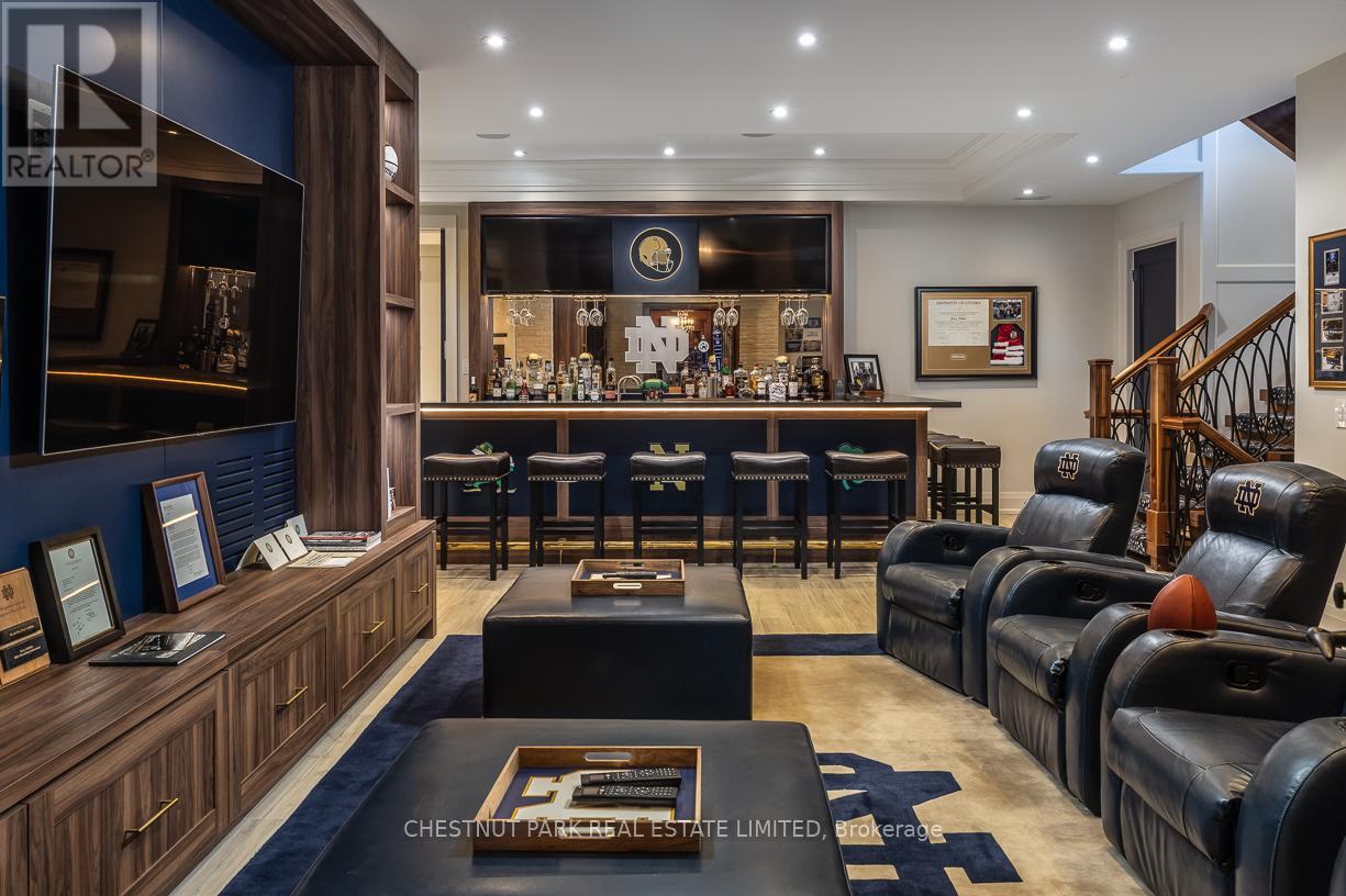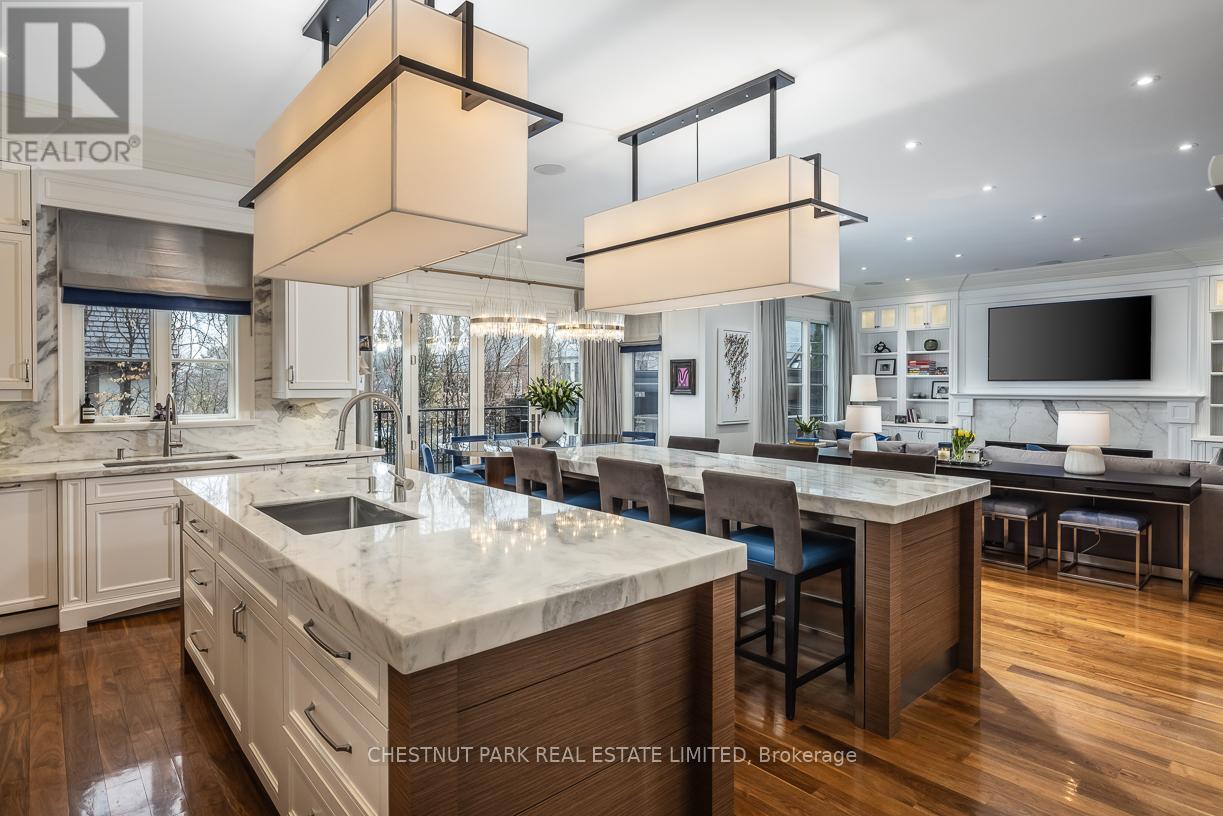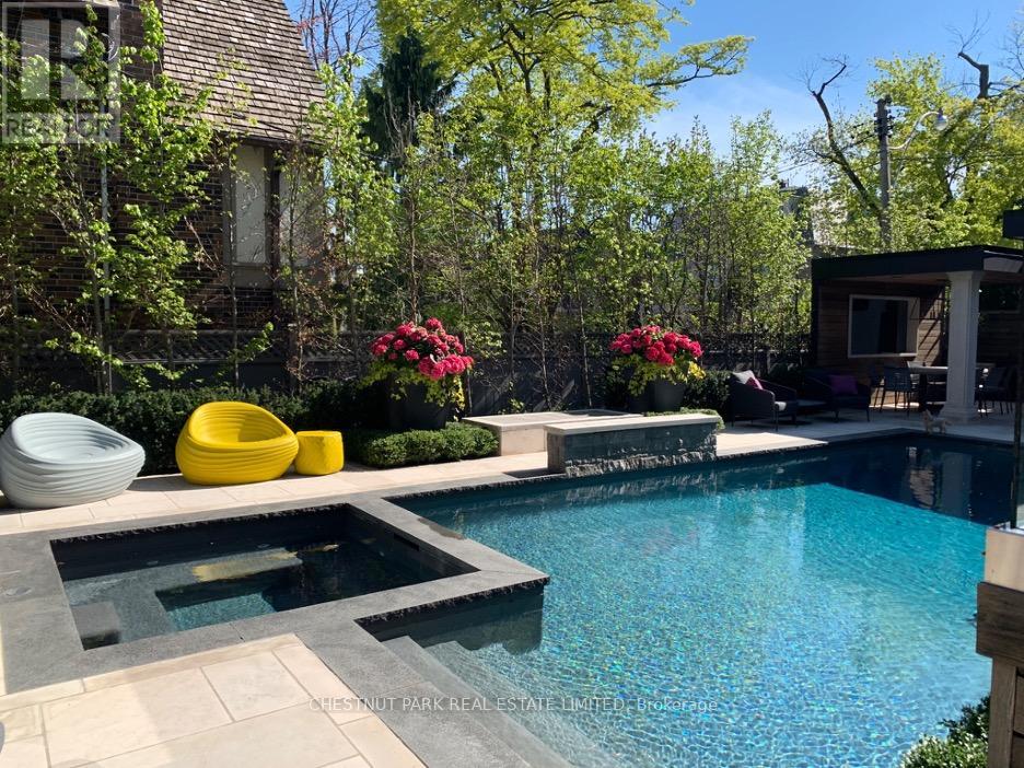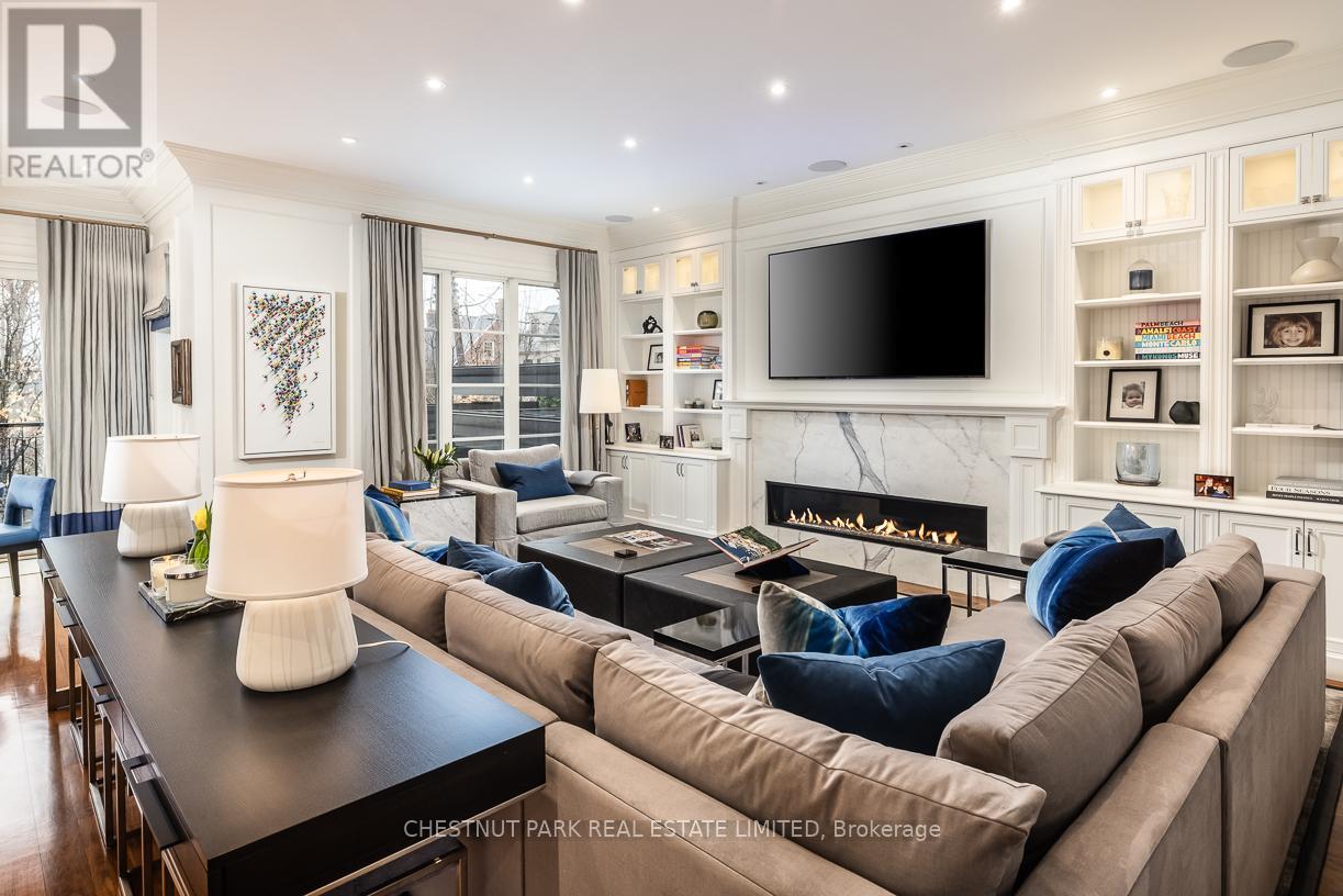 A rare Forest Hill offering, this custom residence showcases over 8,000 square feet of beautifully finished living space across five levels, all serviced by an elevator. Built in 2017 and extensively refined, the home offers exceptional scale, comfort, and craftsmanship. Grand principal rooms flow seamlessly for both everyday living and entertaining, anchored by a top-tier chef's kitchen, inviting family room, main floor library, dining room, and lounge with custom cabinetry and bar fridges. The second level features a sumptuous primary suite with his/her 3-piece and 5-piece ensuites and separate dressing rooms, along with four additional bedrooms, each with its own ensuite. Designed for complete lifestyle living, the lower level includes a home theatre, glass-enclosed gym, recreation room with bar, large wine cellar, and nanny suite. Outdoor living is equally impressive, with a stunning pool and hot tub, 2-piece washroom off the pool deck and cooking hub. An oversized double garage with pet spa and the convenience of a mud room completes this exceptional home, ideally located near top schools, parks, and local amenities. (id:64974)