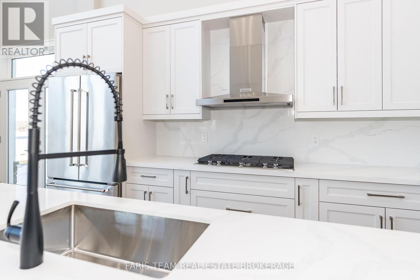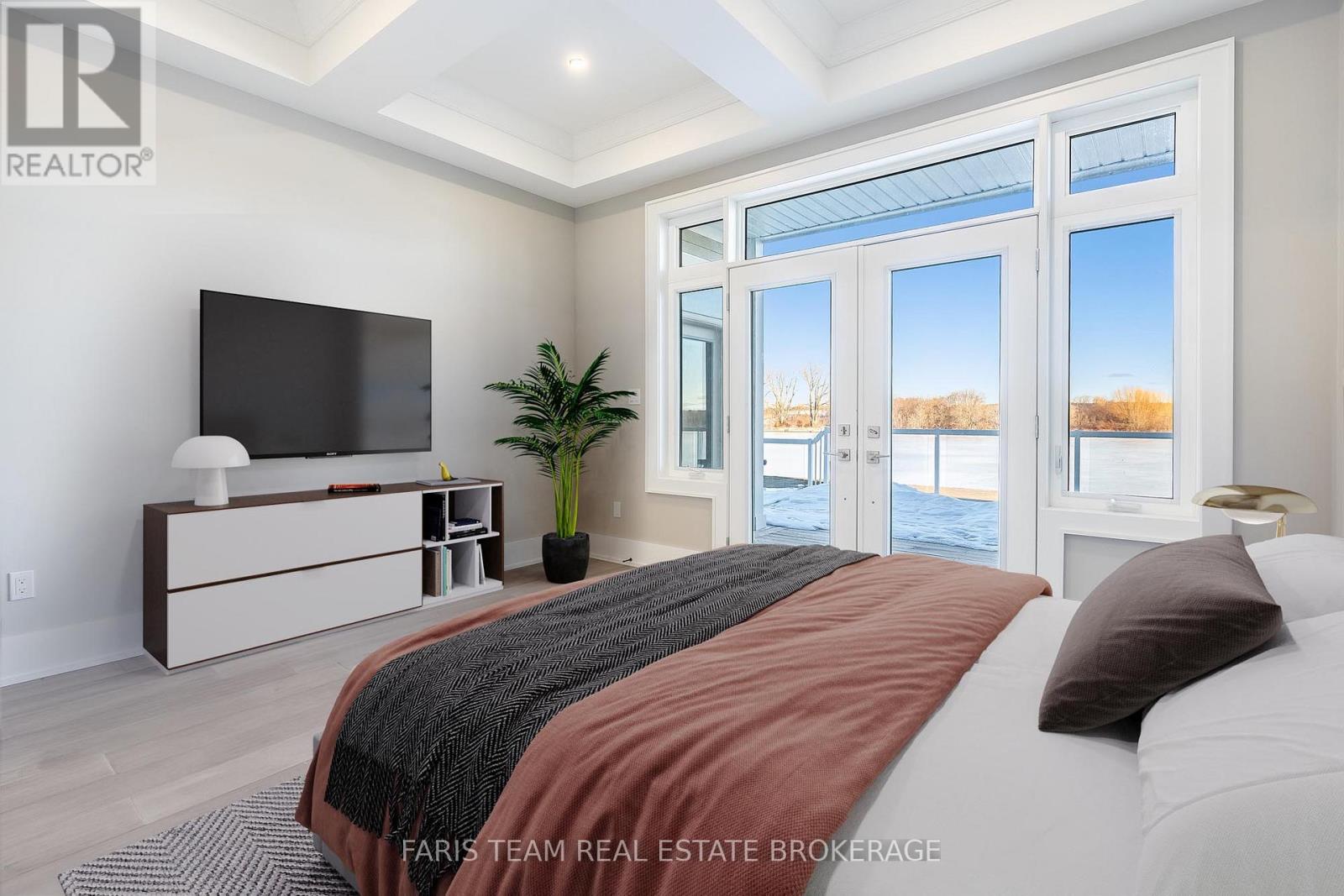 Top 5 Reasons You Will Love This Home: 1) Indulge in the epitome of waterfront living, where expansive decks and private balconies offer the idyllic setting for pre- and post-boating relaxations, diving adventures, and water activities 2) Experience culinary excellence in the well-appointed kitchen featuring a gas stove, built-in oven, and a spacious island with ample seating 3) Entertain in style in the main level living room boasting a soaring 20-foot ceiling and a cozy gas fireplace, creating an inviting ambiance for gatherings 4) Retreat to two luxurious primary bedrooms, each adorned with decorative walls, captivating water views, large walk-in closets, and ensuites with heated flooring 5) Welcome guests into the grand foyer of this home and boasting excellent curb appeal enhanced by upgraded exterior lighting and an interlock driveway. *Please note some images have been virtually staged to show the potential of the home. (id:64974)
