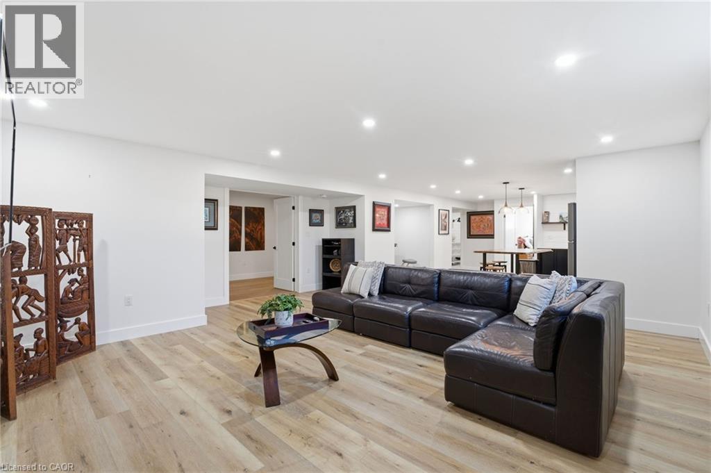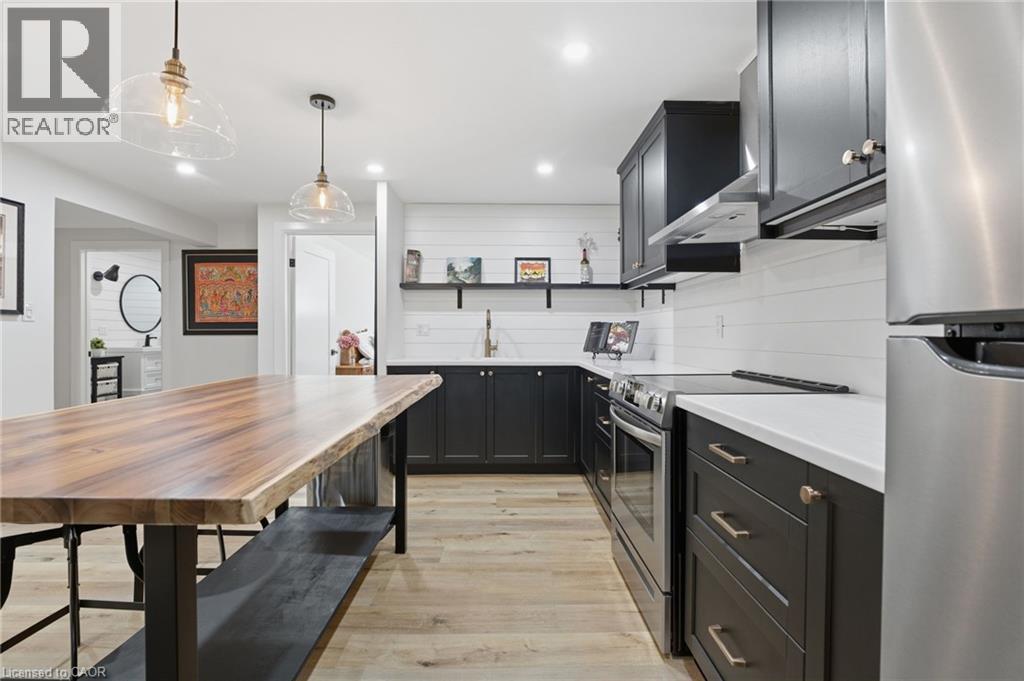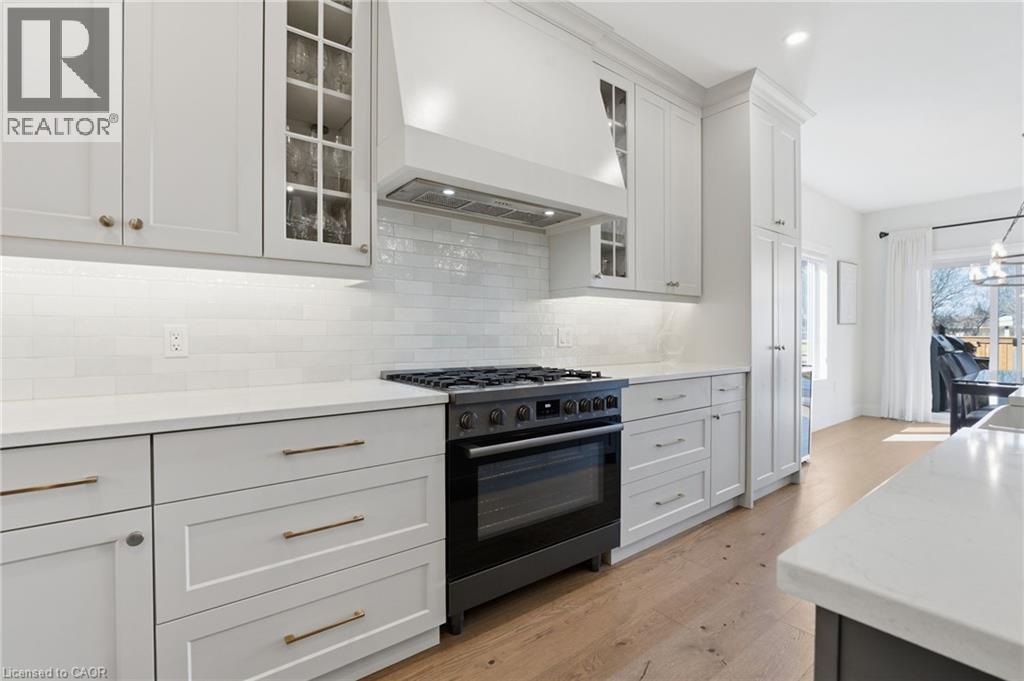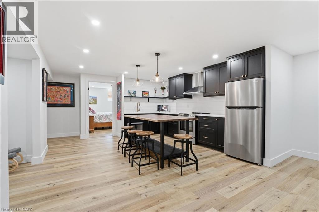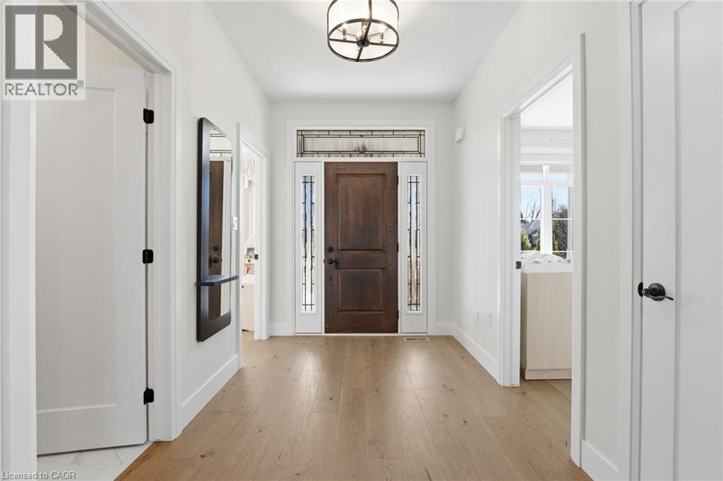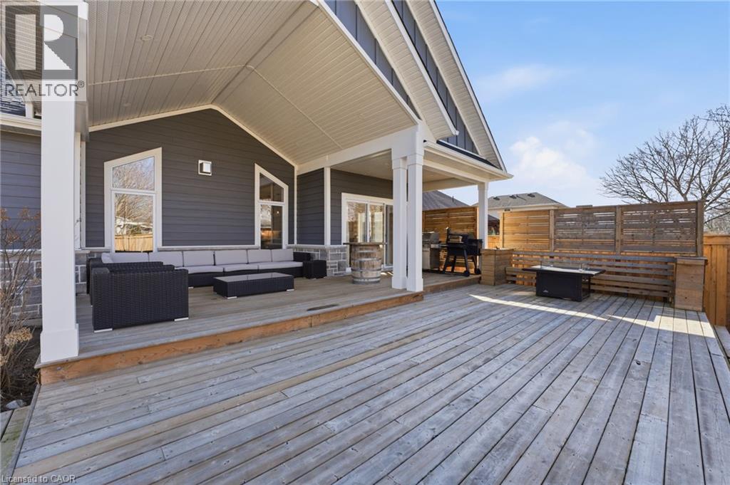 Welcome to 9 East N in charming Port Dover! Built in 2021, this stunning custom home offers nearly 1,900 sq ft of beautifully designed living space on the main level, plus a fully finished basement ideal for extended family or entertaining. The lower level features a second kitchen, additional bedroom, full bathroom, and spacious rec room. Inside, you’ll find hardwood floors throughout and a show-stopping custom kitchen with a massive island that flows into a breathtaking great room. The space is highlighted by a cathedral ceiling, decorative wood beams, and a dramatic floor-to-ceiling fireplace. The main level offers three generous bedrooms and two full bathrooms, including a beautiful principal suite with a spa-like ensuite and a large walk-in closet with built-ins. A spacious laundry/mudroom connects to the oversized garage for everyday convenience. Step outside to enjoy a multi-tier covered deck overlooking the backyard—perfect for relaxing or entertaining. Situated on a quiet street within walking distance to a Catholic elementary school and grocery shopping, this home combines comfort, style, and location. Finished with timeless stone and James Hardie siding, it’s truly beautiful inside and out. (id:64974)