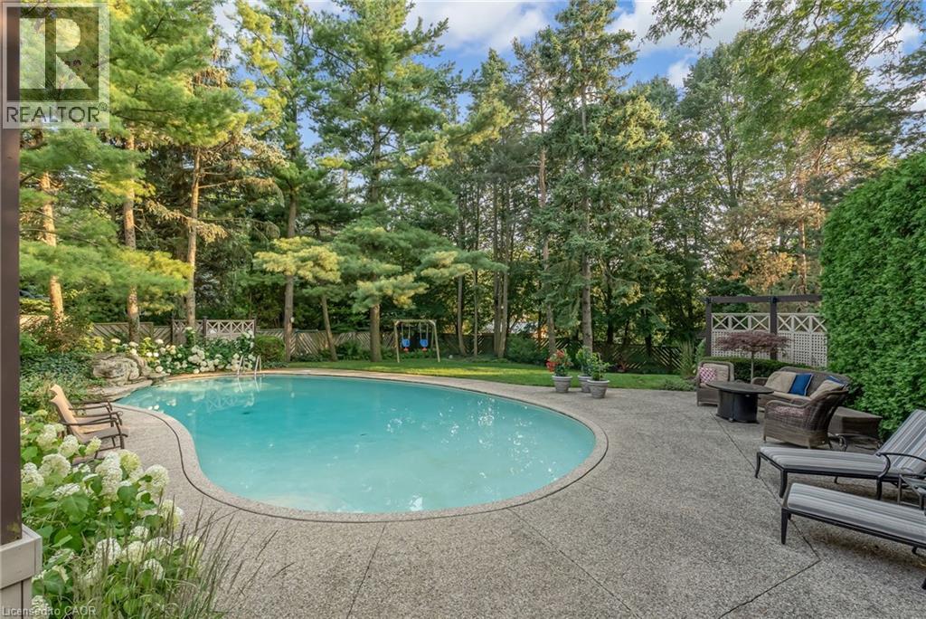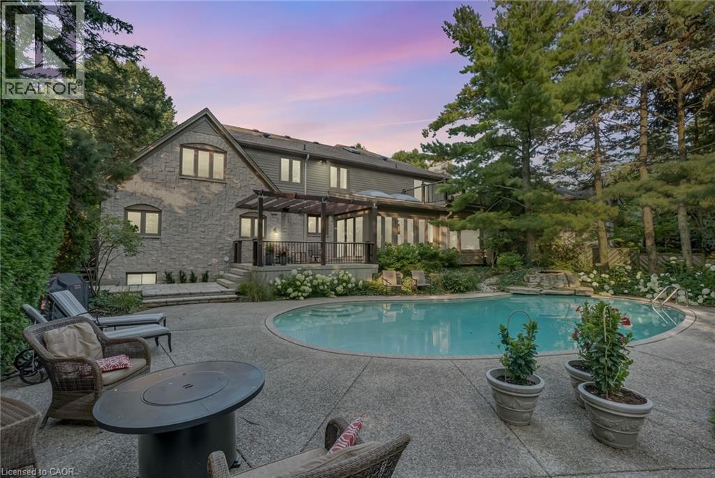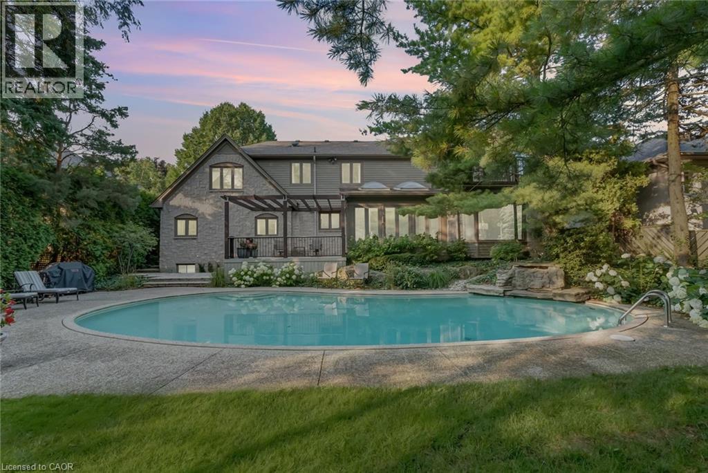 Welcome to 9 Flanders Drive—an exceptional executive residence nestled in one of Waterdown’s most coveted and established neighbourhoods. Offering over 5,200 sq/ft of beautifully finished living space, this stunning home blends timeless elegance with modern comfort, ideal for families seeking both luxury and functionality. Boasting 4+1 spacious bedrooms and 4.5 bathrooms, this home is thoughtfully designed with generous principal rooms, refined finishes, and a layout that effortlessly accommodates both everyday living and entertaining. The heart of the home features an inviting kitchen and living space, complemented by elegant formal areas and abundant natural light throughout. Step outside to your own private backyard retreat—professionally landscaped and designed for enjoyment. The show-stopping concrete pool is surrounded by lush greenery and ample space for lounging, creating the perfect setting for summer entertaining or quiet relaxation. Located in a prestigious Waterdown pocket known for its executive homes, top-rated schools, parks, and community feel, this is a rare opportunity to own a truly remarkable property in a prime location. (id:64974)