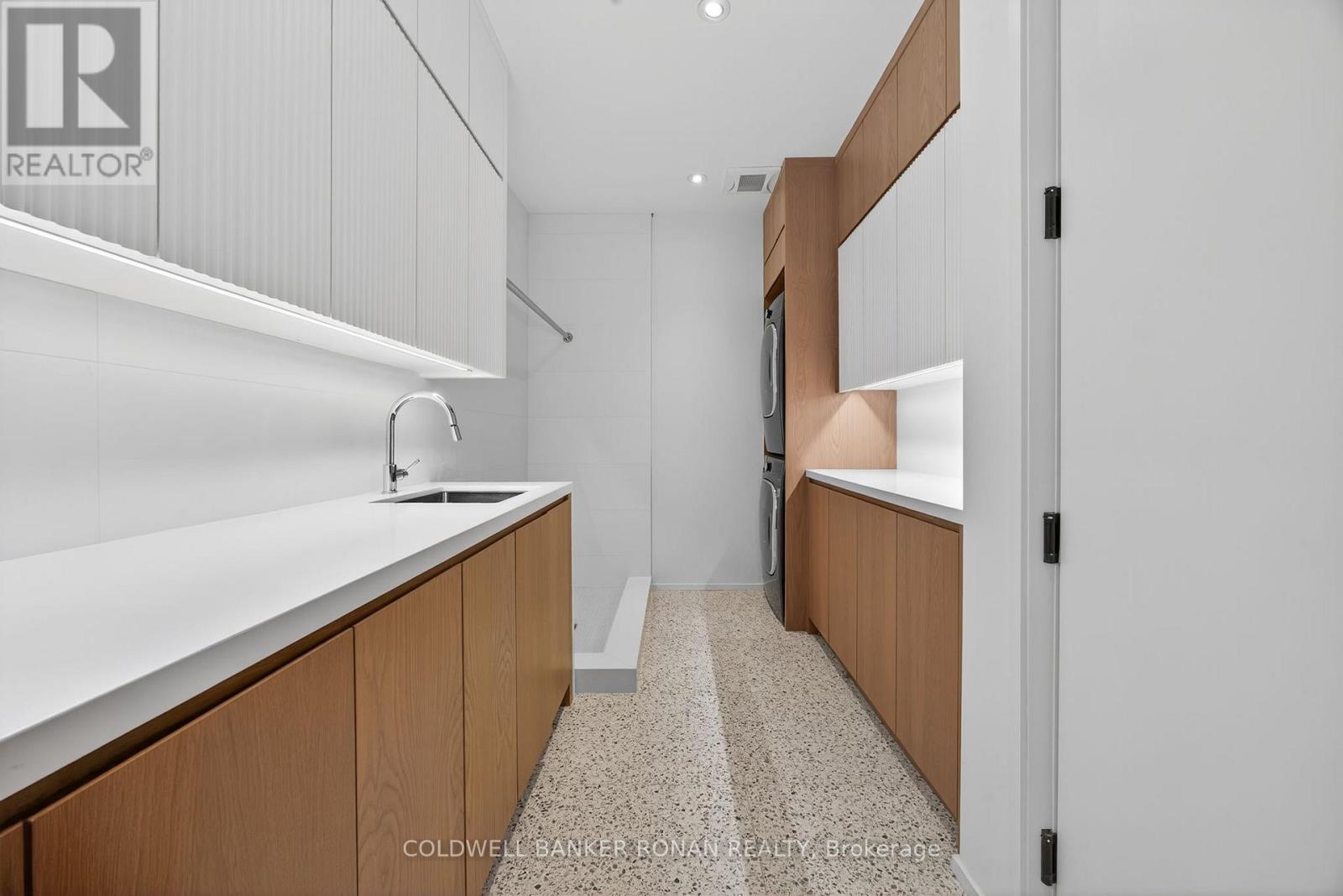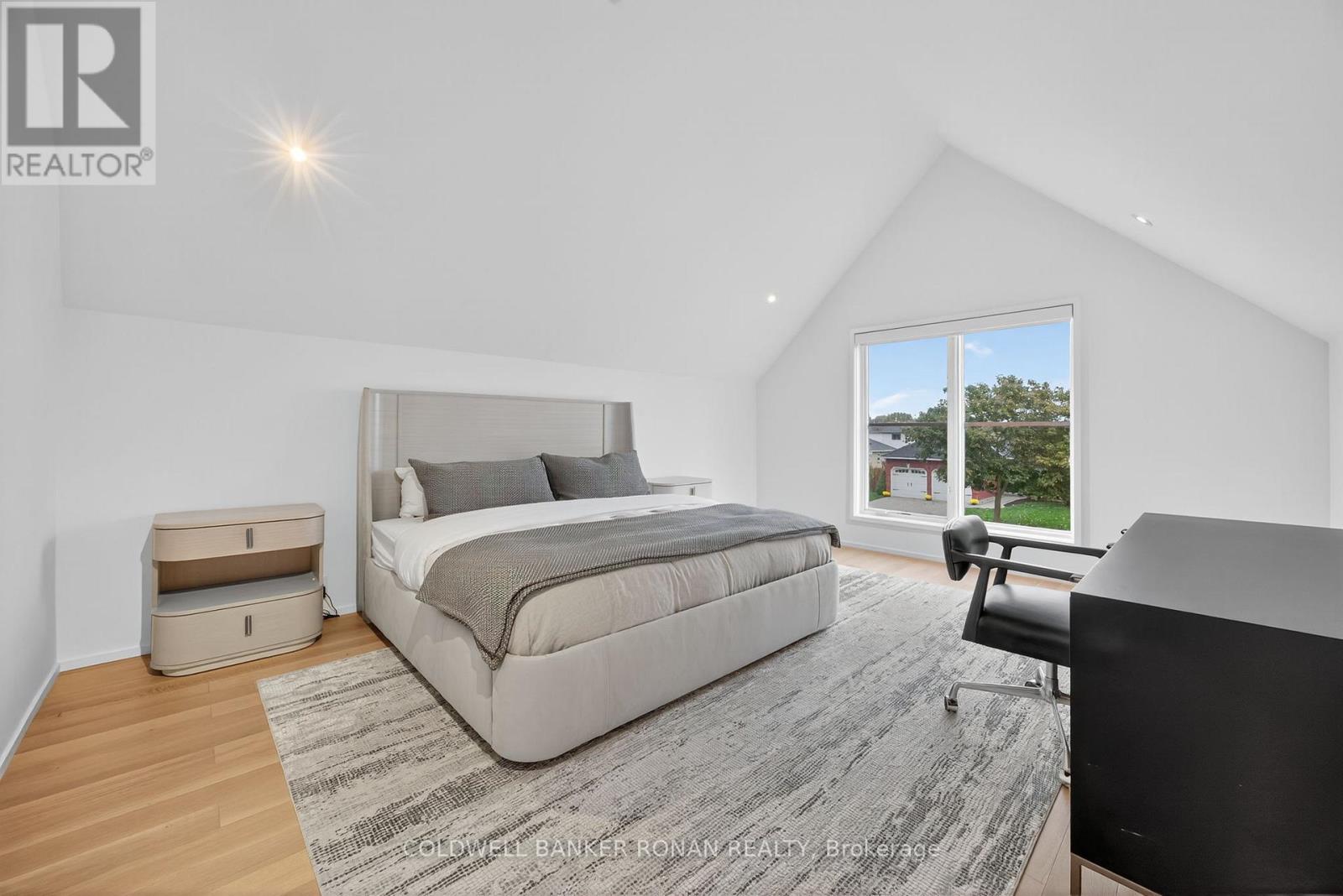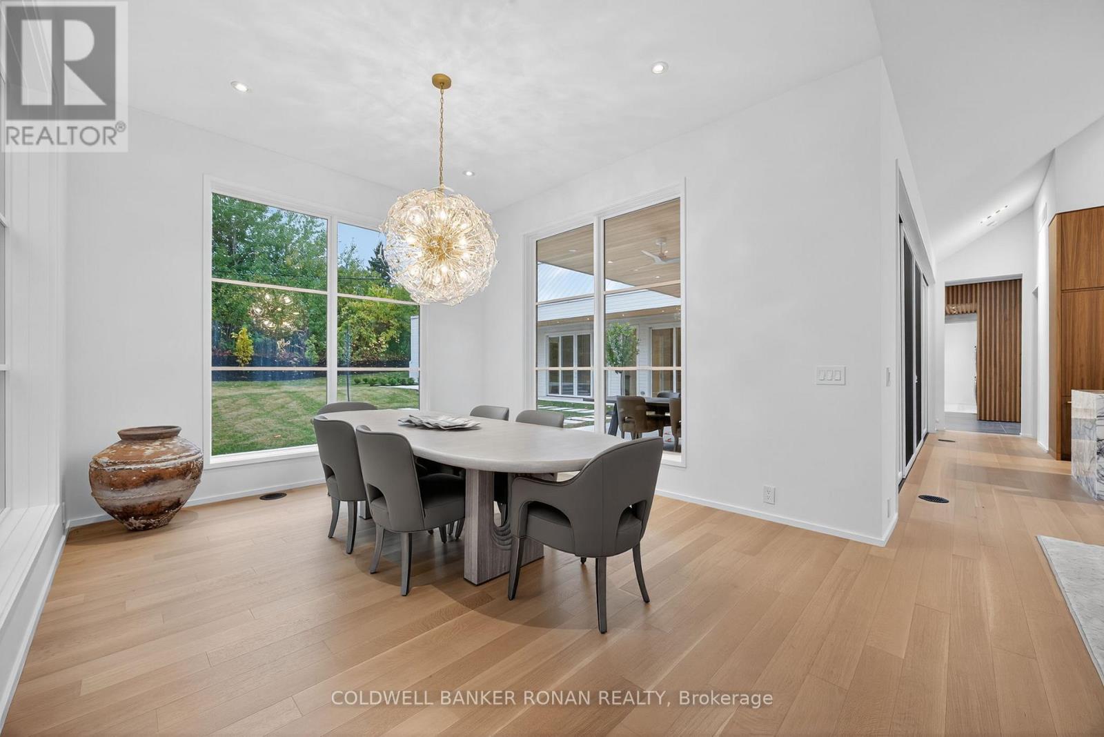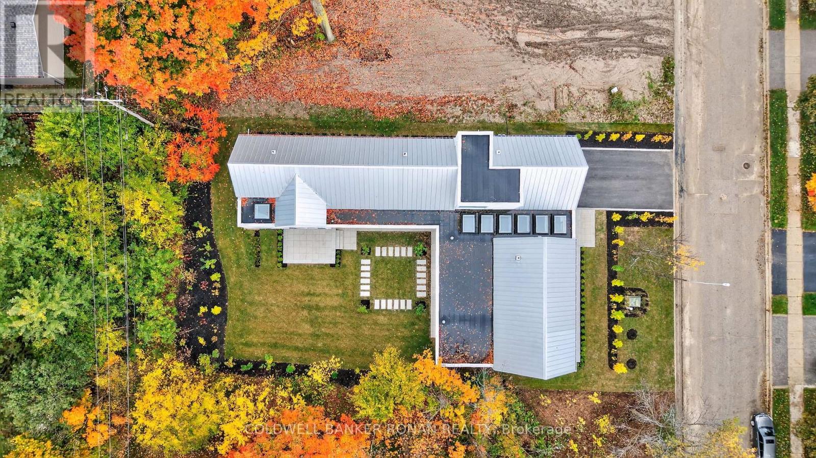 Modern luxury living in this breathtaking Forest View Home, crafted by Georgio Lolos Designs w/ interiors curated by ABella Design Inc. This stunning property is built with an eye for elegance & functionality. Step into the home through a custom wood slatted wall foyer. Six skylights flood the space with natural light. Open riser, Hollywood stairs w/ sleek glass railings lead to a private bedroom retreat over the garage. Specialty lighting highlights the grandeur of the 18-foot A-frame vaulted ceiling in the main living area, creating an inviting ambiance around the 50" gas fireplace clad in black soapstone. The home showcases 6' White Oak flooring throughout for a seamless & warm finish. The powder room impresses w/ a Starck wall-hung toilet, integrated marble sink & an exquisite book-matched Bianco Lasa marble wall. The heart of the home features a dream kitchen, equipped w/ walnut cabinetry, an impressive 14-foot waterfall island & a handcrafted 50' Julien sink. Grey Lilac marble adorns the kitchen & pantry, complemented by full-slab backsplashes. Cooking is elevated w/ a 36' Gaggenau induction cooktop, 30' Gaggenau wall oven, fully integrated 36' Thermidor fridge & Bosch dishwasher. The custom range hood & gold fixtures adds an elegant touch while a wine fridge in the pantry & a wall mounted pot filler over the stove round out the space's luxury. The TV lounge features a built-in Gaggenau coffee maker & beverage fridge, elegantly integrated into custom cabinetry & a sophisticated walnut accent wall. Each bedroom offers an ensuite bathroom & custom closets. Primary ensuite is a private oasis w/ custom wall hung vanity, a luxurious Knief, K-Stone tub, a wall-mounted AeT DOT 20 Italia toilet, an oversized shower towel warmer. Laundry room is carefully designed, with beautiful cabinetry, clothes drying area & a custom dog wash station. A must see property for those seeking a refined yet comfortable living experience. (id:64974)