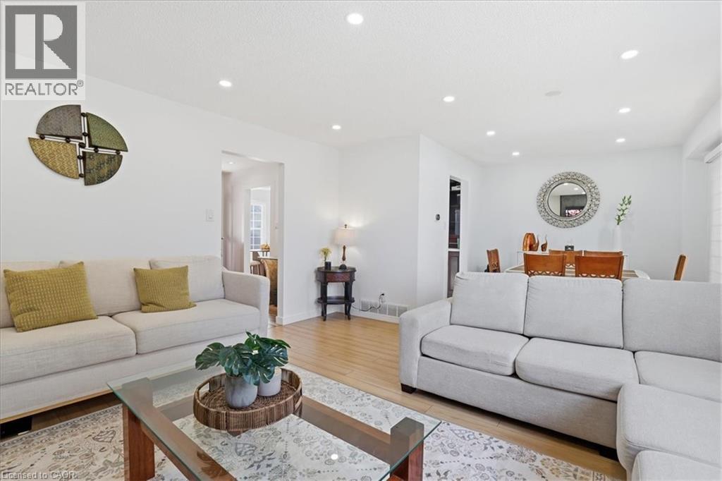 Welcome to this well-maintained family home in a highly sought-after, family-friendly neighbourhood, offering a spacious main floor layout with a bright living room, dining area, kitchen with breakfast nook, and a convenient 2-piece bathroom and designer hardwood doors. Upstairs features three comfortable bedrooms and a 3-piece bath, while the fully finished basement includes an in-law suite setup with a separate kitchen and 4-piece bathroom-ideal for extended family or potential added income. The home also offers a spacious attached garage, parking for up to four vehicles in the driveway, and a fully fenced yard backing onto a school with no rear neighbours! Located close to schools, all amenities, and with quick access to Highway 401, this property is an excellent opportunity for families seeking both comfort and convenience. (id:64974)